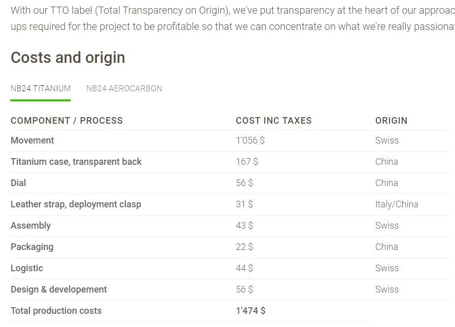 CODE41 are fully transparent on the origin of the components, hence the TTO ("Total Transparency on Origin") marking. They intentionally do not make use of the "Swiss Made" marking which they consider to be misleading (and rightly so). In effect, the NB24 Chronograph would clearly qualify as being "Swiss Made" although the case, dial and strap are not of Swiss origin. CODE41 should not be blamed for being fully transparent and honest in that respect.