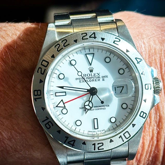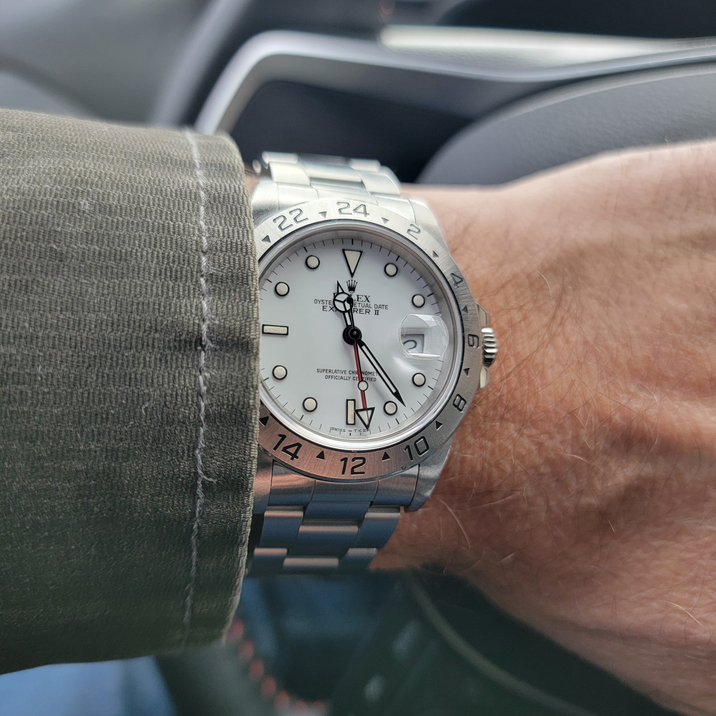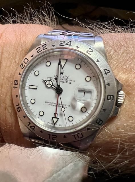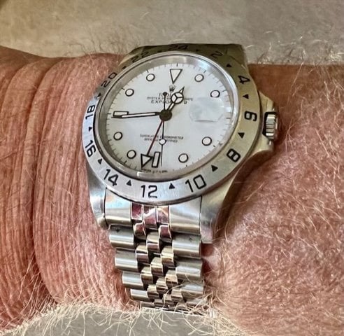 路Yes, the hands are also tritium. Many Explorer II guides state that for tritium dials that have patina, the lume on the hands should not match, but instead be white. This advice may or may not be accurate in 100% of dials, but it seems widely repeated.
