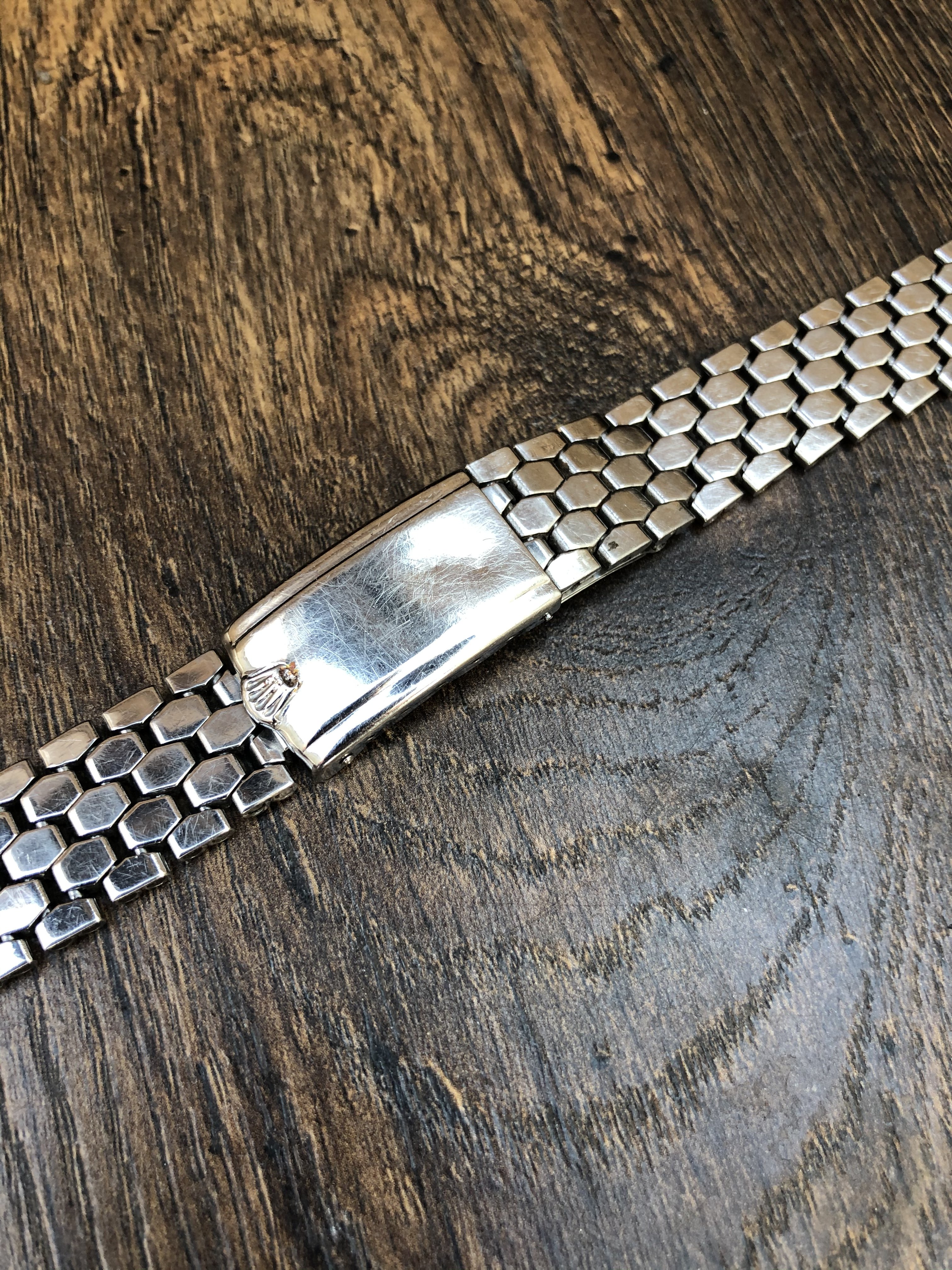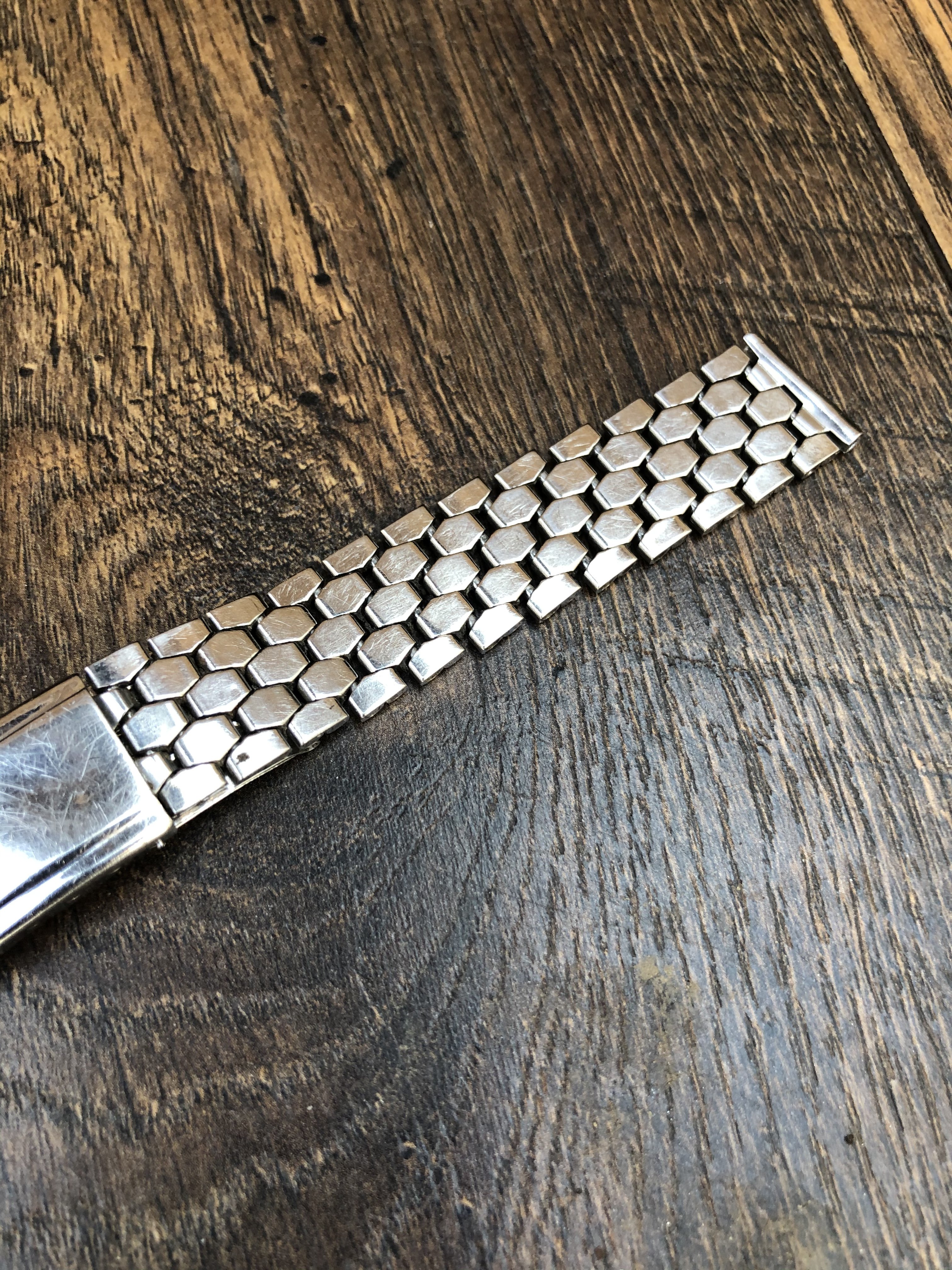 Generically, I call this type of bracelet "coffin link", so perhaps that might be a useful search term.