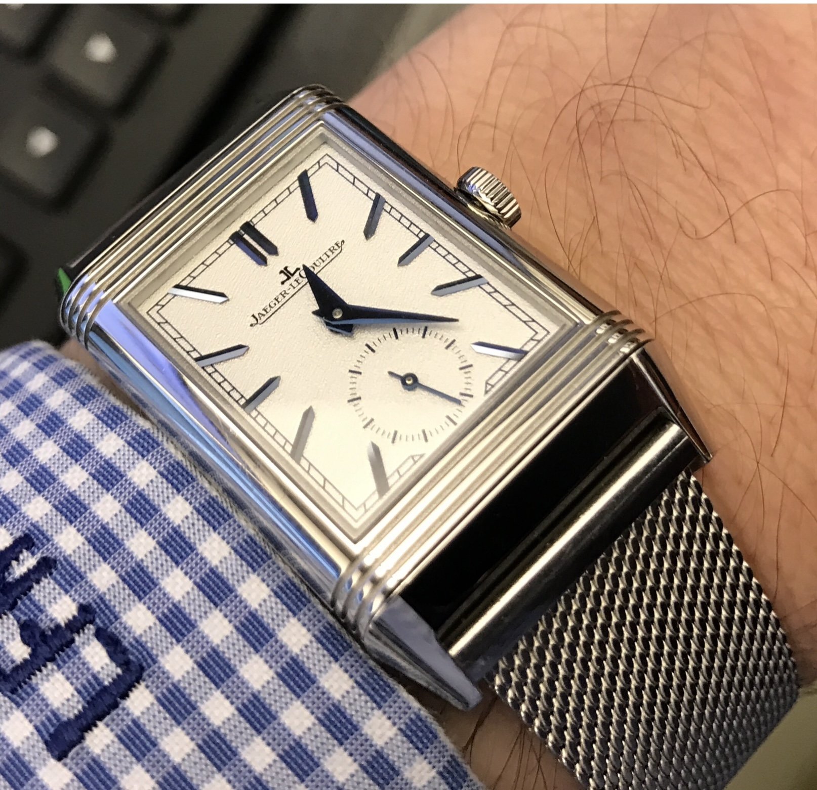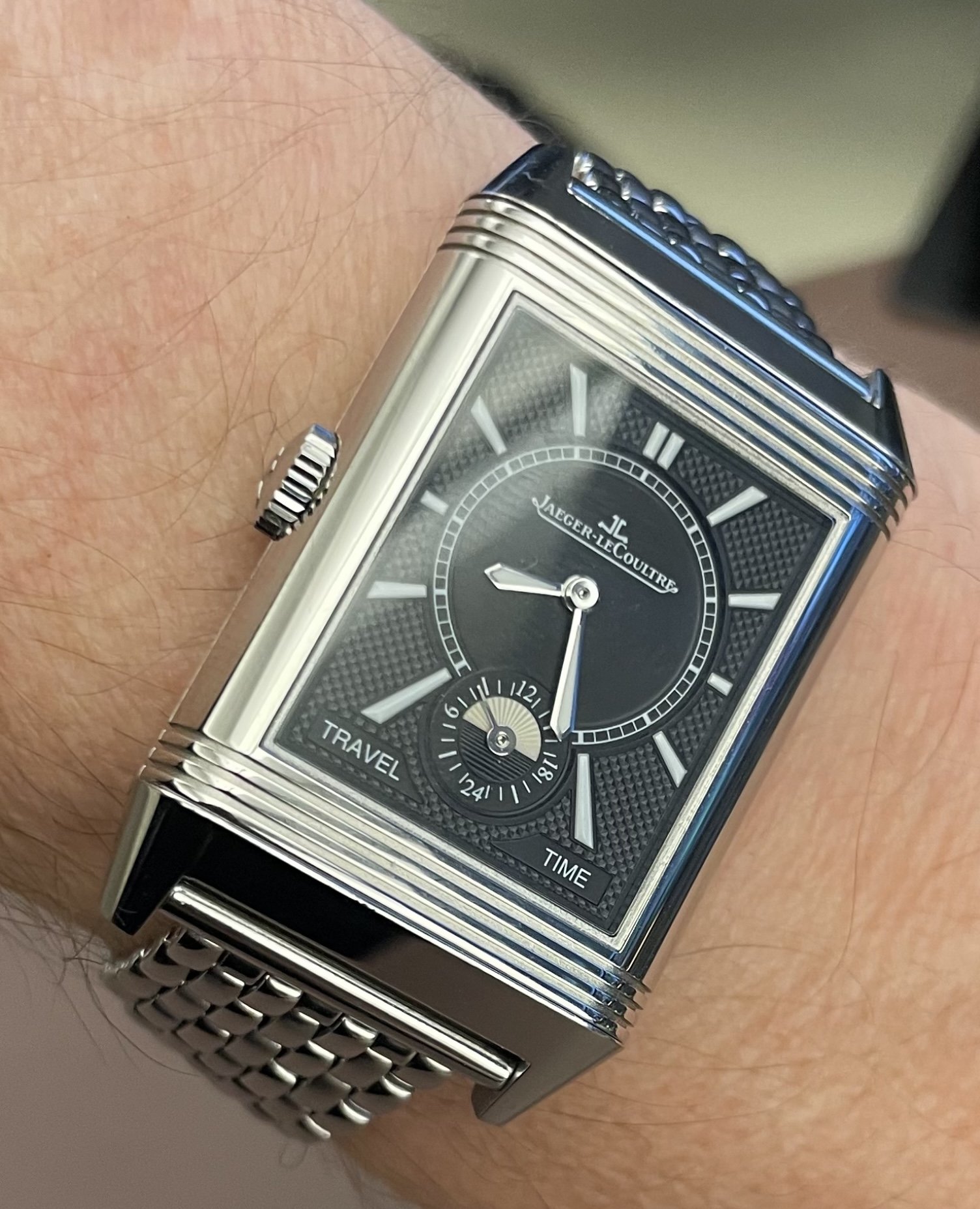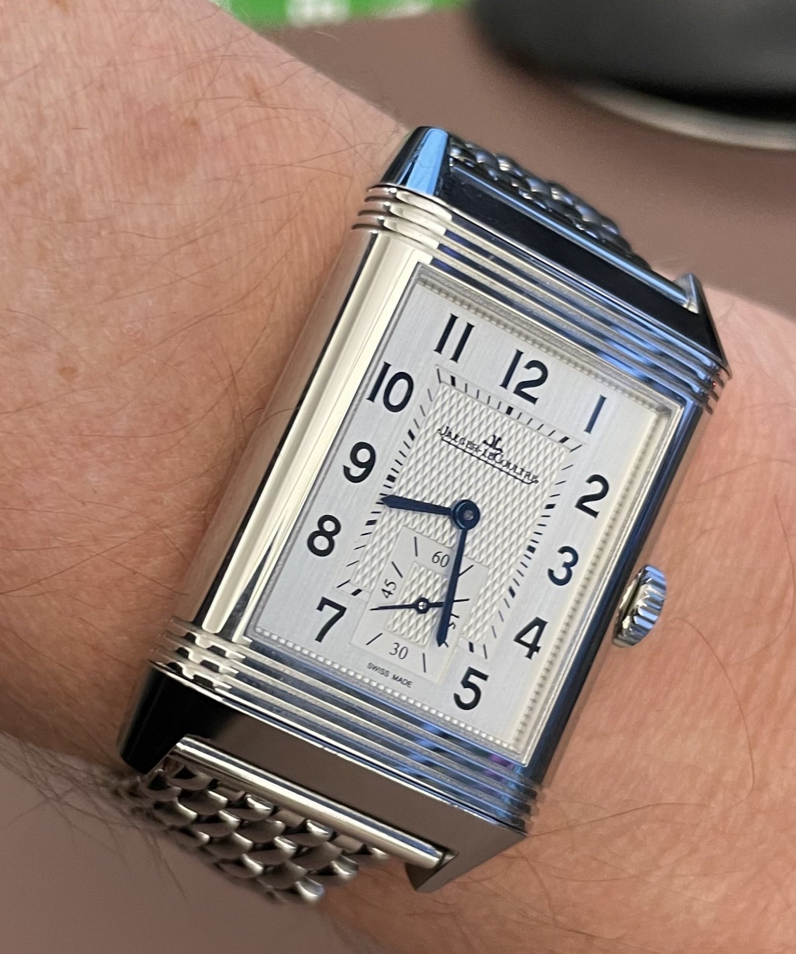 @DaveK I have the Reverso medium (42.9 x 25.5 mm) with 19mm lug width. It looks great on a leather strap, but with summer coming I’m thinking about getting a bracelet for it. I’d love to see what you’re wearing and if there are any recommendations for aftermarket or JLC options