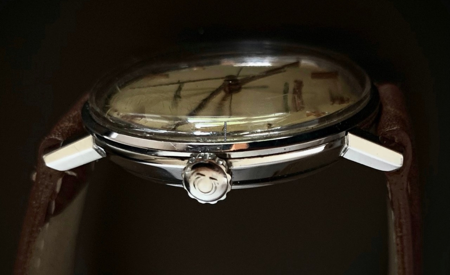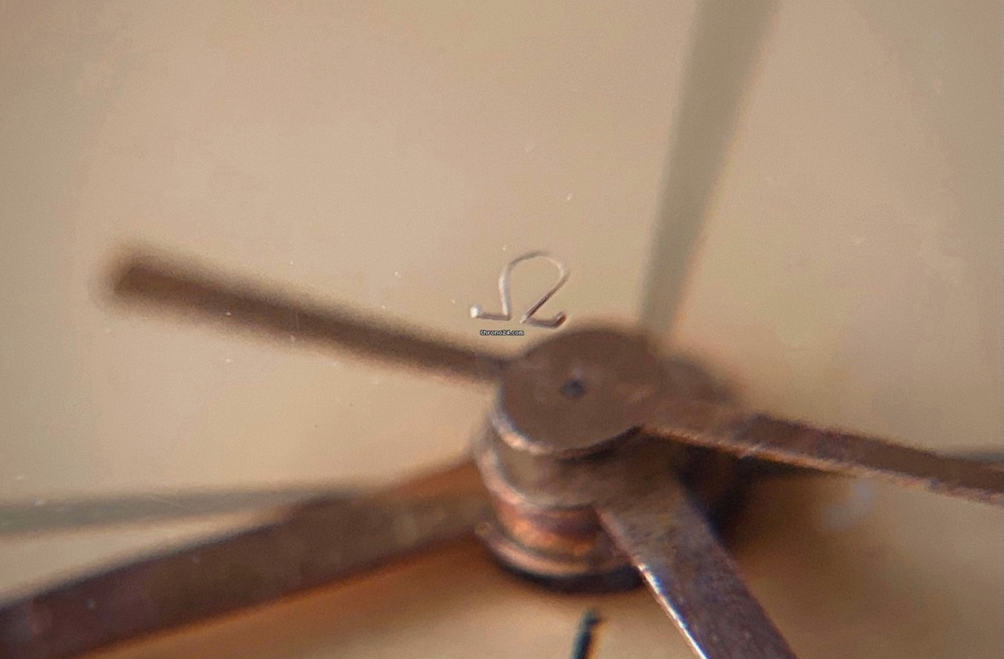 The omega logo is in an unusual place - at 12 o'clock. From looking on the forums here opinion seems to be divided as to whether this can be original or not.
