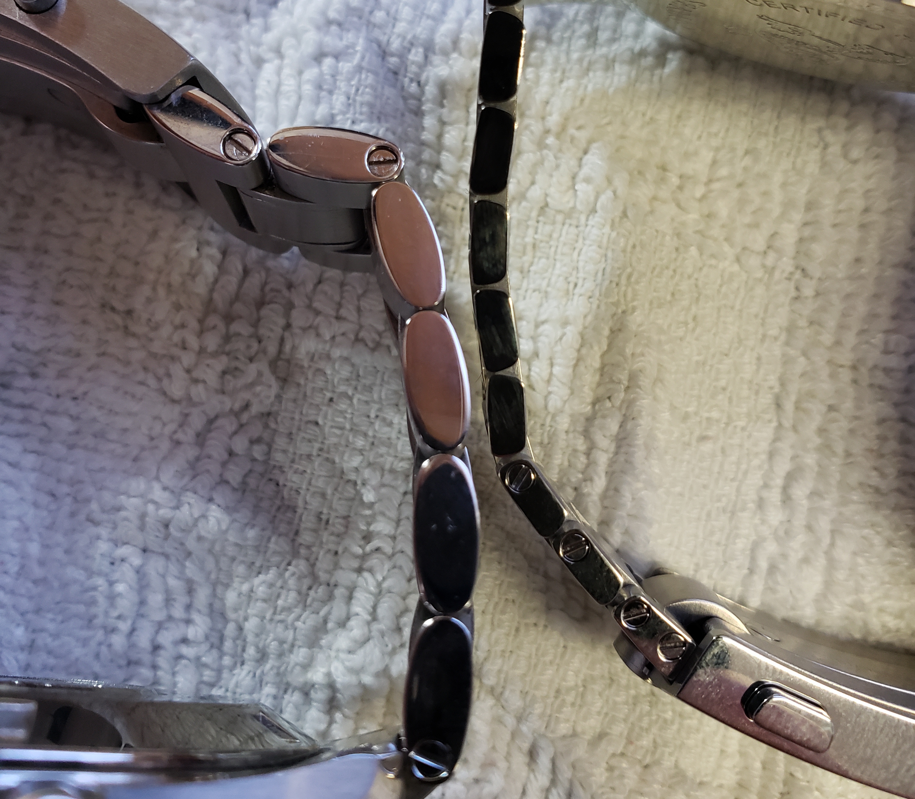 I will say this about the 50th bracelet however, it is much smaller and thinner than I was expecting. Also much lighter than I thought. This may turn some people off. I love it but it's not what I thought it was gonna be Haha. I would have preferred a little thicker of a link (see picture) but I'm not trying to nitpick it. And of course.... an obligatory watch pic. Excuse the smudges. Sorry for no endlink "tipping" pictures, I tried to capture it but I just can't get a focused shot. Like I said, it flows perfect from the face but on the wrist side its "tipped" .025" or about .5mm