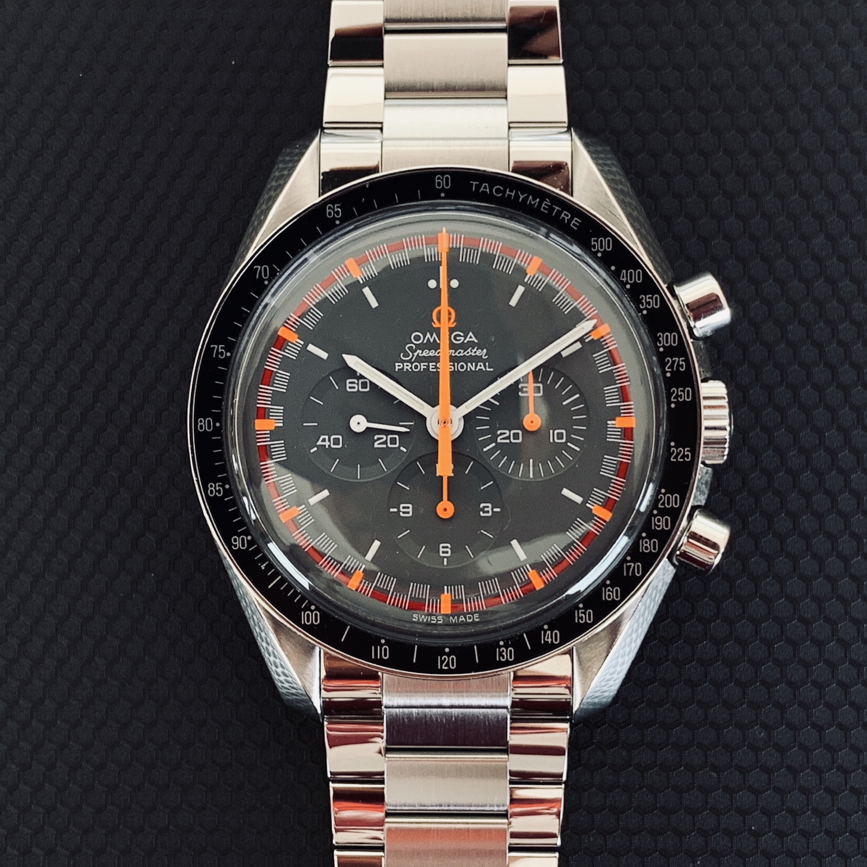 I've been wearing my Apollo 11 bracelet on some of my modern Speedies, but it also fits great on my 1990 Speedy Pro.