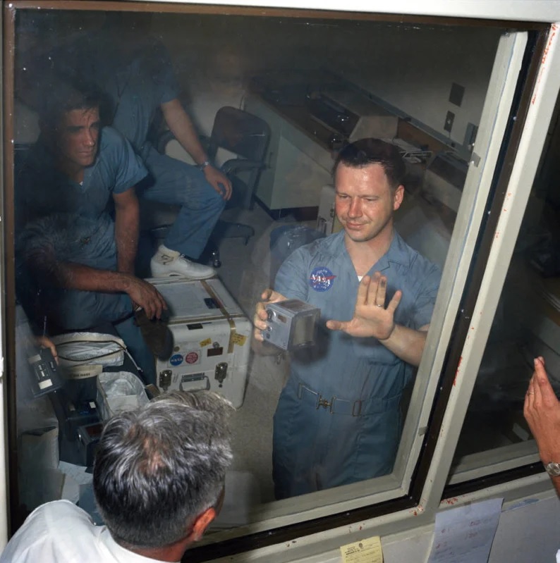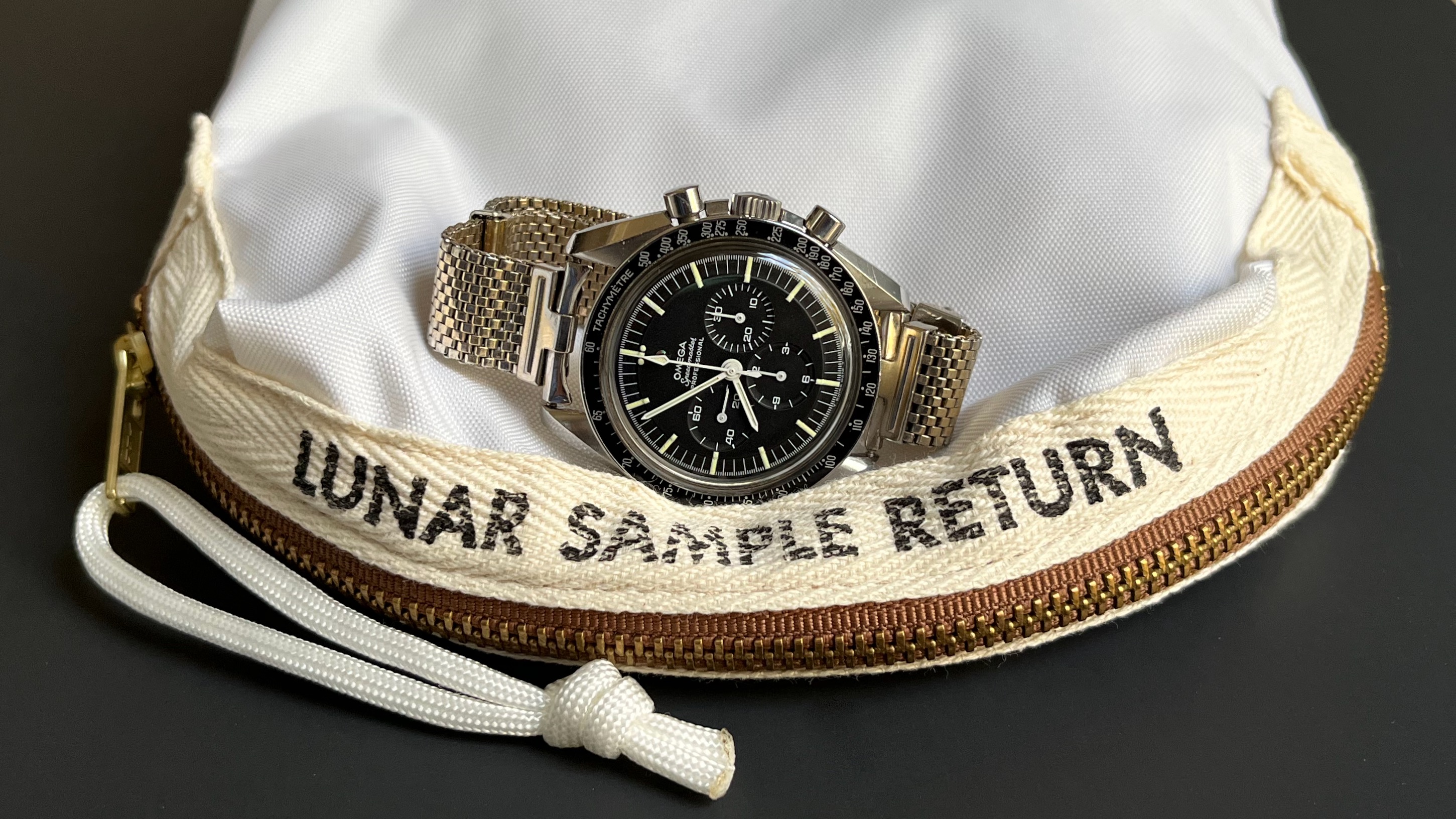 Even after the Apollo 11 astronauts had landed safely on the moon, there was concern that there might be a problem and they might have to take off quickly without preparation. So one of the first actions on the mission plan was to get a small sample of rocks that they would stash first, so even if they left before doing anything else, they'd get that single sample: the Apollo 11 Contingency Sample. This went into a single fabric bag.