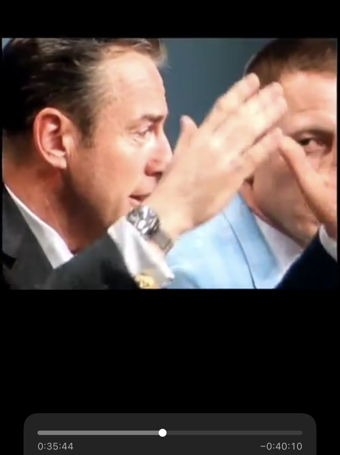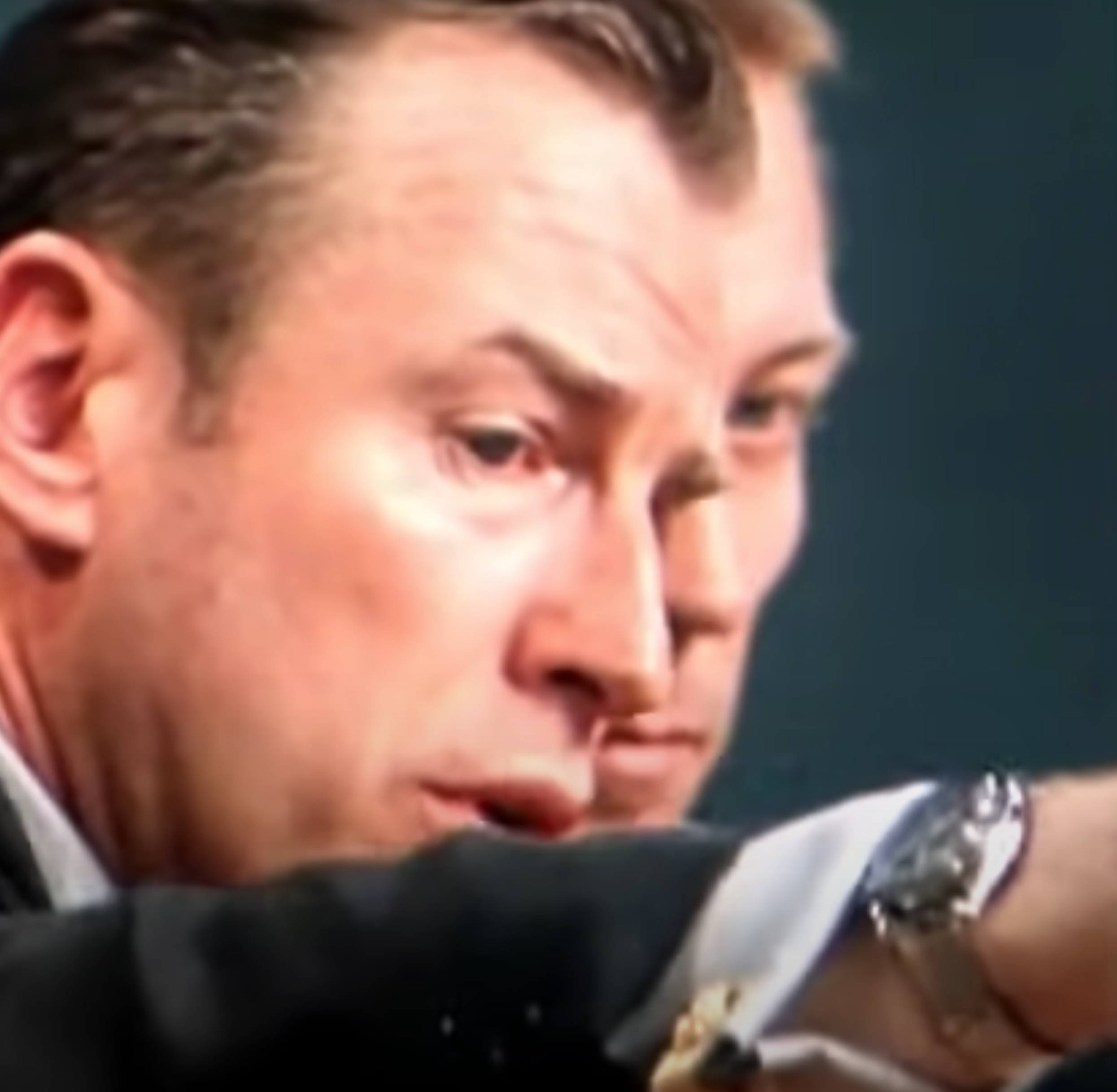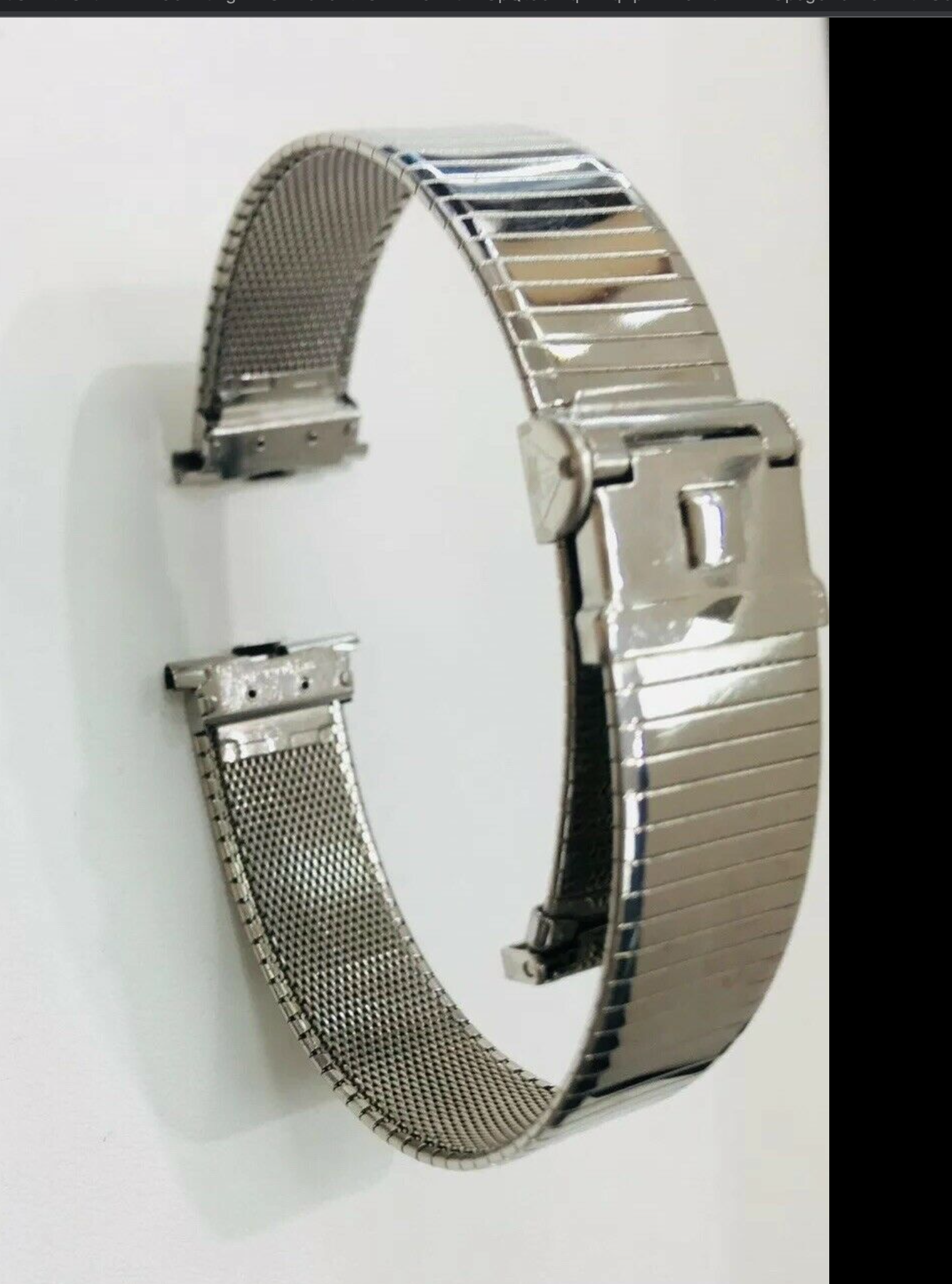 More importantly, at about 33 mins into the video, Jim Lovell held up his arm and showed us his watch. It was on his right arm, and he was wearing a suit. It was probably visible for about 1 second. I'll include a couple of screen grabs from the video, but they blurred when I captured them. I believe he was wearing his Speedmaster, but the view of the watch head is not great. I was most interested to see what I believe was a JB Champion band...but NOT one of the mesh bands that have been so often associated (rightfully) with the Gemini and Apollo guys. In my opinion, the band he was wearing was the shinier band with horned end pieces...same clasp as the mesh bands. I've seen this style described as NASA bands, but I never considered them to be items used by the astronauts. I'll get an image of one of those to add. You be the judge. Maybe one of you who is WAY into astronauts and Speedmasters has already made this observation.