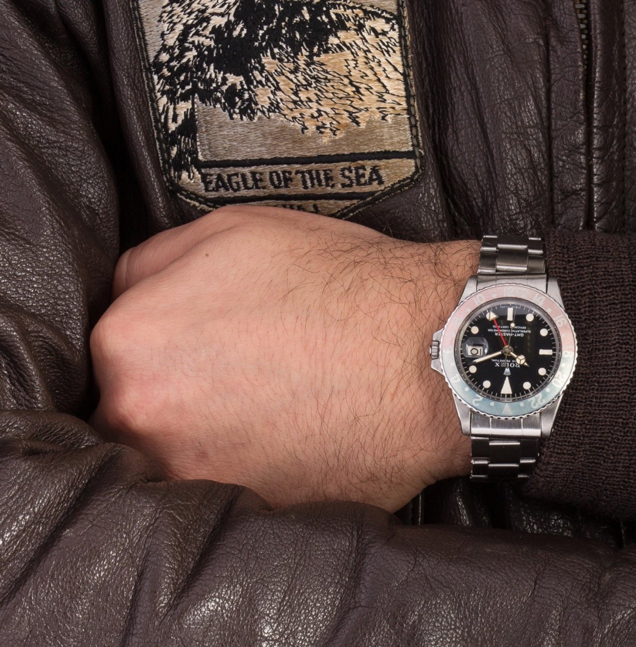 Tom joined the Navy in October 1966 and piloted the H3 helicopter for a variety of special operations, including the retrieval of the astronauts from Apollo 14 after splashing down in the South Pacific Ocean on February 9, 1971. While on these missions, Tom wore this 1675 Rolex GMT-Master.