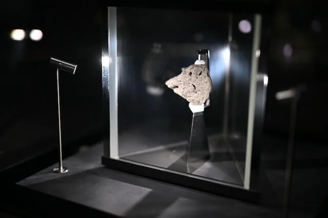 Samples of lunar rock brought back by Apollo 11 and Apollo 17 are on display.