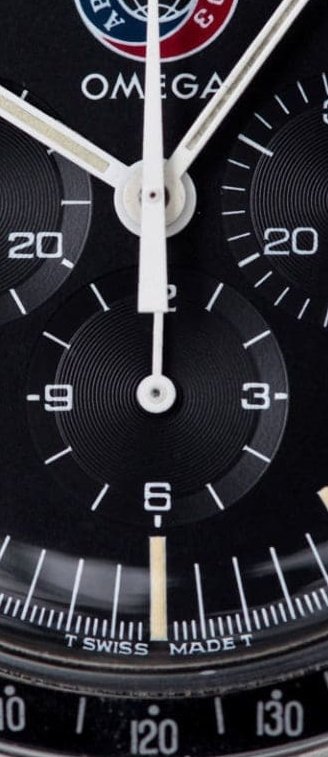 The dial on this one looks very different from everything else I've seen. The A-S logo and, in fact, the printing in general looks rather think and heavy. The font on the OMEGA logo is different, without serifs, and a shorter proportion, and the numbers are also different, in particular the 3 on the chronograph hours subdial. Also, the T SWISS T font is smaller than standard, and is not found in that size on any moonwatch that I know. So the dial just looks wrong to me, perhaps re-painted or just not original, it's not clear.