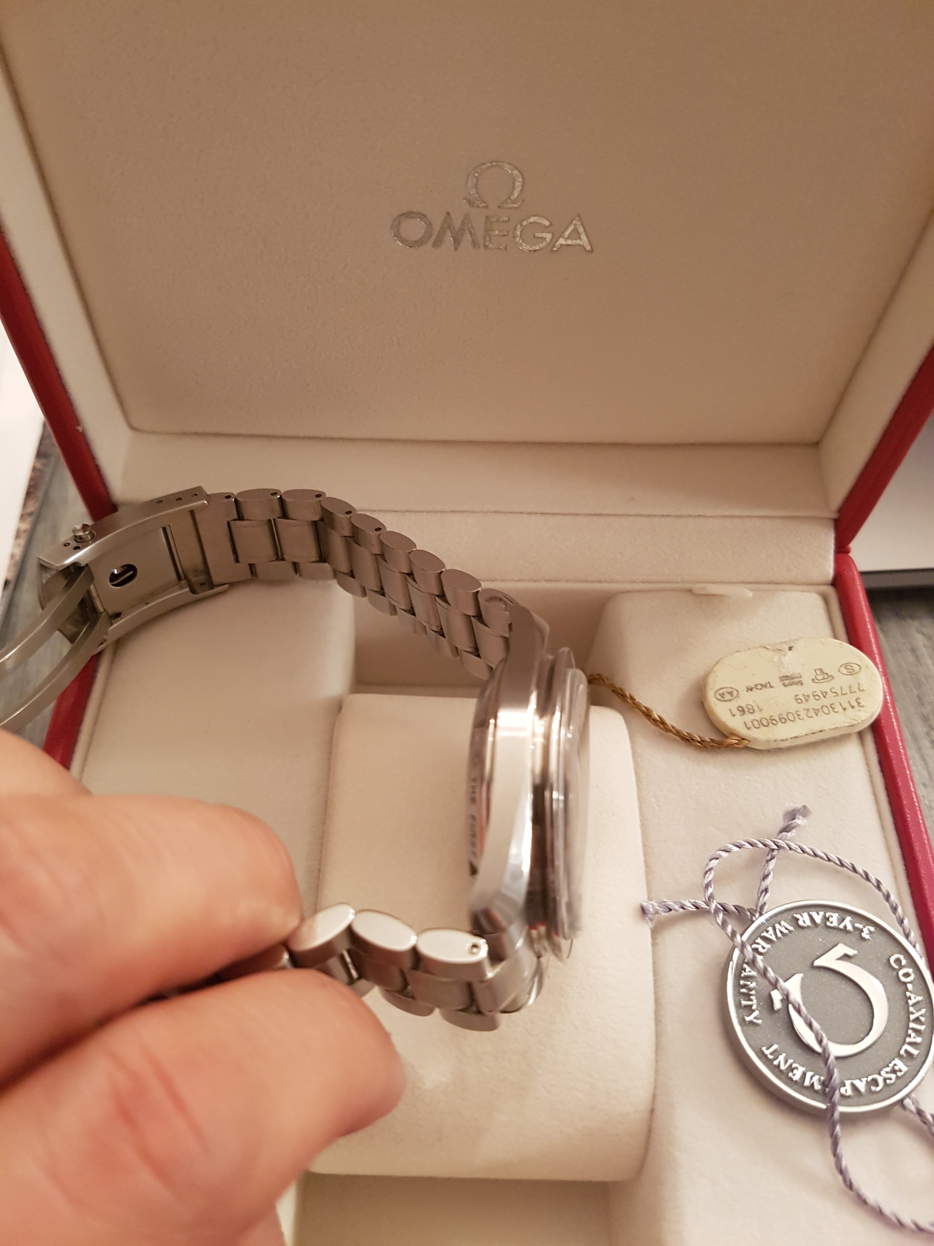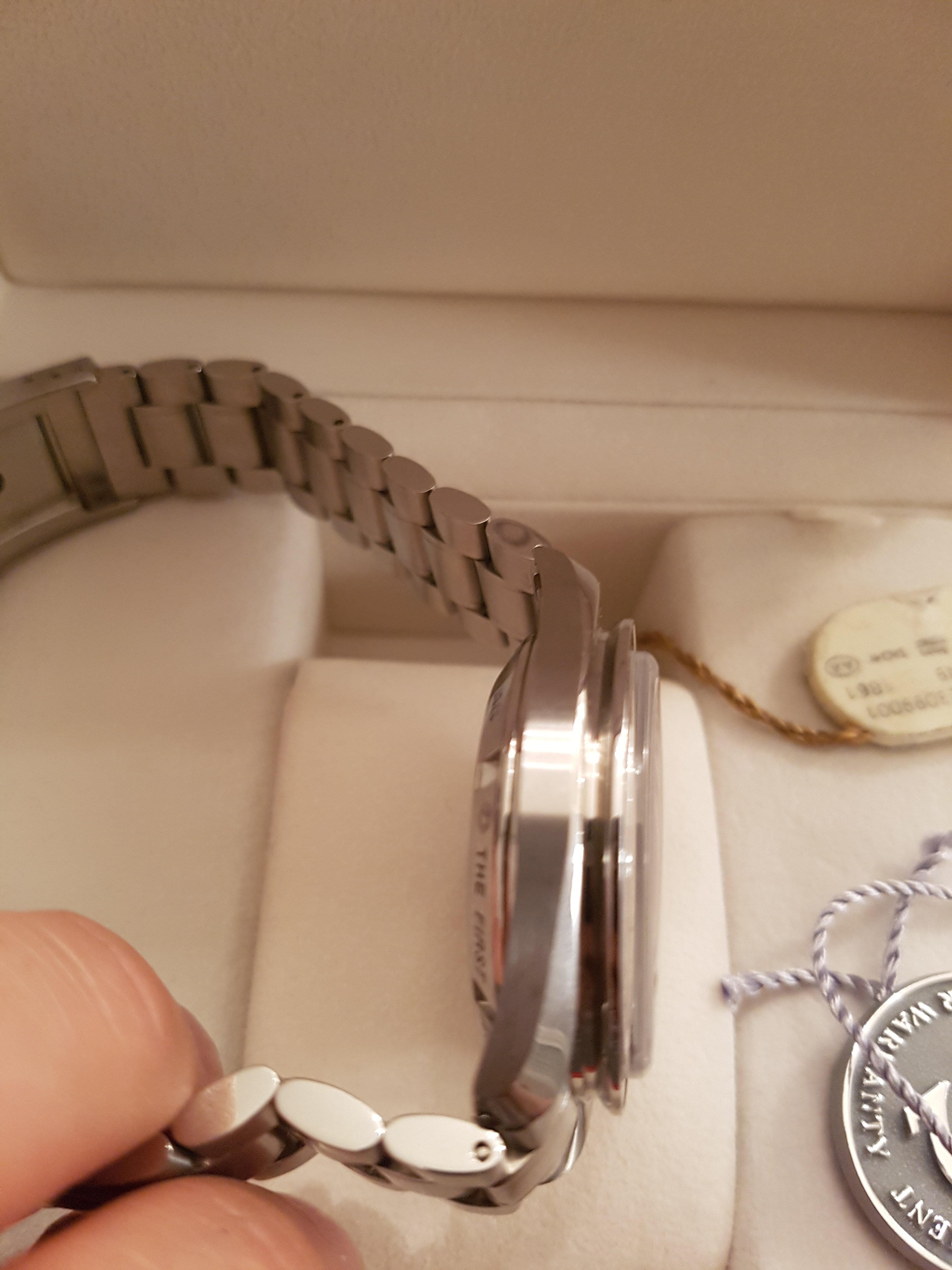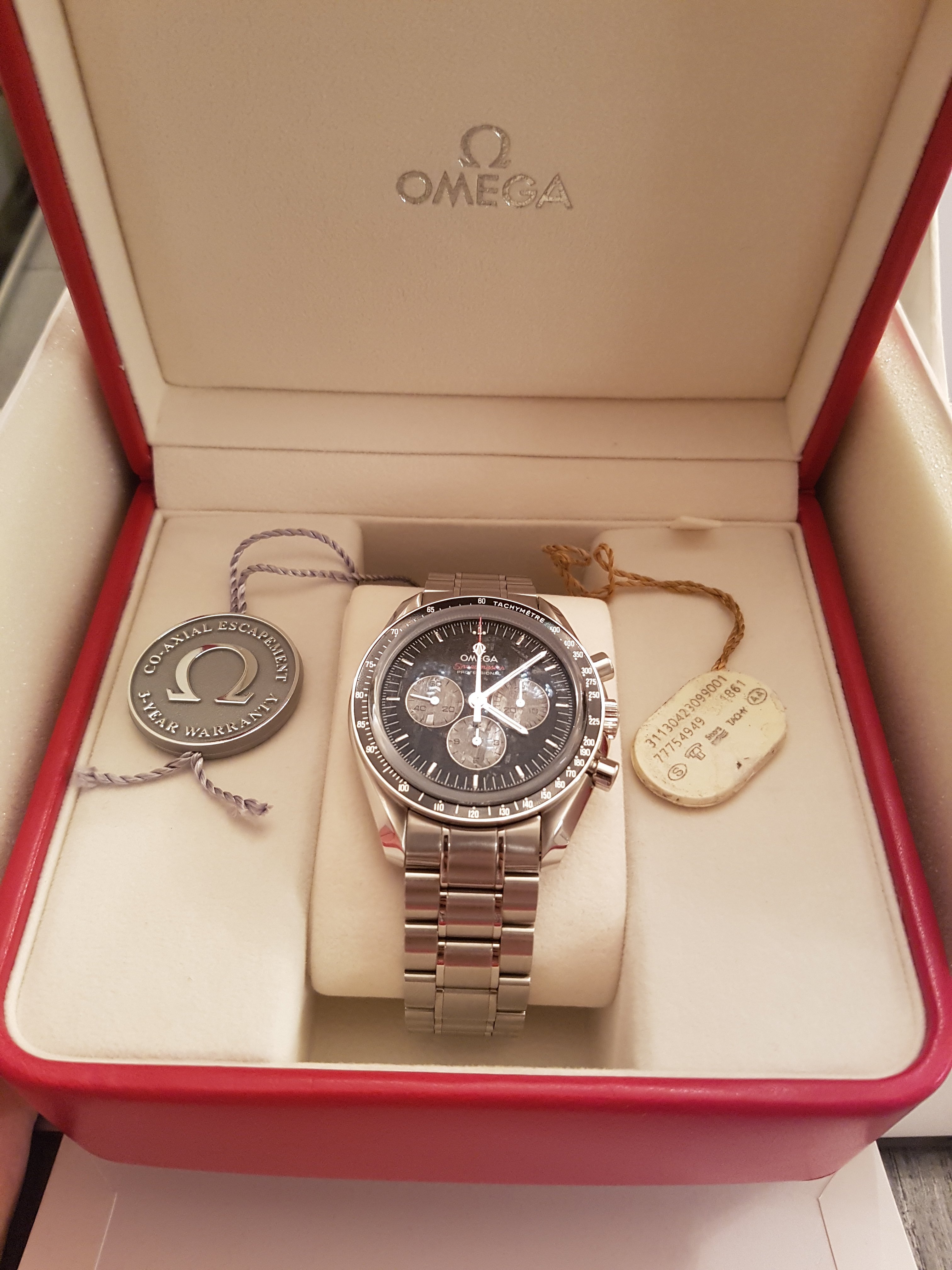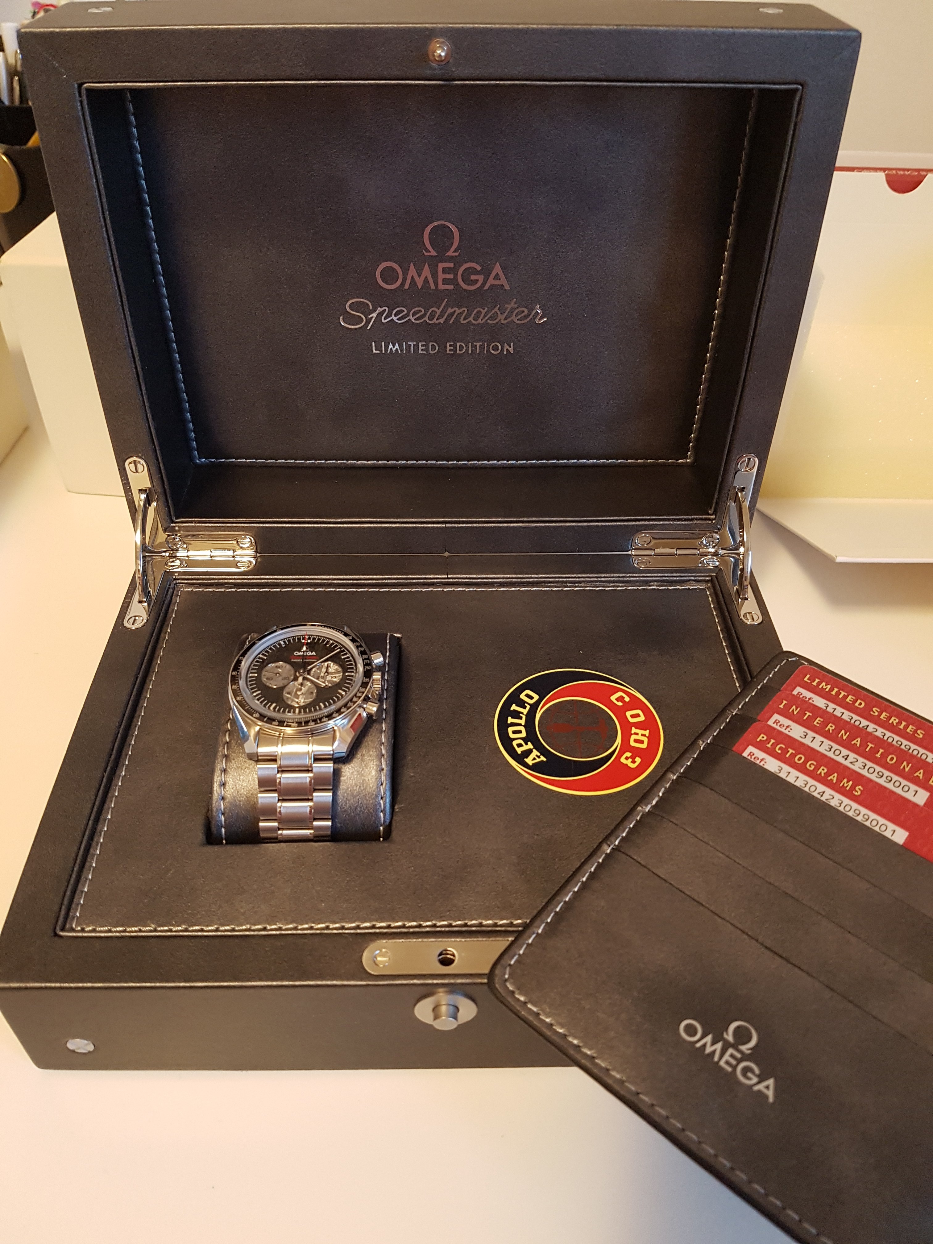 Congrats on the new watch. I picked up a new Apollo Soyuz with the original box and papers this past May from the San Diego OB. I then took it to Spacefest and got astronaut Vance Brand who flew on Apollo Soyuz to sign the box and hold the watch. I love the meteorite dial and the back of the watch which has the Apollo Soyuz design created by space artist Robert McCall. Wear the watch with Omega Pride. Awesome watch.