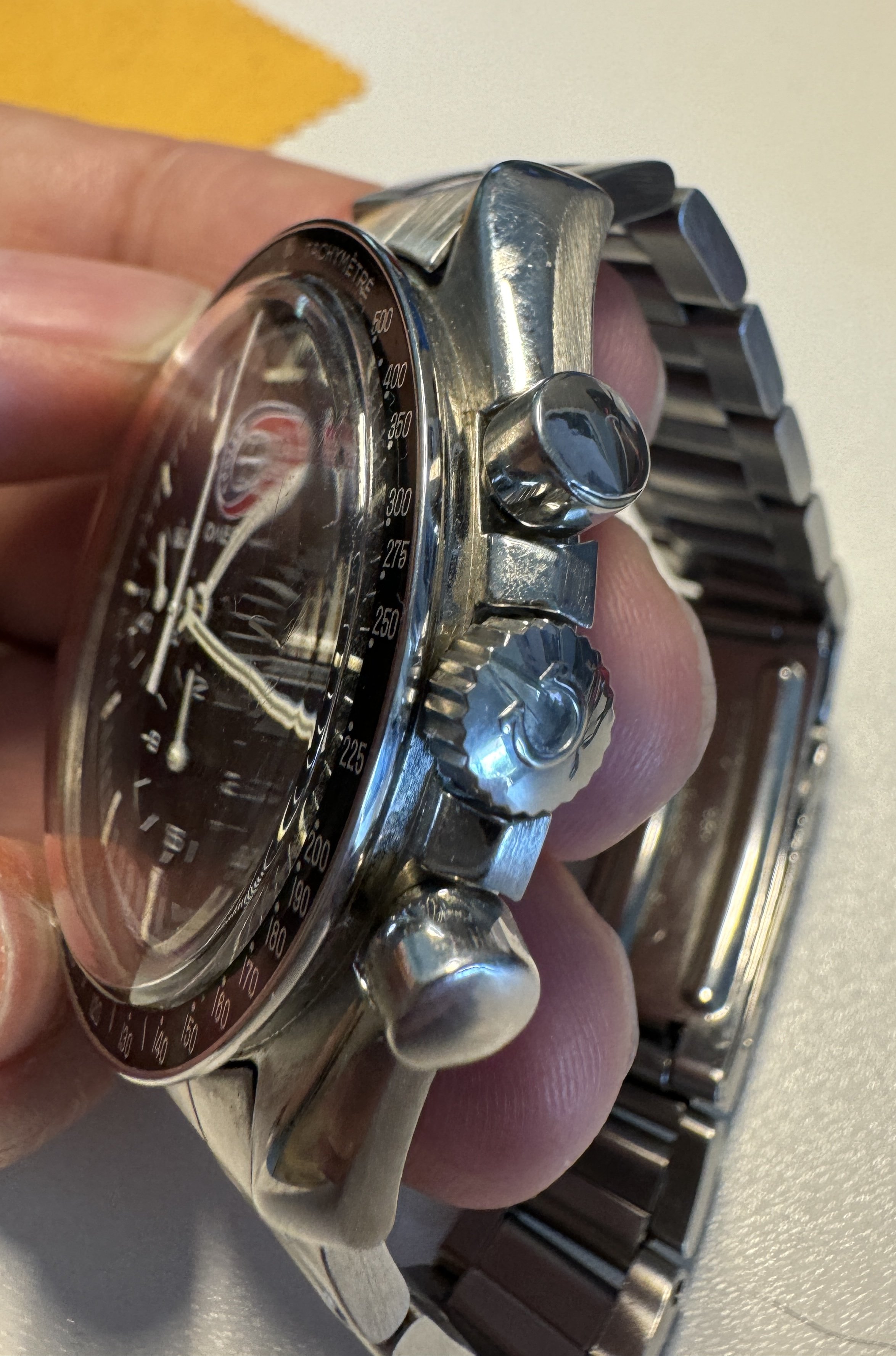 ·Great thread. Anyone know of any vintage dealers who may have imperfect models for sale….ie…no bracelet…or service pushers and crowns. I know that all original examples go for a huge premium. Generally, what do the ones that are in good condition but with service parts generally sell for? I’m very interested in purchasing an imperfect one to wear.