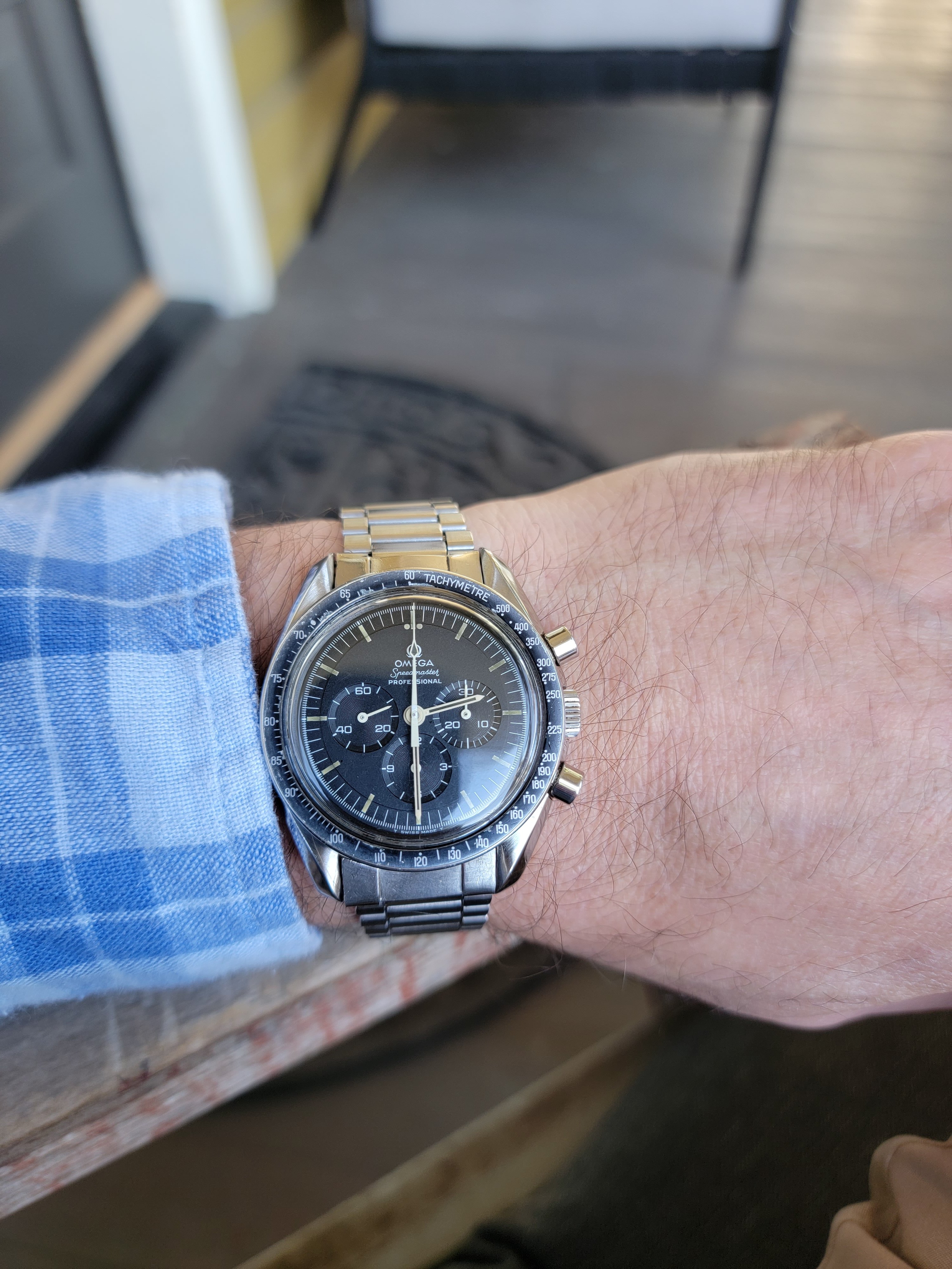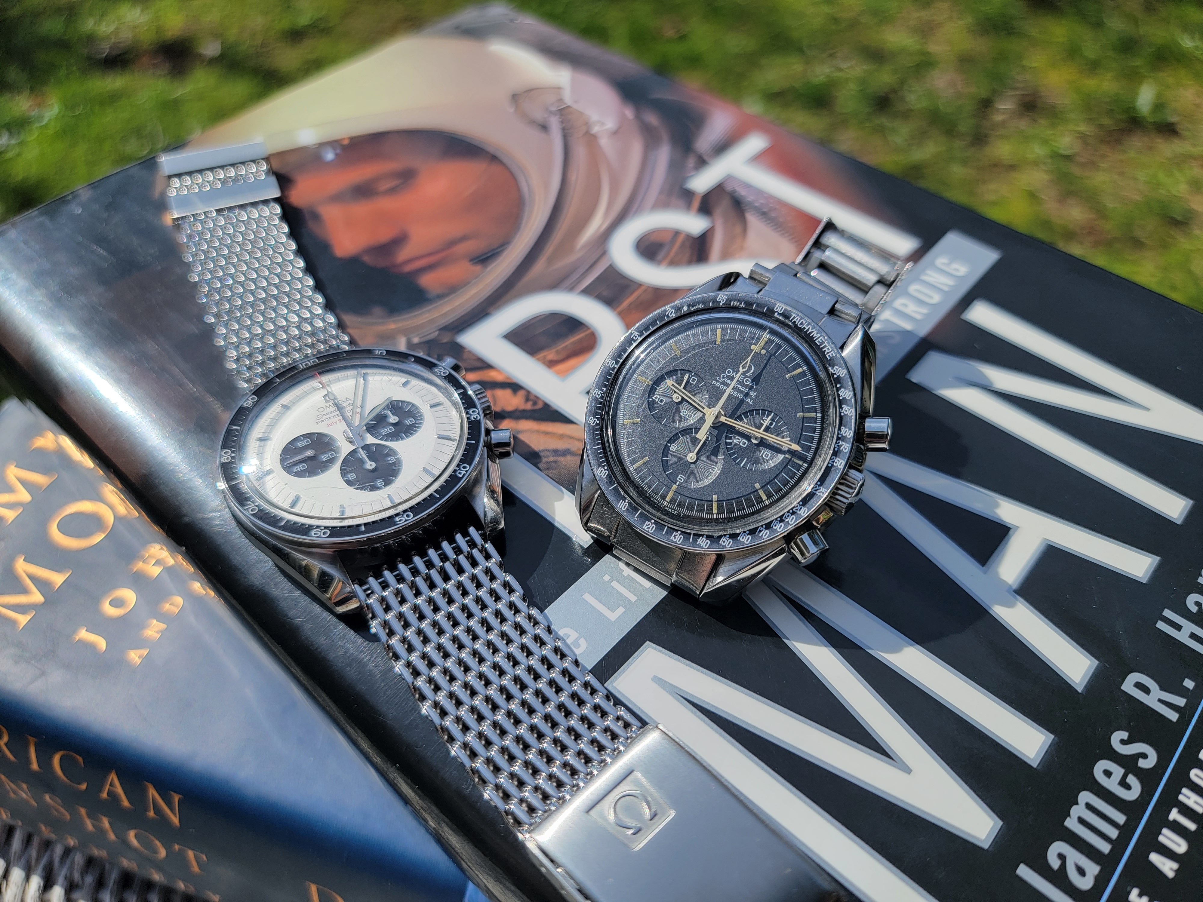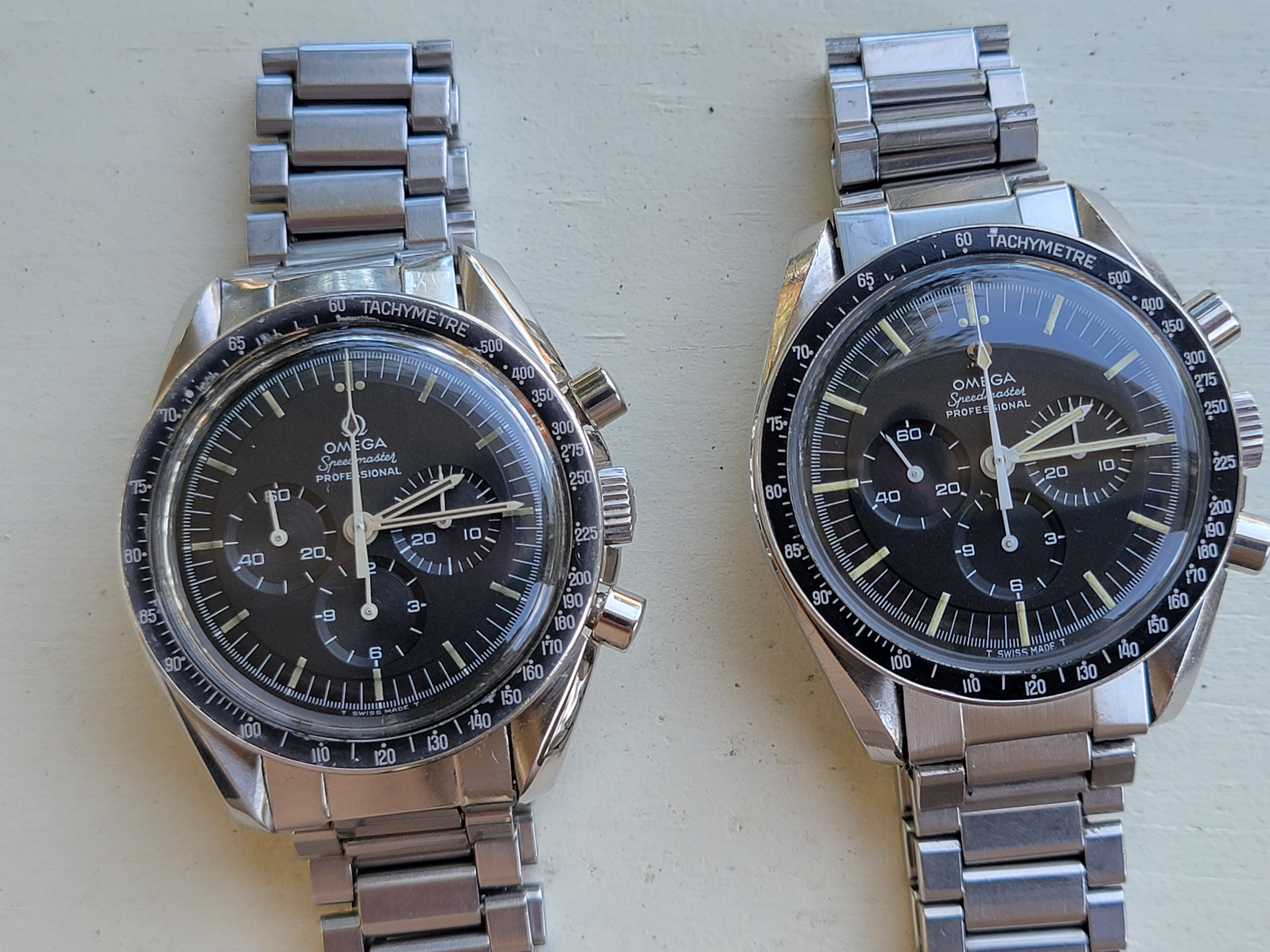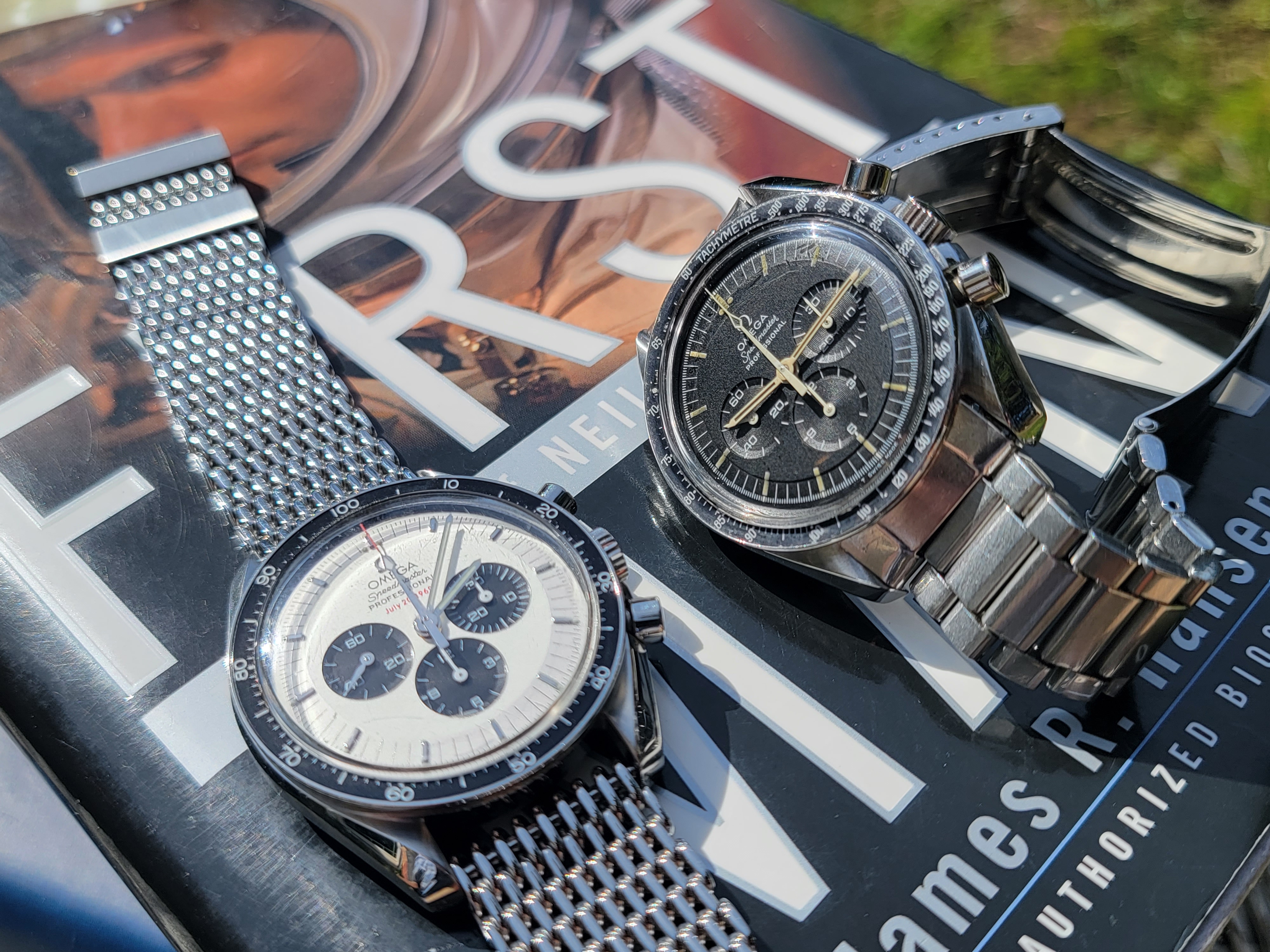 Besides the low production numbers, part of the attraction of the straight writing engravings is the joyful celebration they project. The first moon landing had just taken place and Omega was caught up in the celebration and excitement. Omega didn't know what to do but they had to do something because they were bursting with pride. "THE FIRST WATCH WORN ON THE MOON" was the result. Only later did the lawyers suggest that they might want to ask NASA if they were okay with identifying the Speedmaster as the Moon watch. So Omega holds back release, gets NASA's permission, and then releases the watch. They must have had committee meetings afterwards to discuss what they should put on the watches going forward, because the inscription changed after these straight writing casebacks. So to me, these references are like a frozen snapshot of youthful joy.