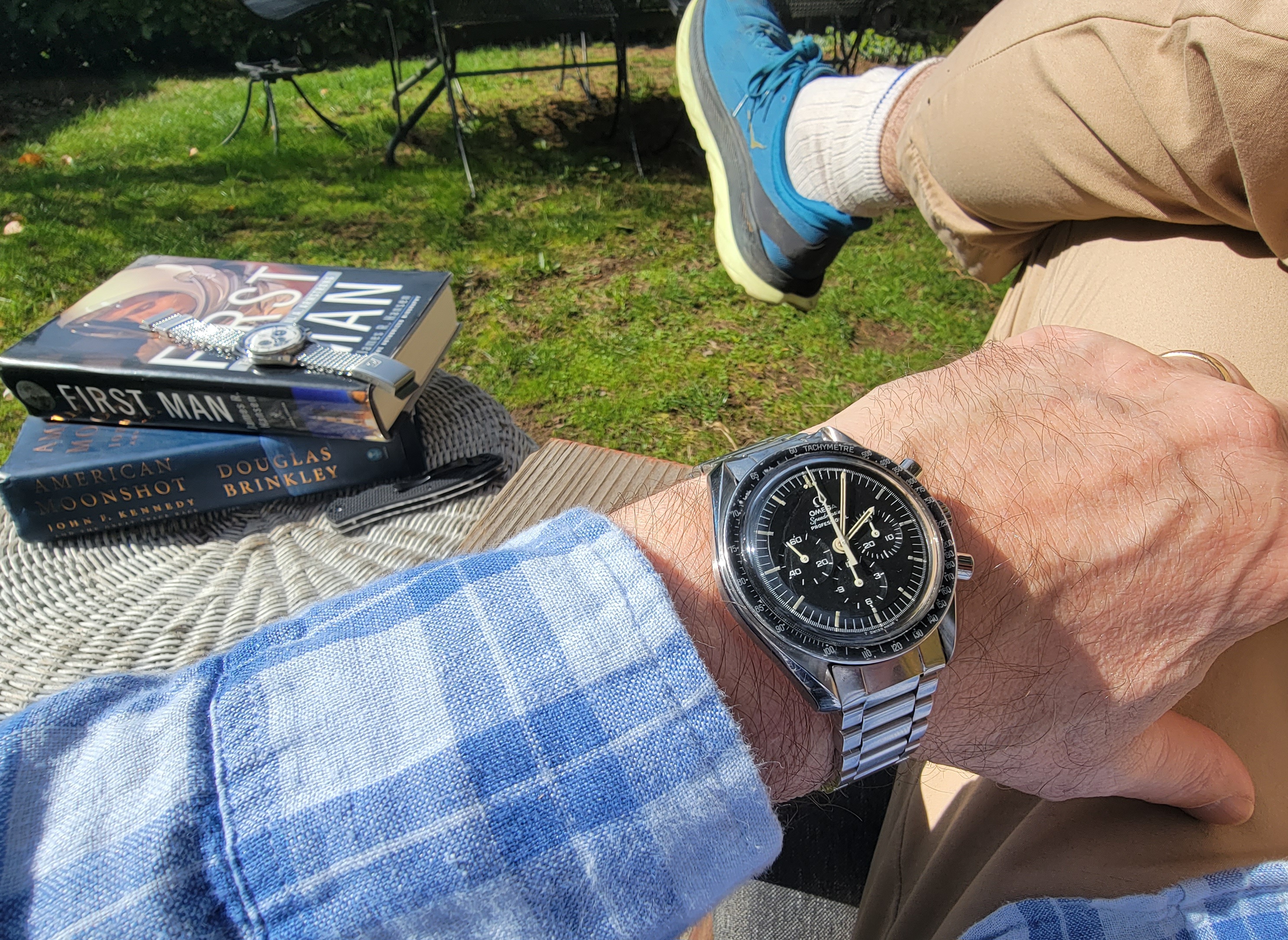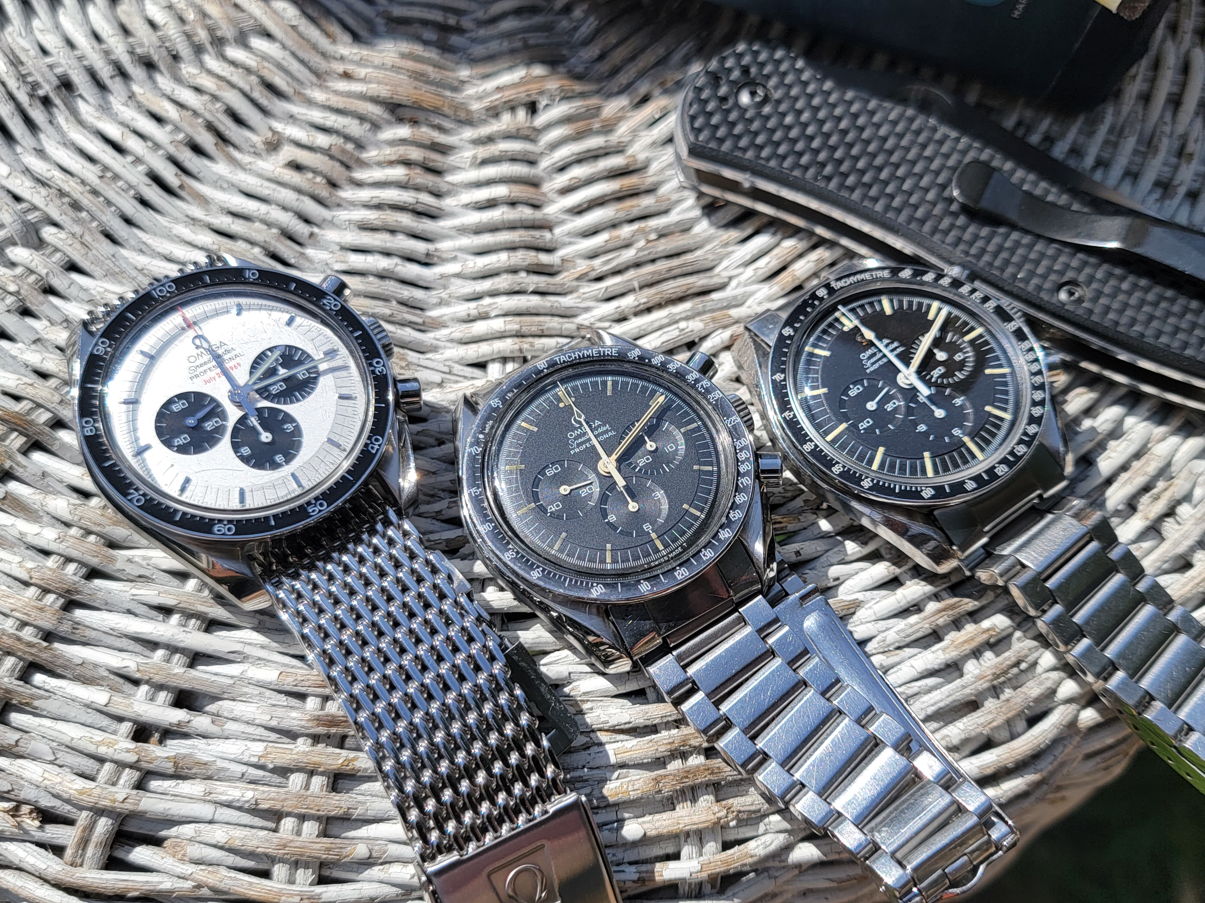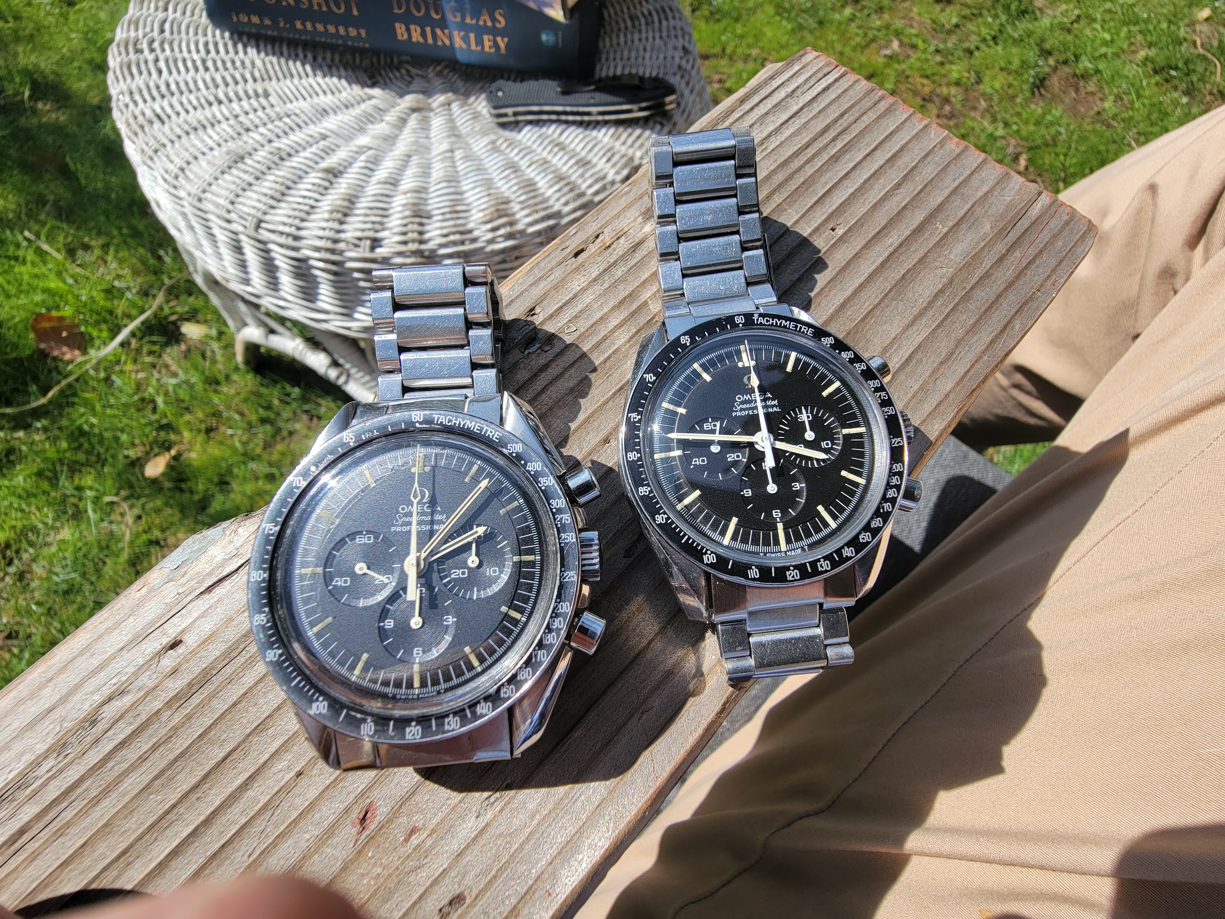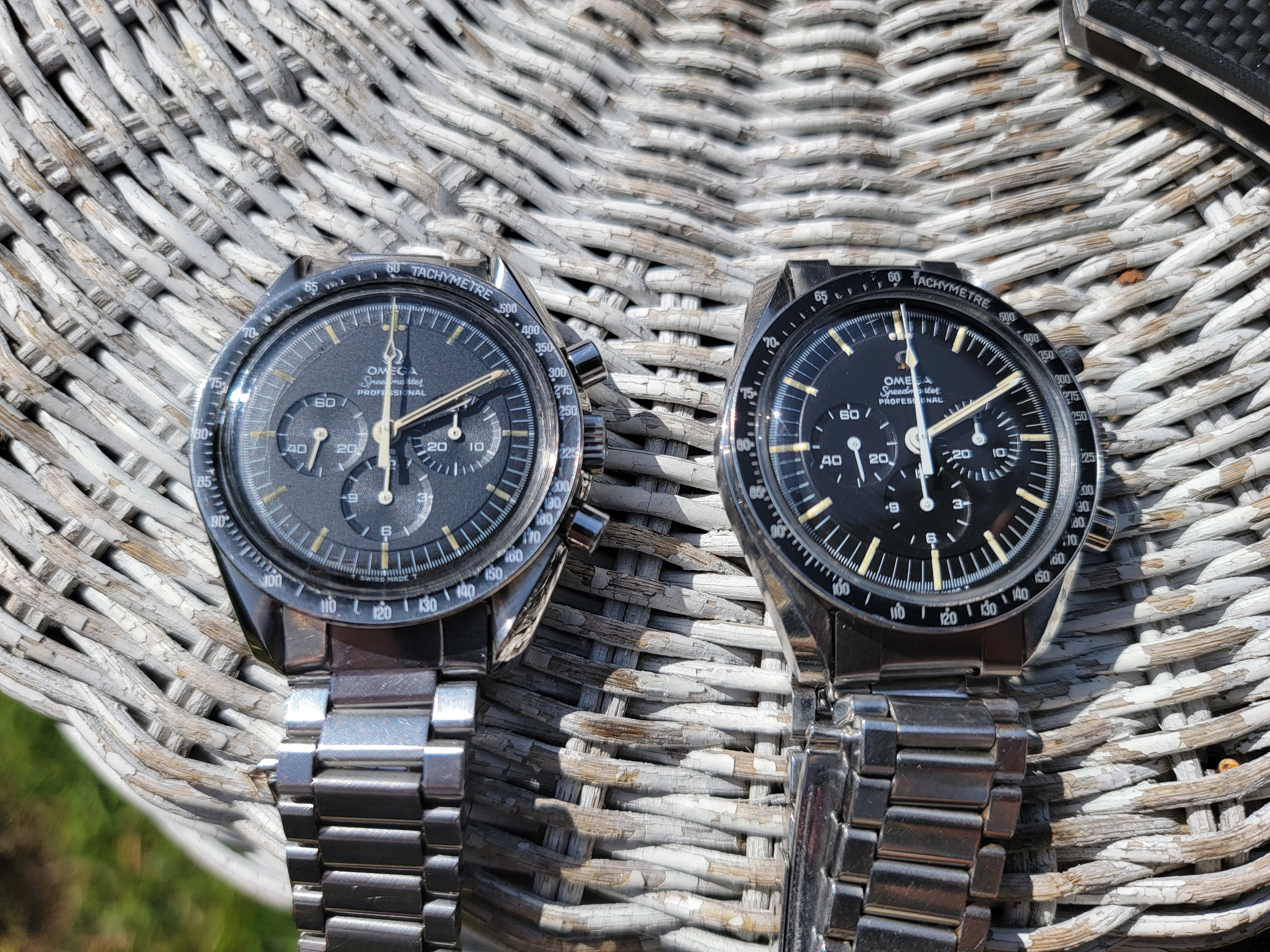 Besides the low production numbers, part of the attraction of the straight writing engravings is the joyful celebration they project. The first moon landing had just taken place and Omega was caught up in the celebration and excitement. Omega didn't know what to do but they had to do something because they were bursting with pride. "THE FIRST WATCH WORN ON THE MOON" was the result. Only later did the lawyers suggest that they might want to ask NASA if they were okay with identifying the Speedmaster as the Moon watch. So Omega holds back release, gets NASA's permission, and then releases the watch. They must have had committee meetings afterwards to discuss what they should put on the watches going forward, because the inscription changed after these straight writing casebacks. So to me, these references are like a frozen snapshot of youthful joy.