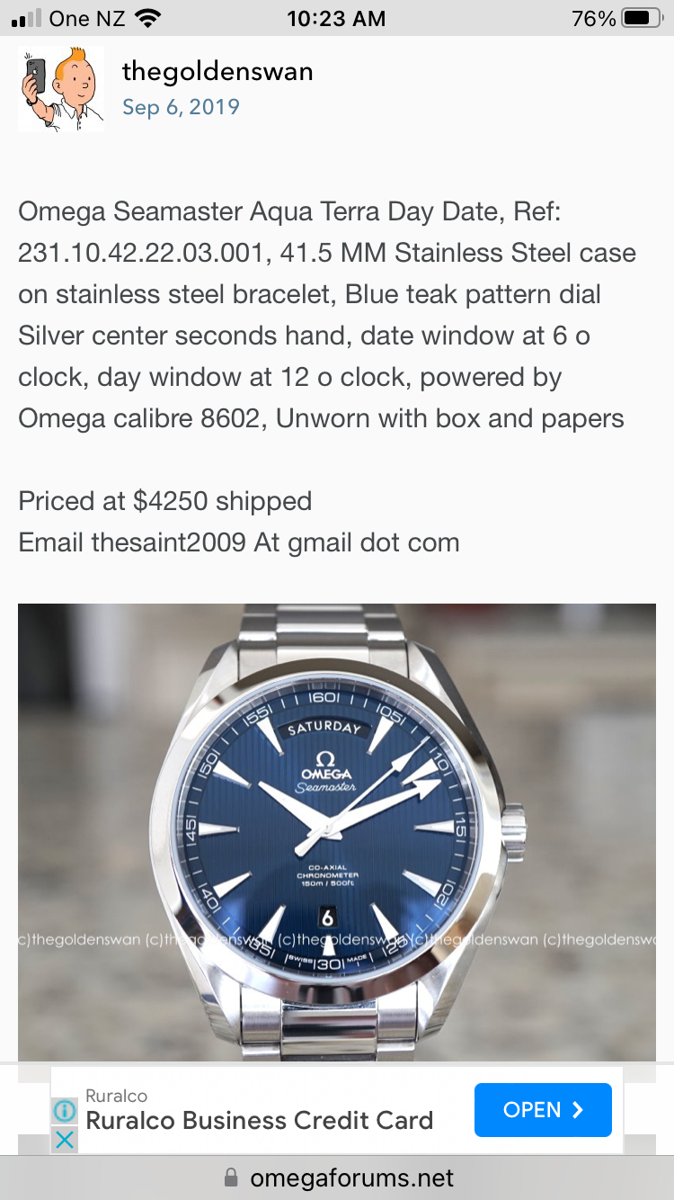 I'm new here, and currently have a PO 2208 whichI love. I want to add another Omega to the collection and have been looking for a preowned or unworn Aqua Terra Day Date (231.10.42.22.03.001) now discontinued. I've been looking for about a year now but can't find one for sale anywhere in the UK. For a non-limited edition watch they sure seem very uncommon on the secondary market