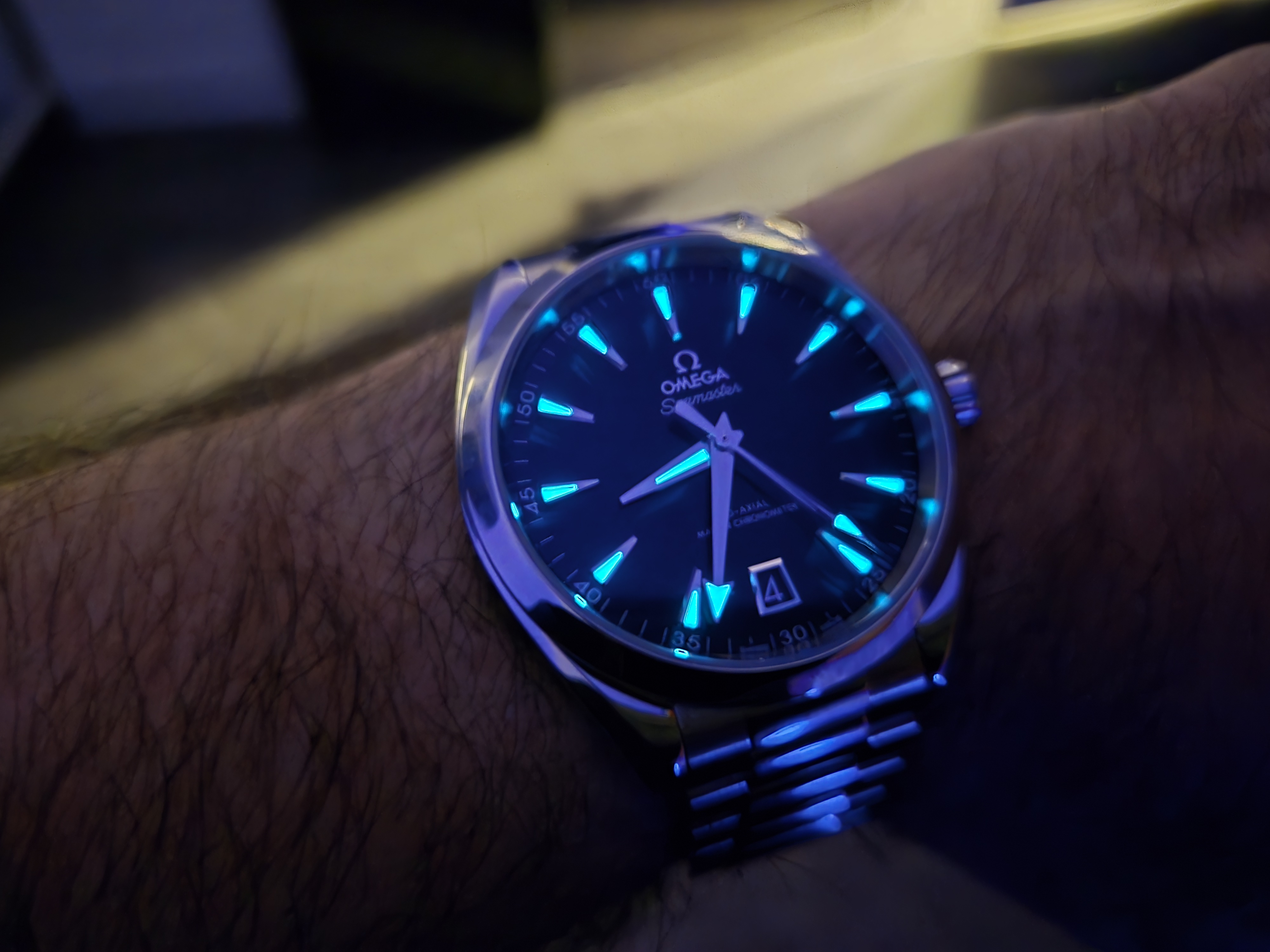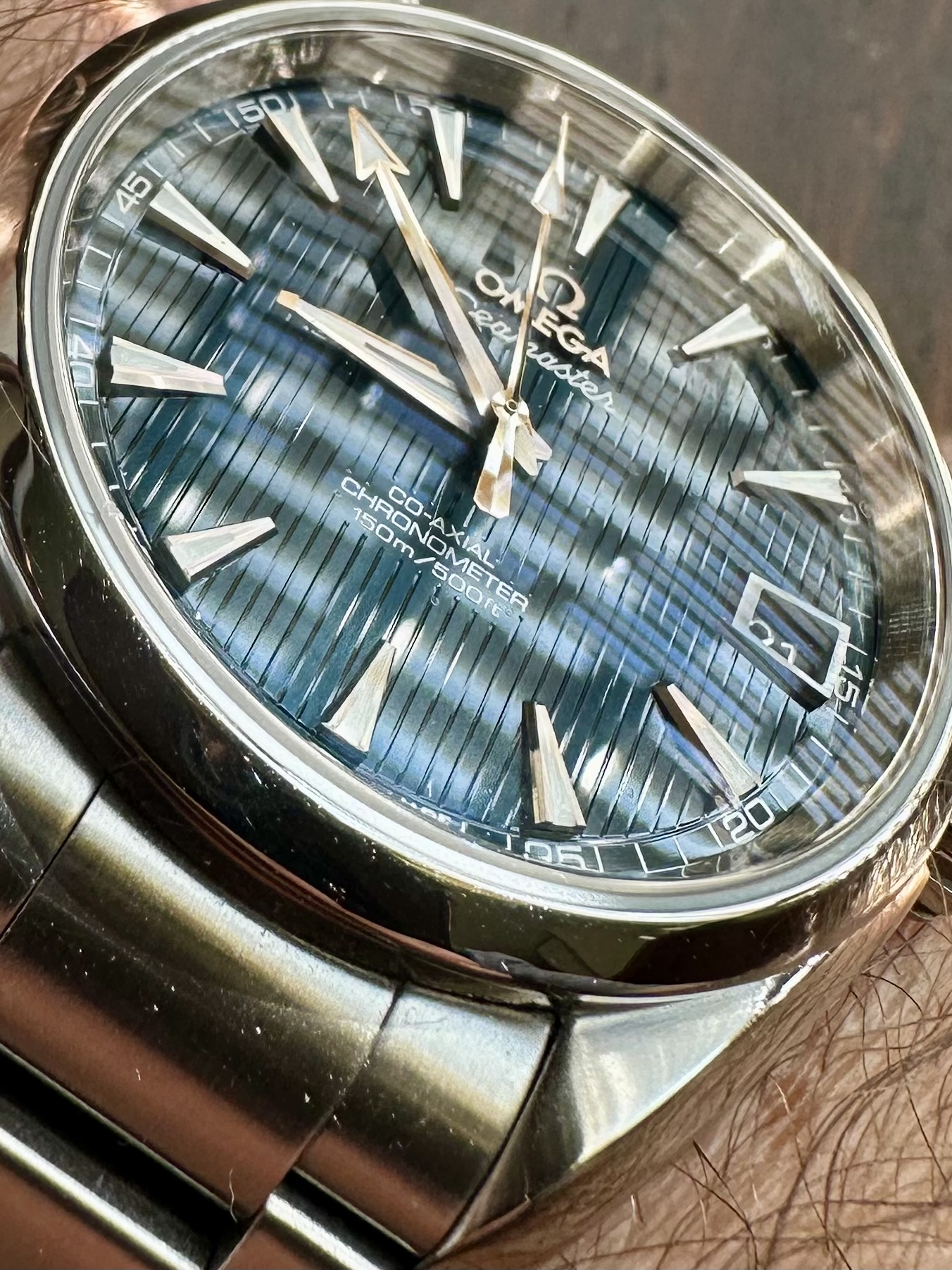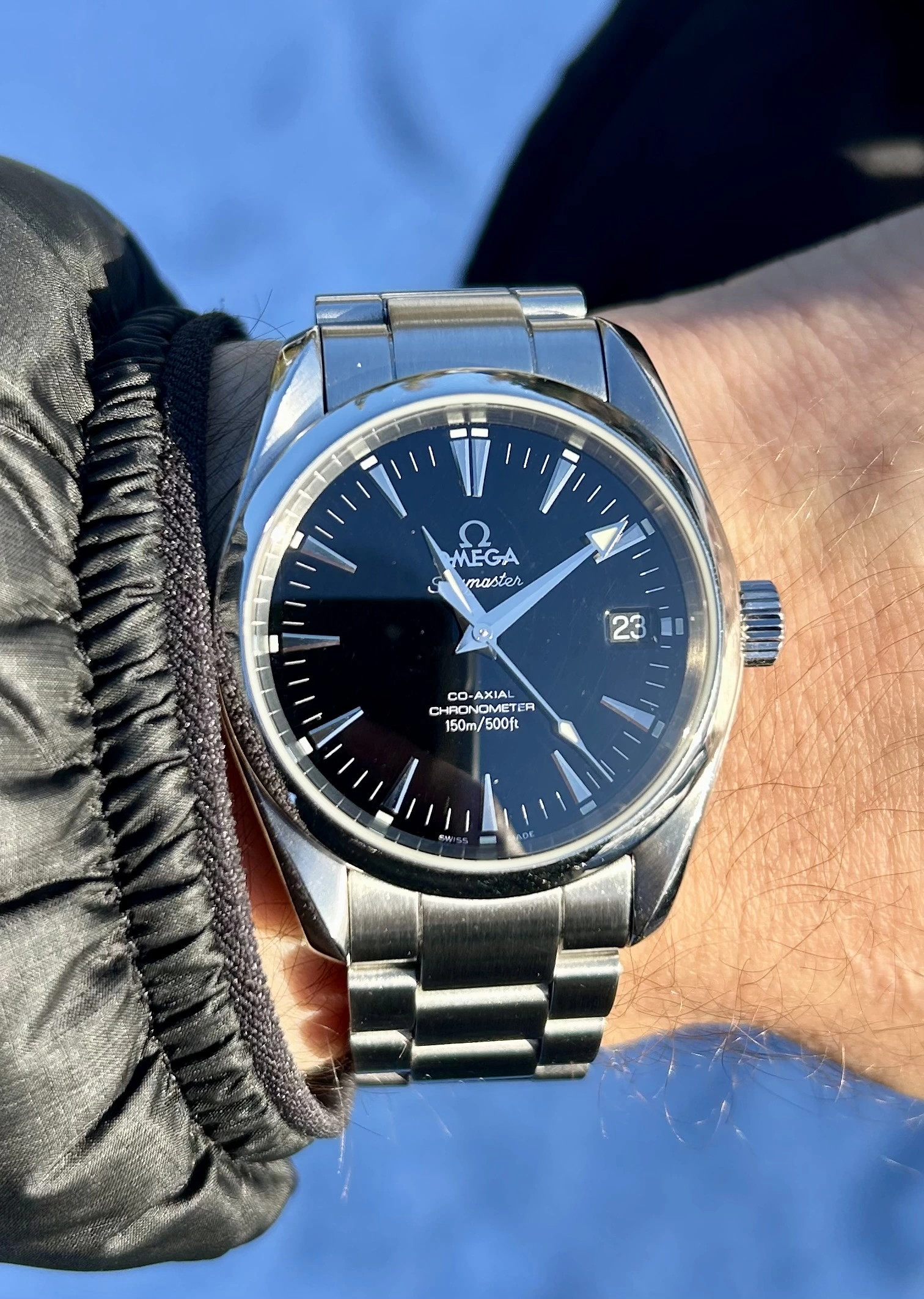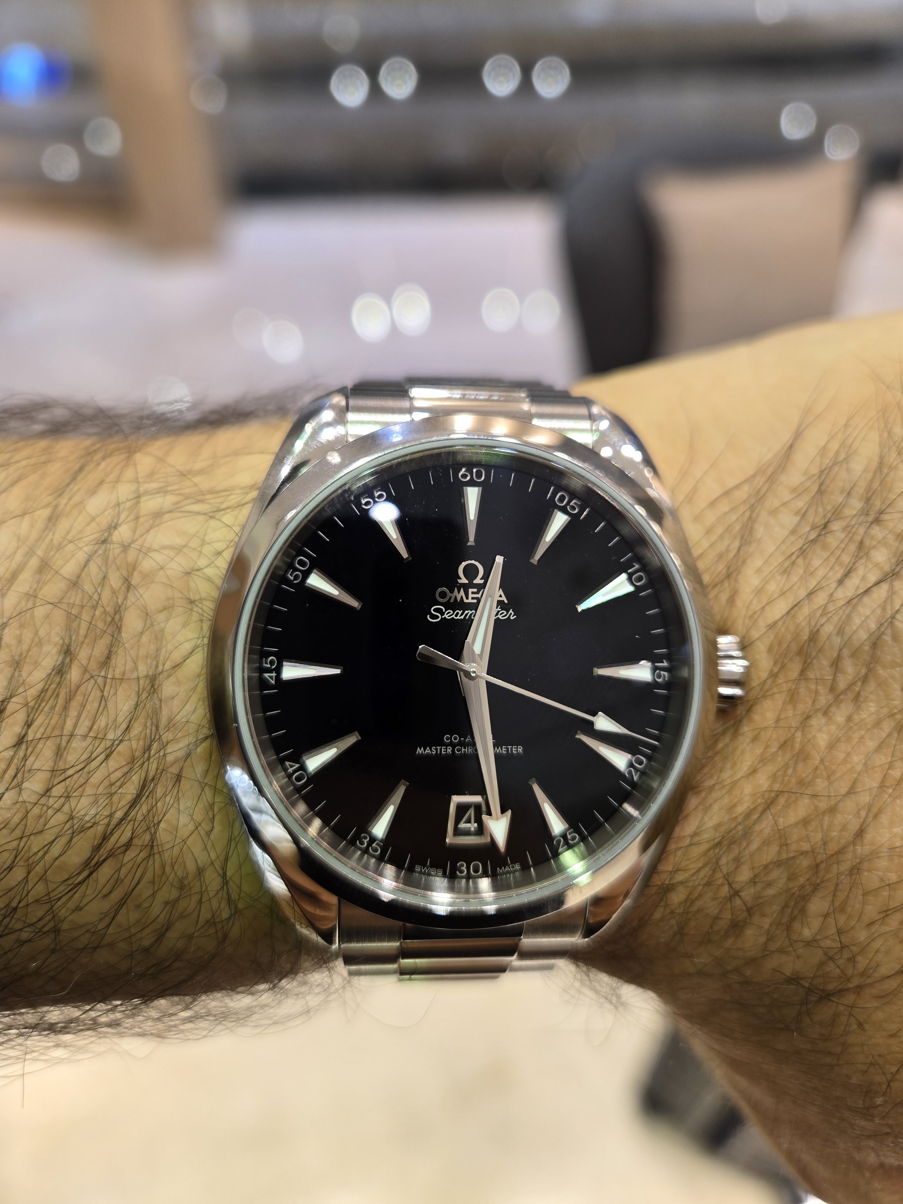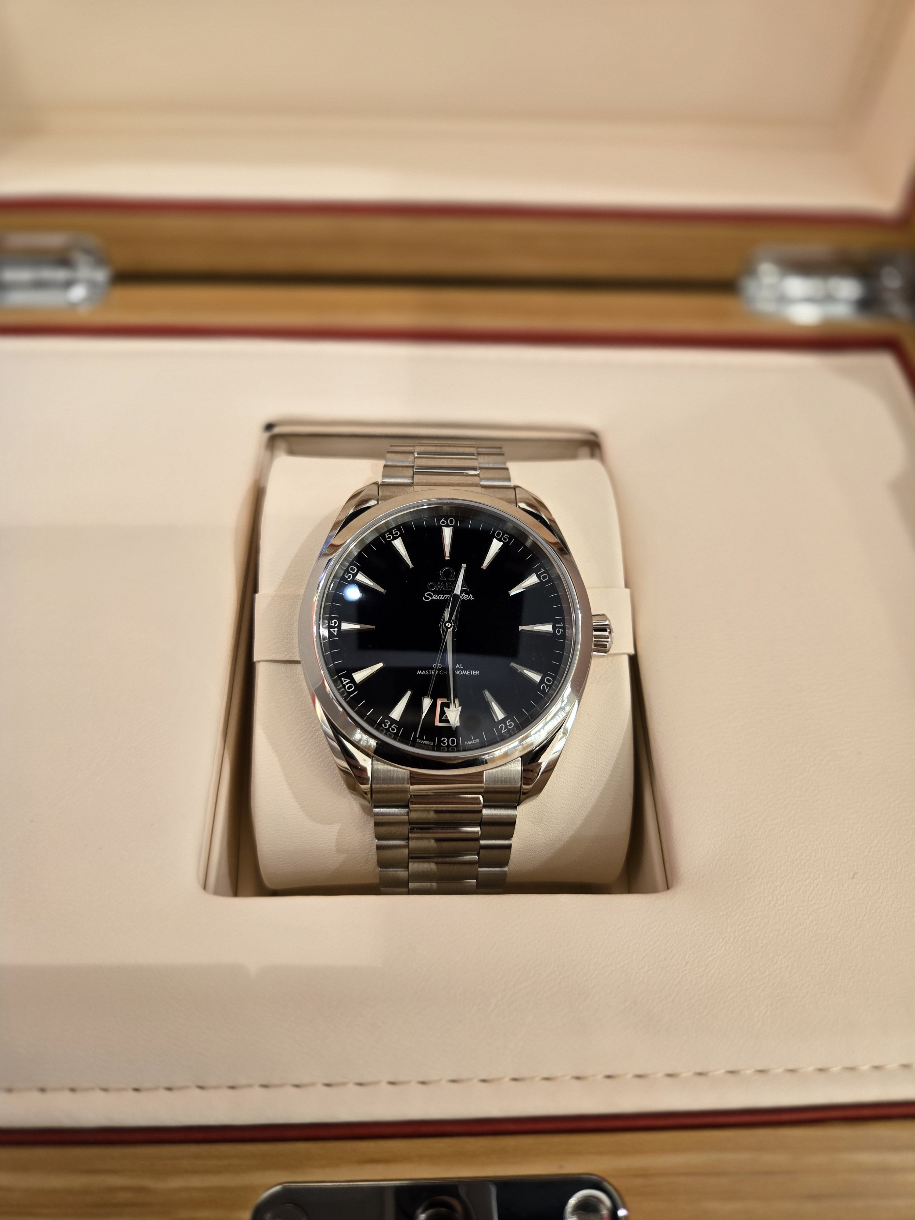 Picked up an Aqua Terra Black Lacquer 41mm in Bahrain today. Absolutely stunning dial and wonderfully fitting bracelet. Also love the lume and caseback...all in all will make a wonderful daily....