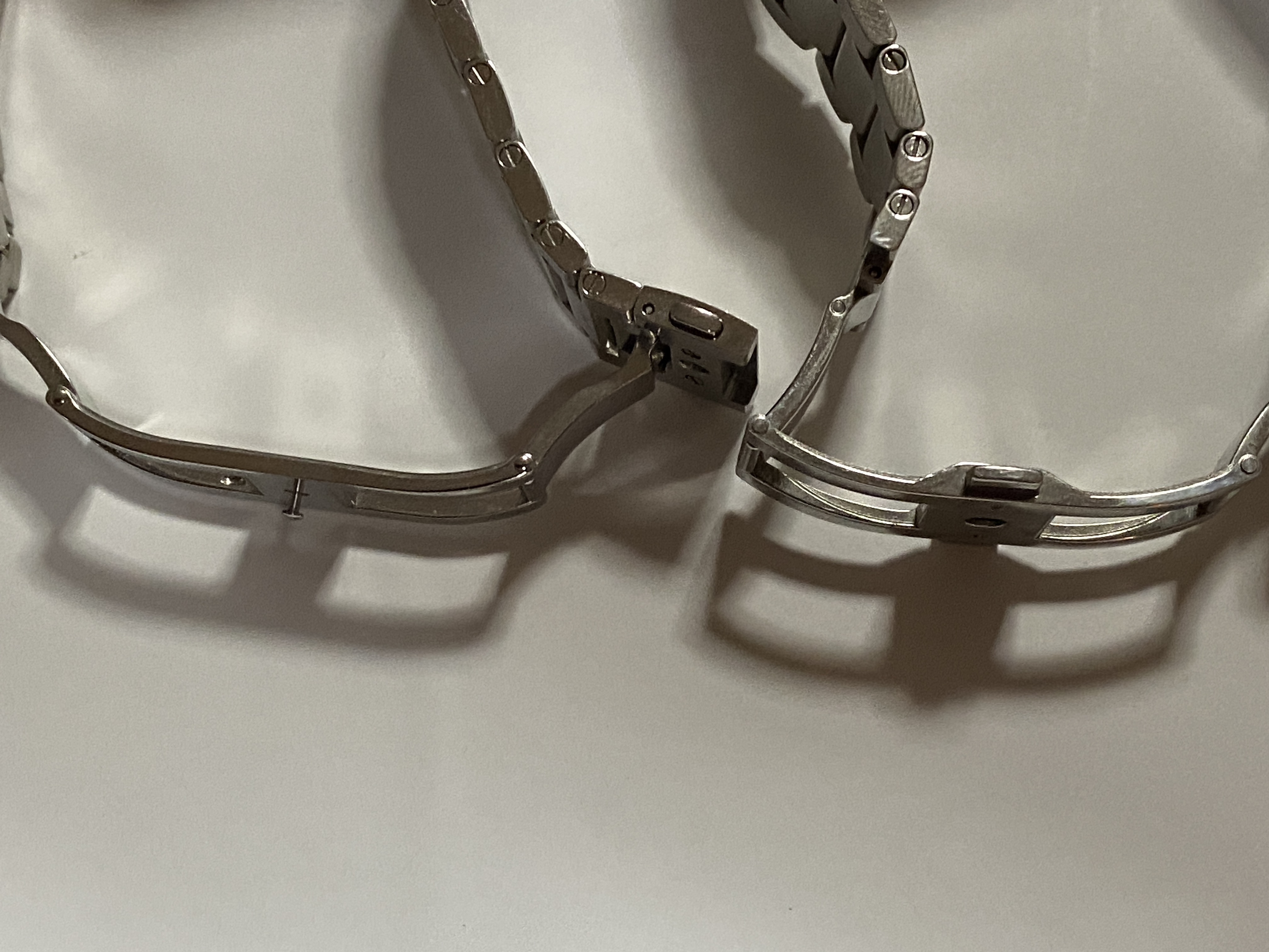 Here’s a retrofitted clasp. Both bracelets are previous gen AT bracelets (8500 series). Clasp on the left is the latest iteration on the 8900 series bracelets. This is the larger 41 and 41.5mm AT’s as those bracelets are 20mm end links tapering to 18mm at the clasp. The smaller size AT’s (38mm and 38.5mm) will have 19mm bracelet tapering to 17mm clasp so be mindful of which one you order.