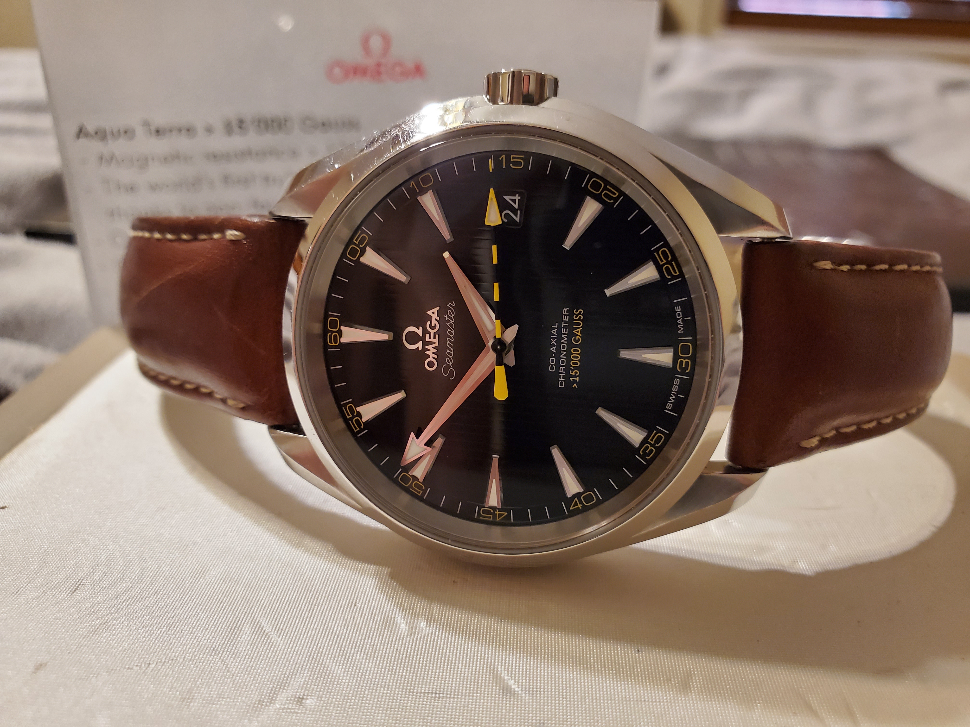 This was the first flagship Omega Aqua Terra which boasted the amazing antimagnetic properties. The yellow and black second hand is super unique. When I bought this watch it was nicknamed the BumbleBee.