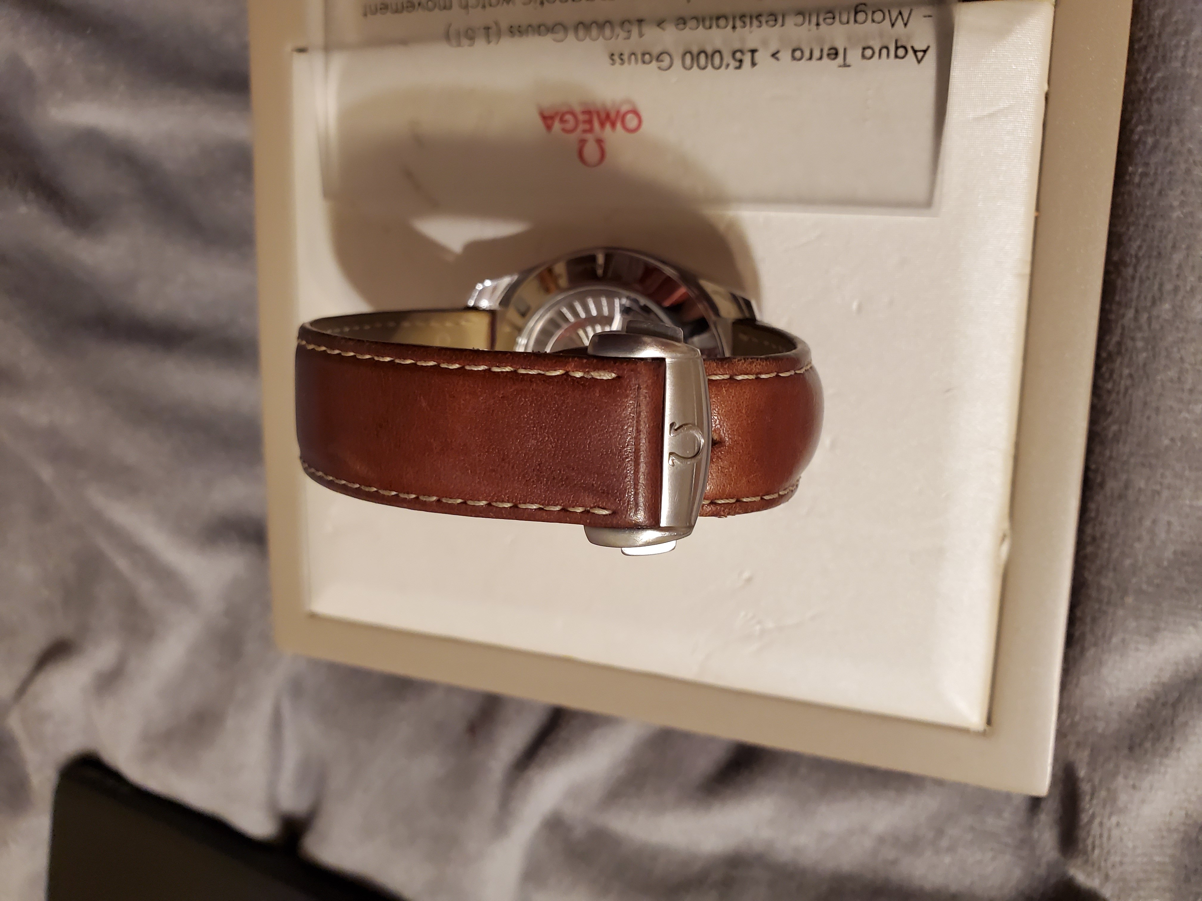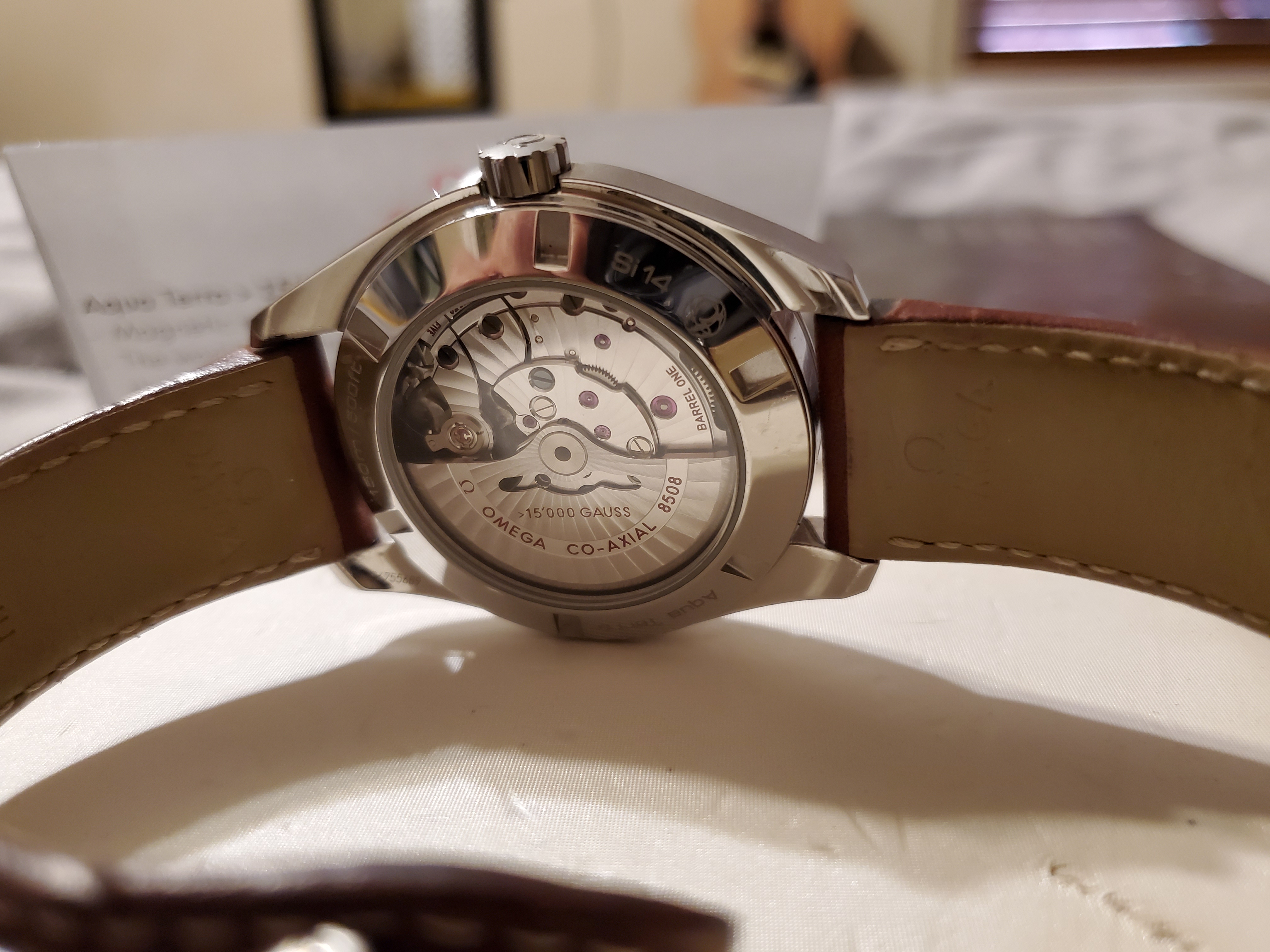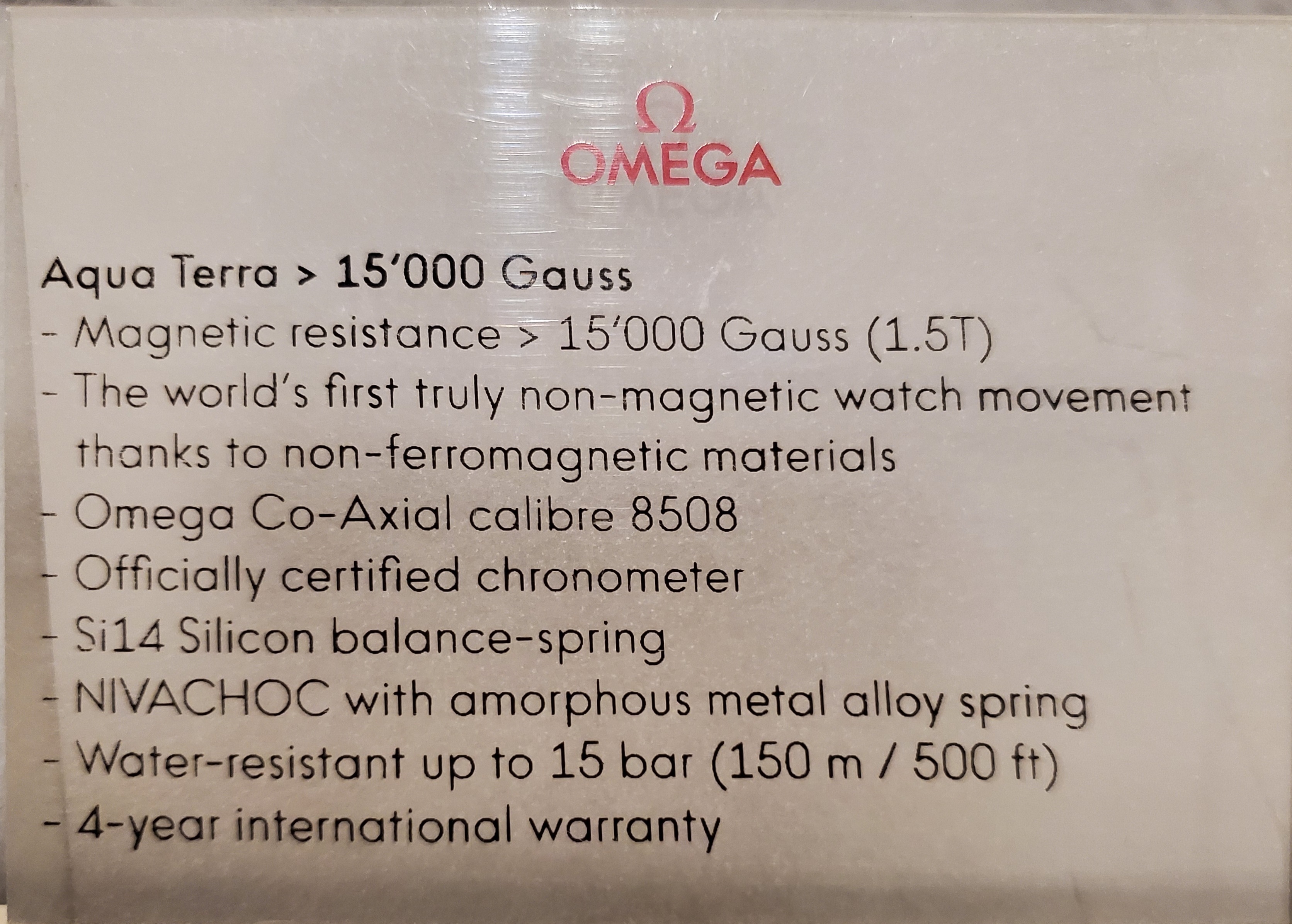 To celebrate Omega's antimagnetic features, the script of 15,000 Gauss was placed prominently on the dial.