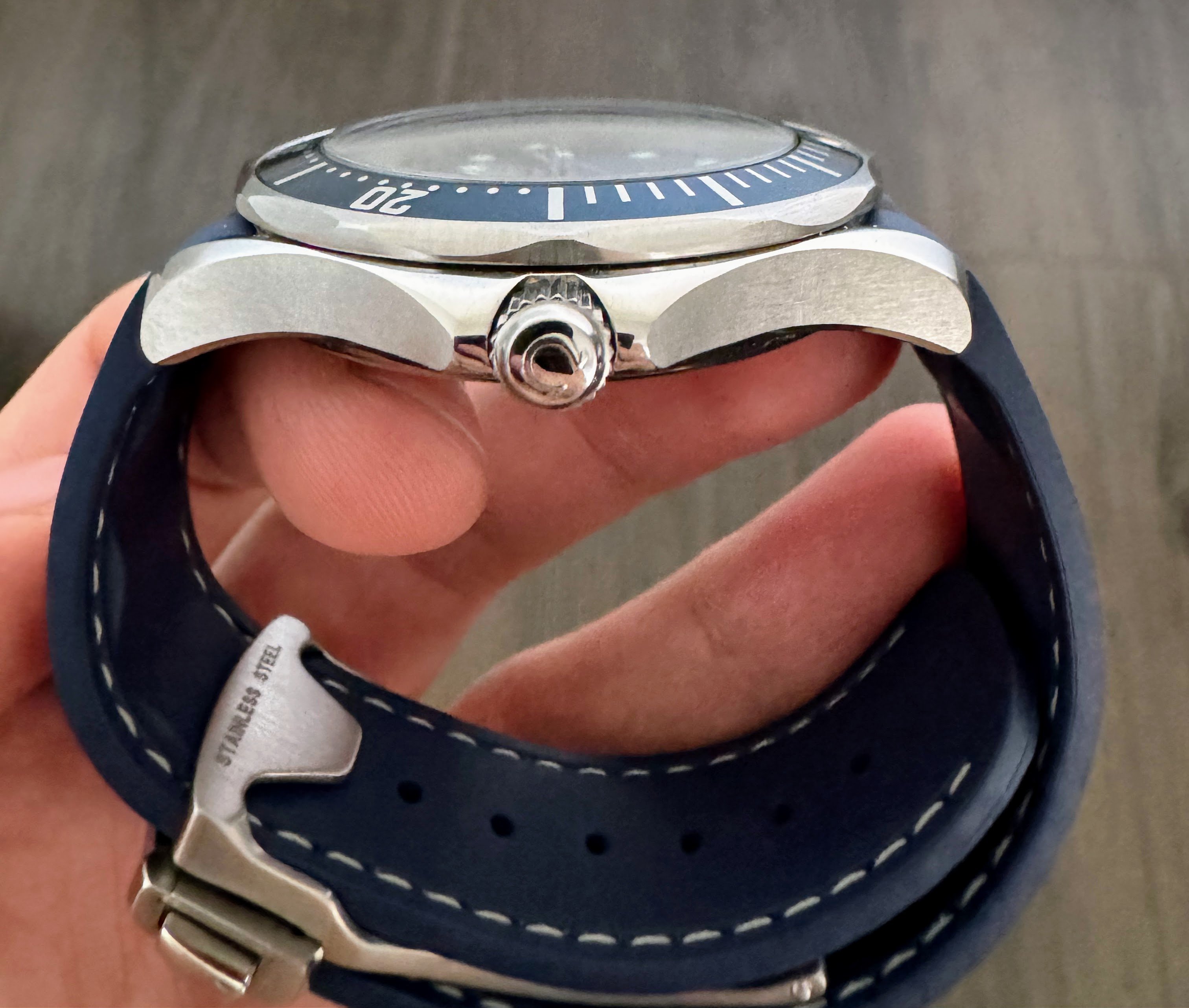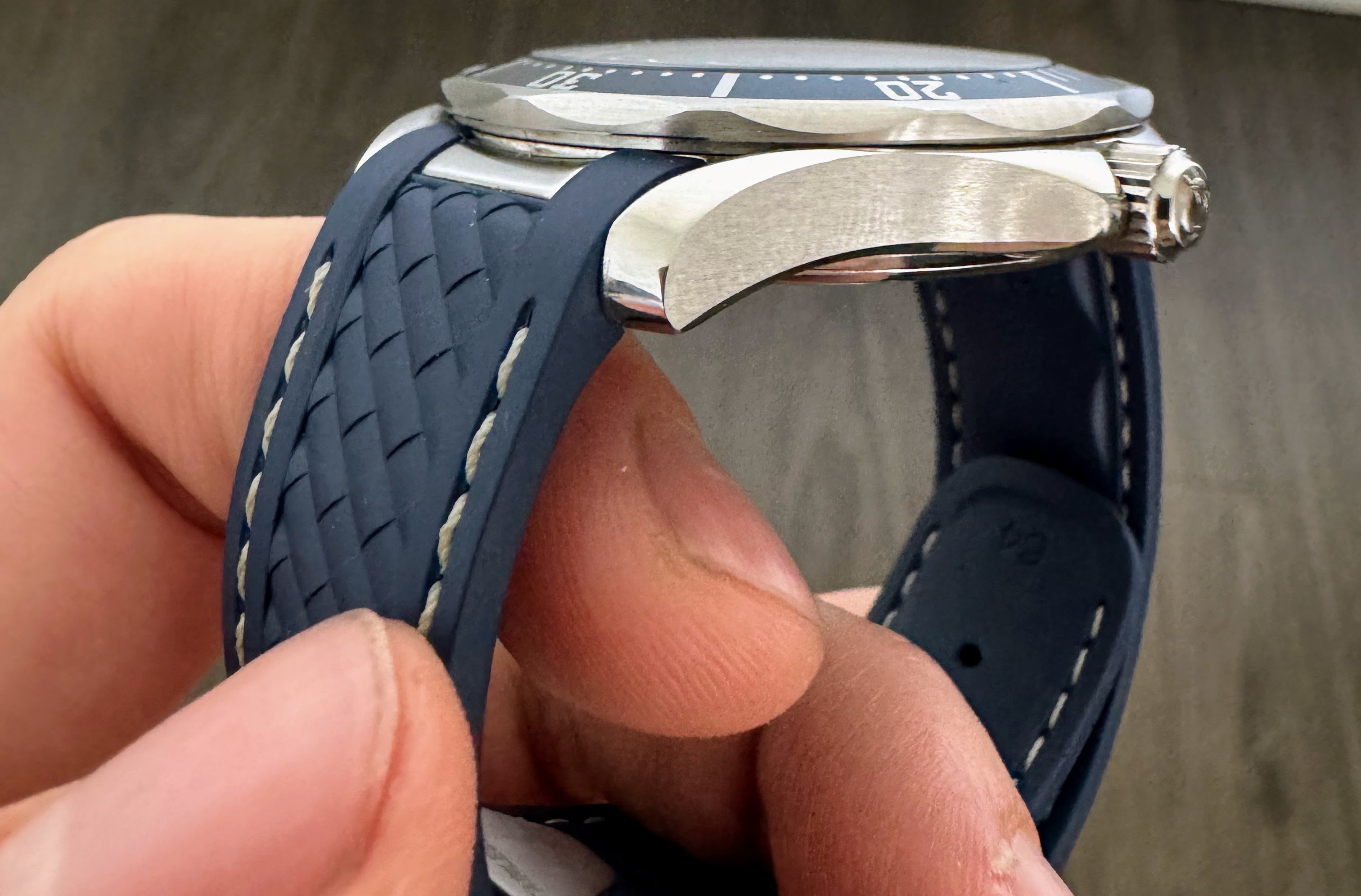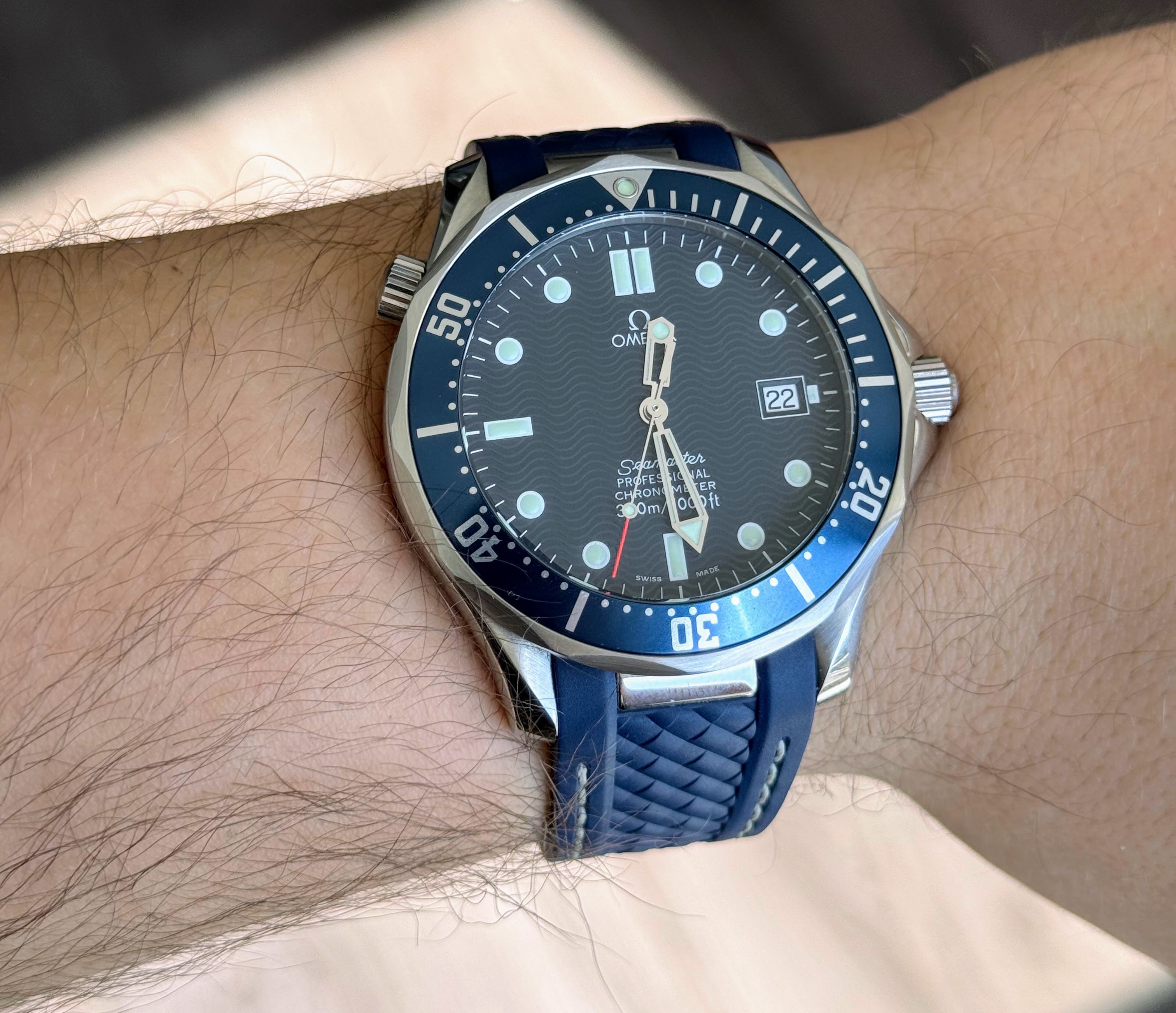 ·I'm experimenting with different straps for my SMP 300 2531.80 and I thought of trying the aqua terra rubber strap (which I think looks much better than the standard rubber strap for this watch). I had to use curved spring bars to make it work. I couldn't find a photo online with this configuration so here are some pictures in case someone else also considers the same strap 😀