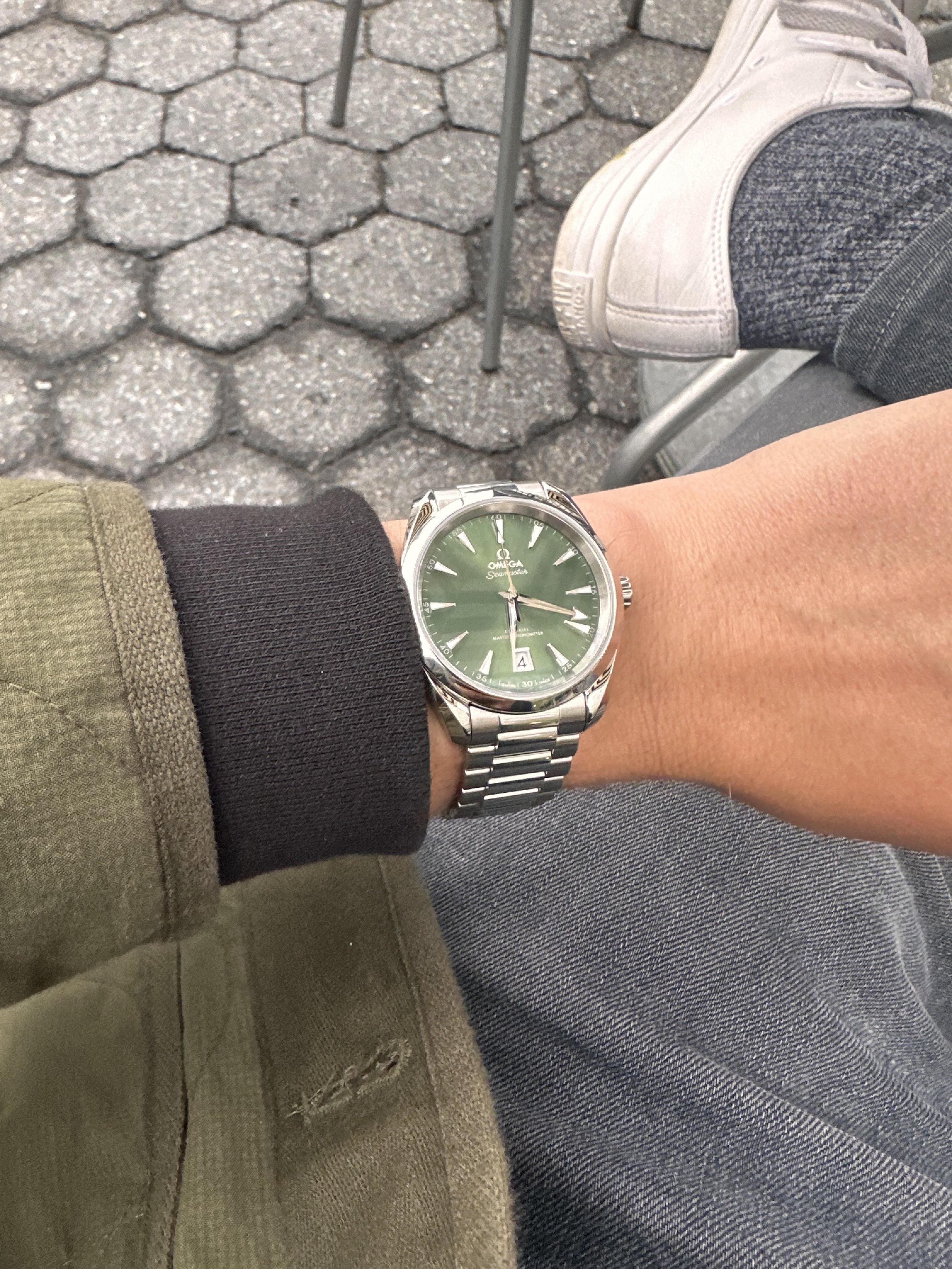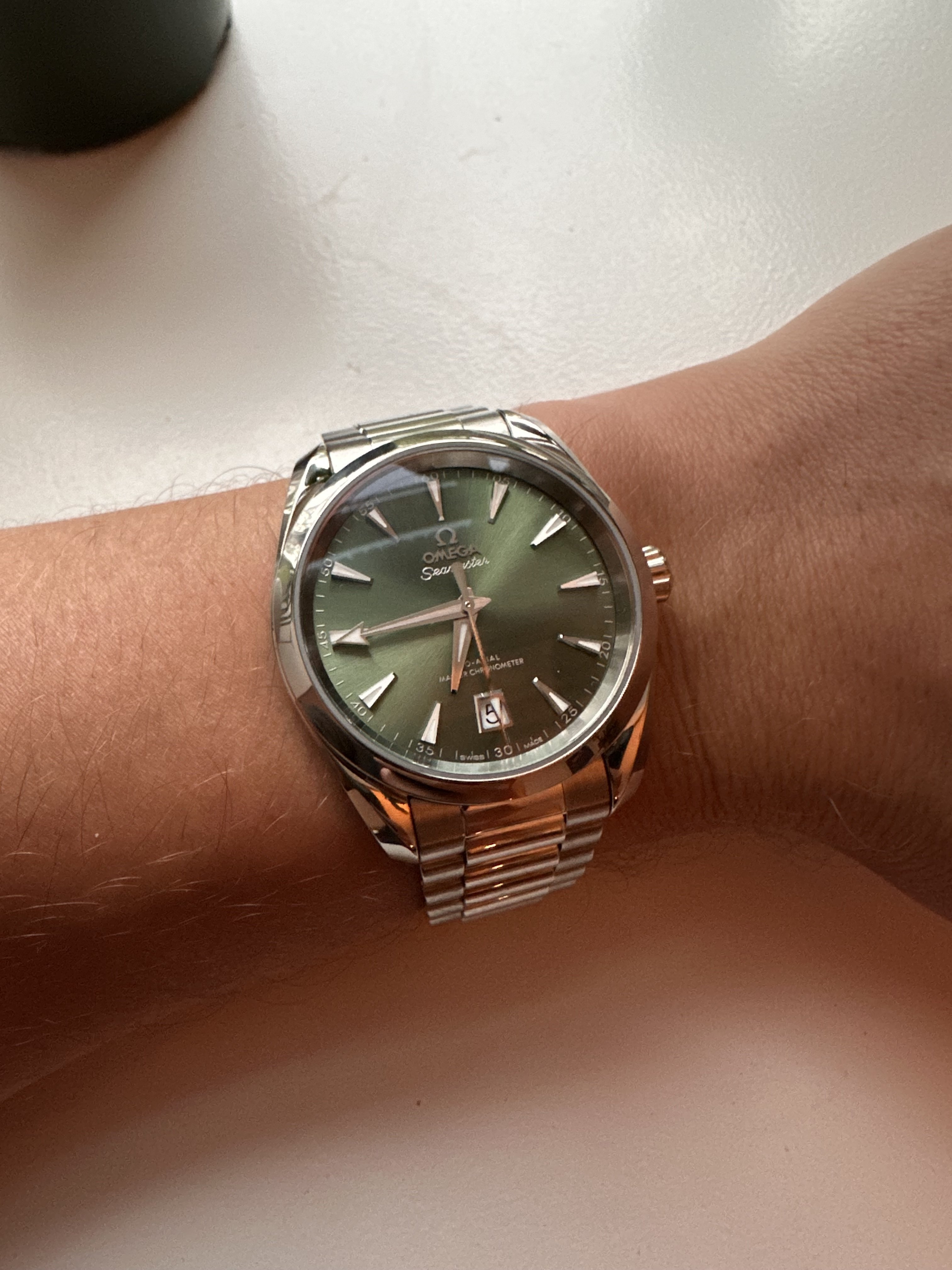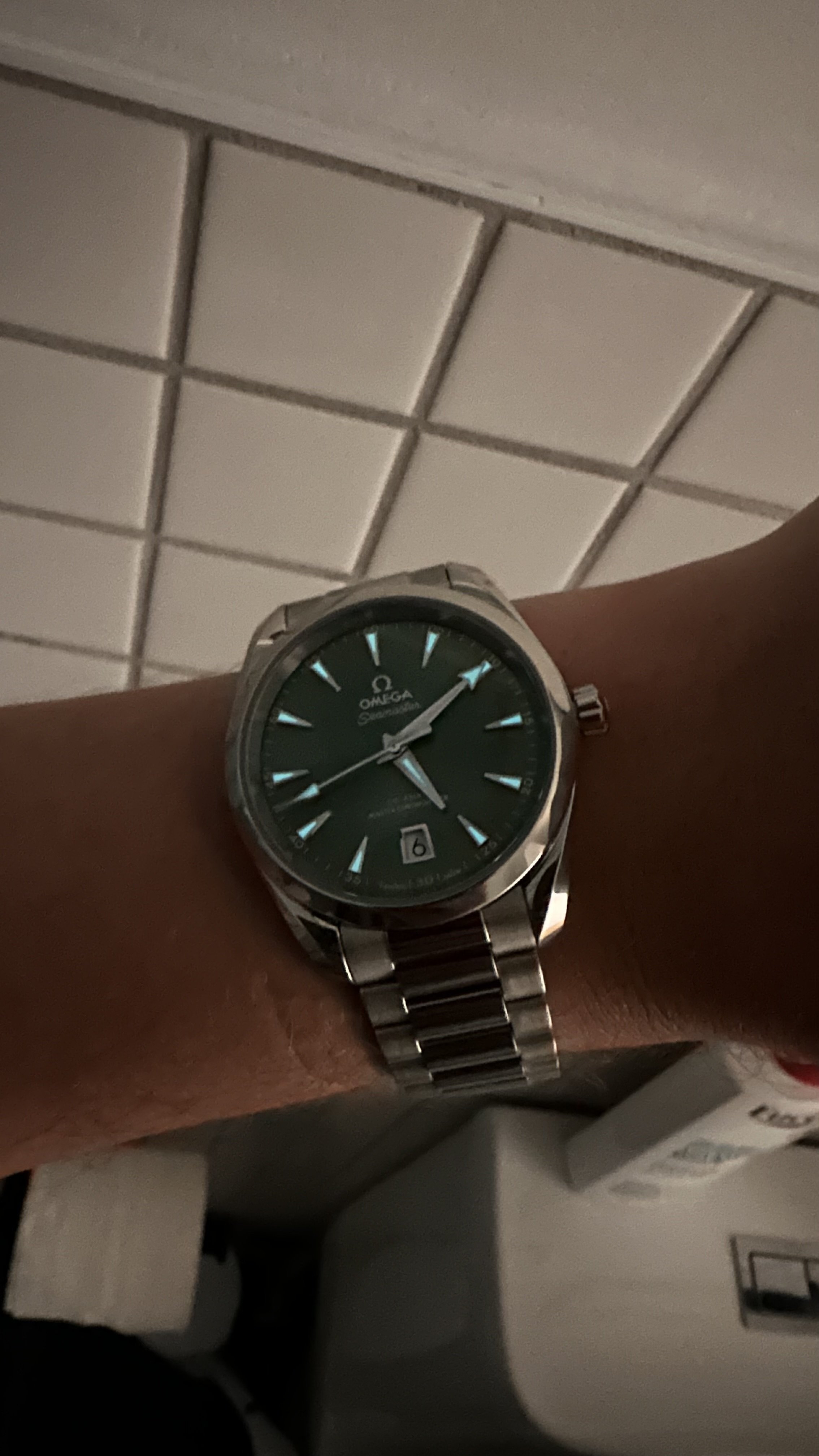 路A few days ago I branched out from my vintage Omega Seamaster collection and purchased a brand new Aqua Terra 38mm in Bay Green. (First watch with a box and papers. )