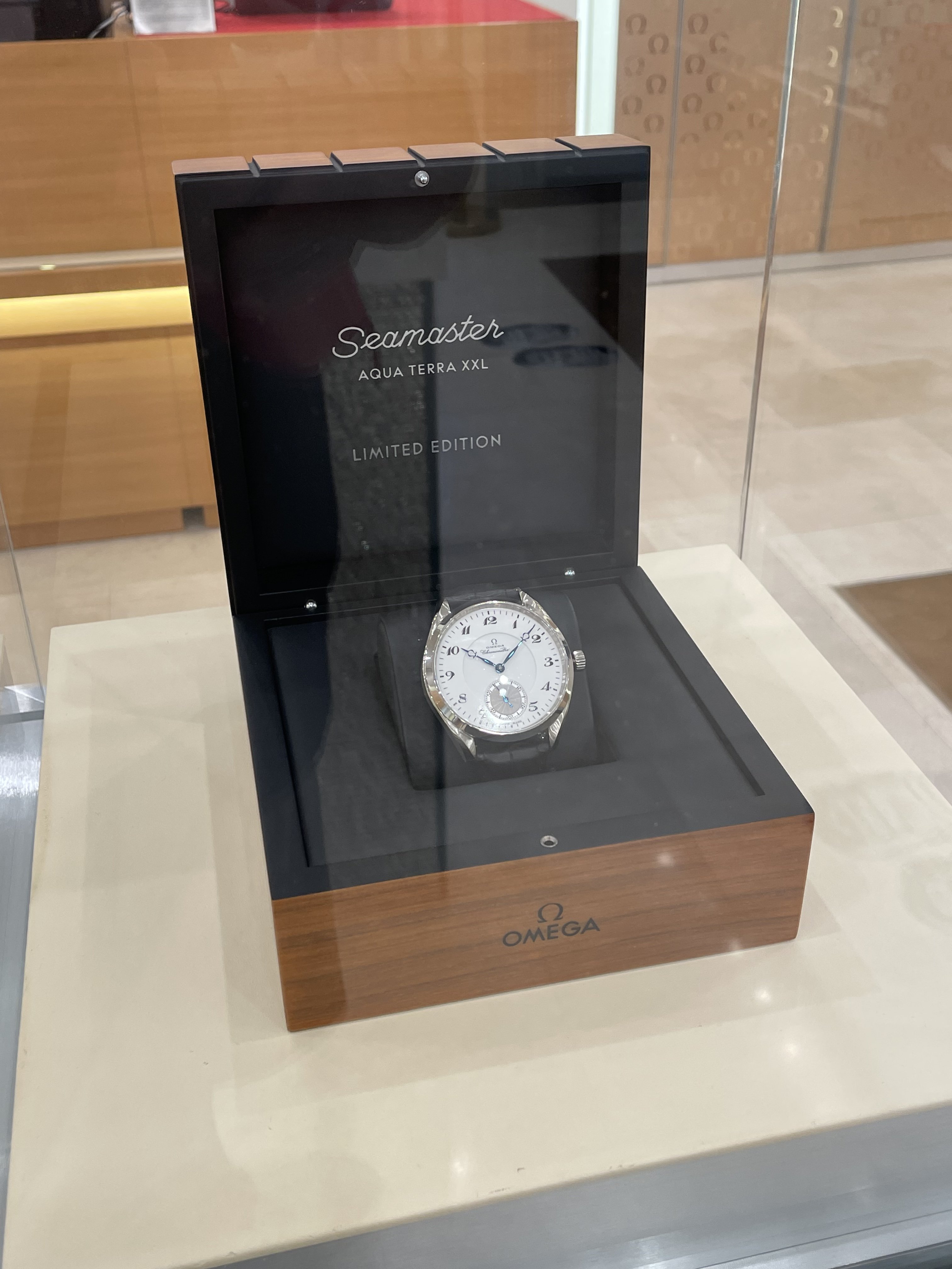 The last time I recall Omega doing it was in the XXL Railmasters from the early to mid 2000's and I think it was the same size case.