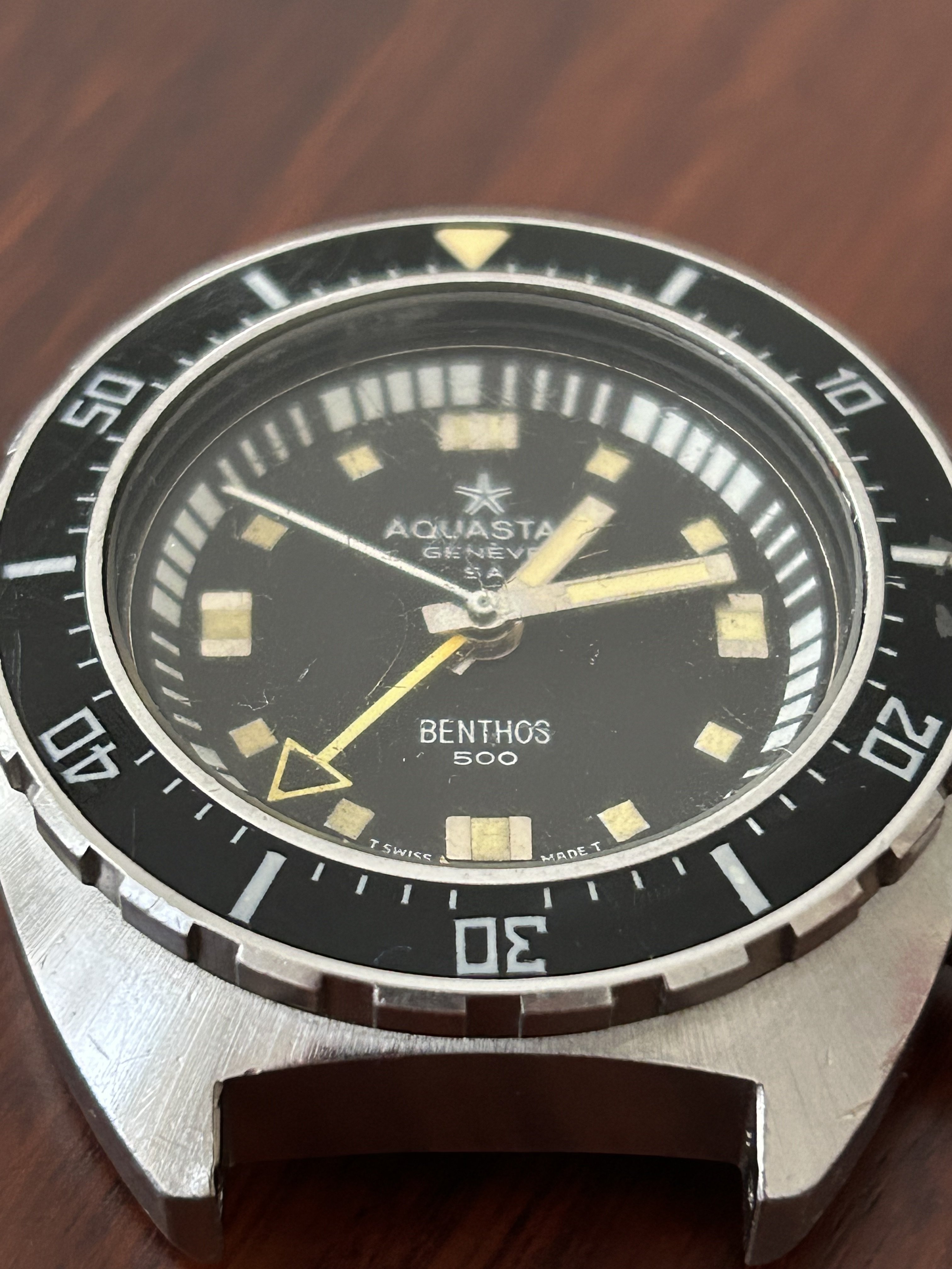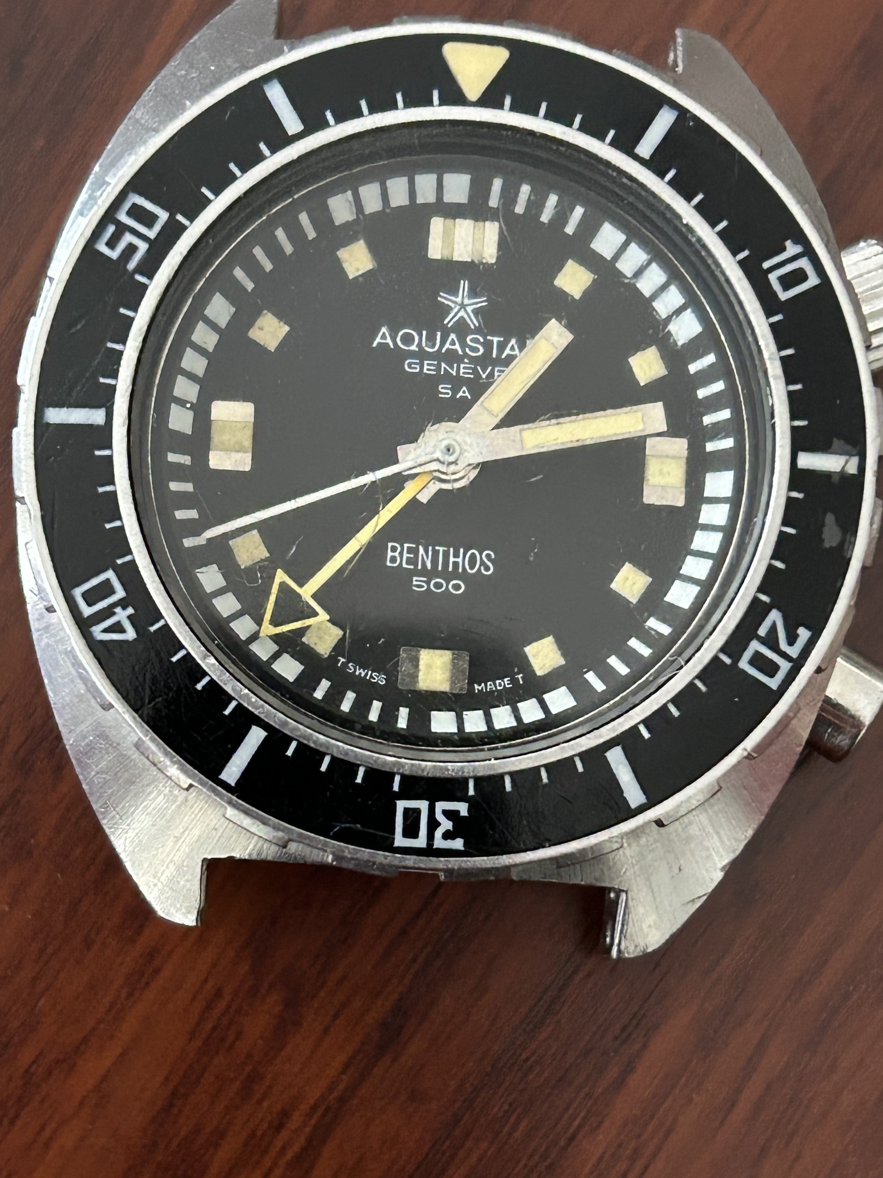 路路IG: #blubarb19Up for sale is my Benthos 500 "monster of the deep". It is in good overall unpolished condition aesthetically and the movement was serviced in May 2023. Running well as expected and the totaliser is working unlike so many being offered up for sale on a certain auction site at double and triple the price 馃榿