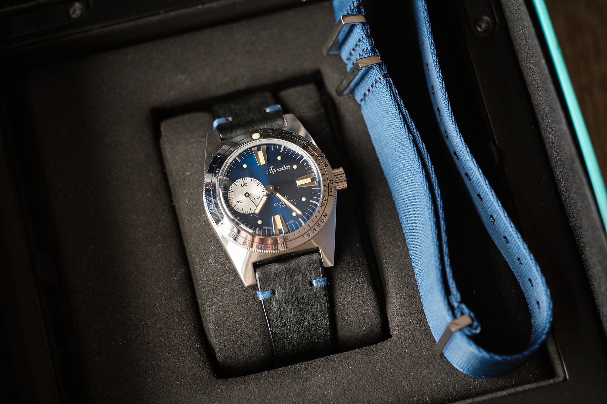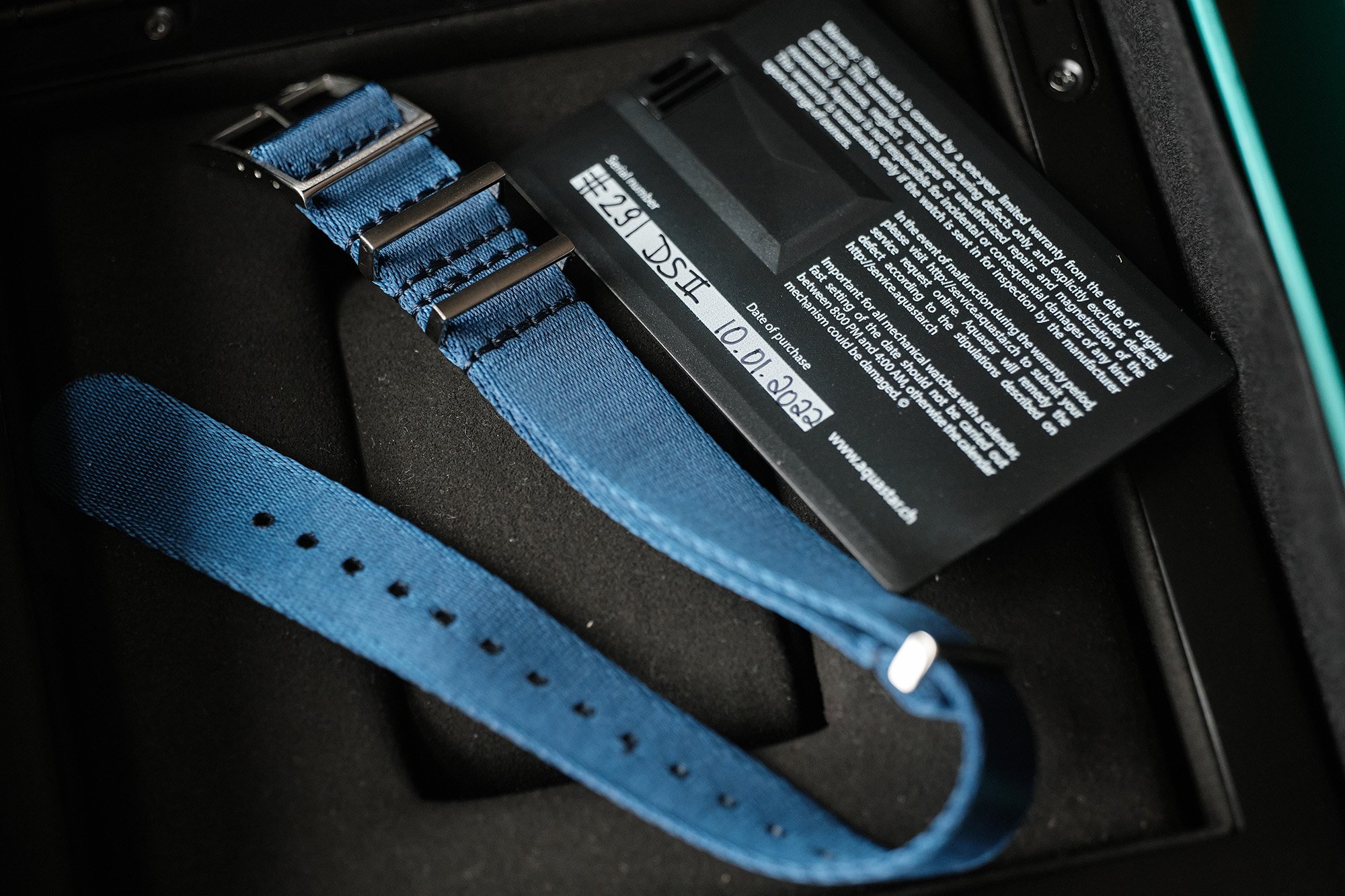 I didn't like the nato strap that was included, so I use TwoStitchStraps blue coal strap.