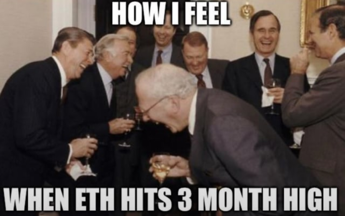 I hope ETH has a nice run, it’s not so much about the money as the camaraderie, funny memes and realizing your thoughts on magic internet money when everyone was scoffing at it were at least partly right.