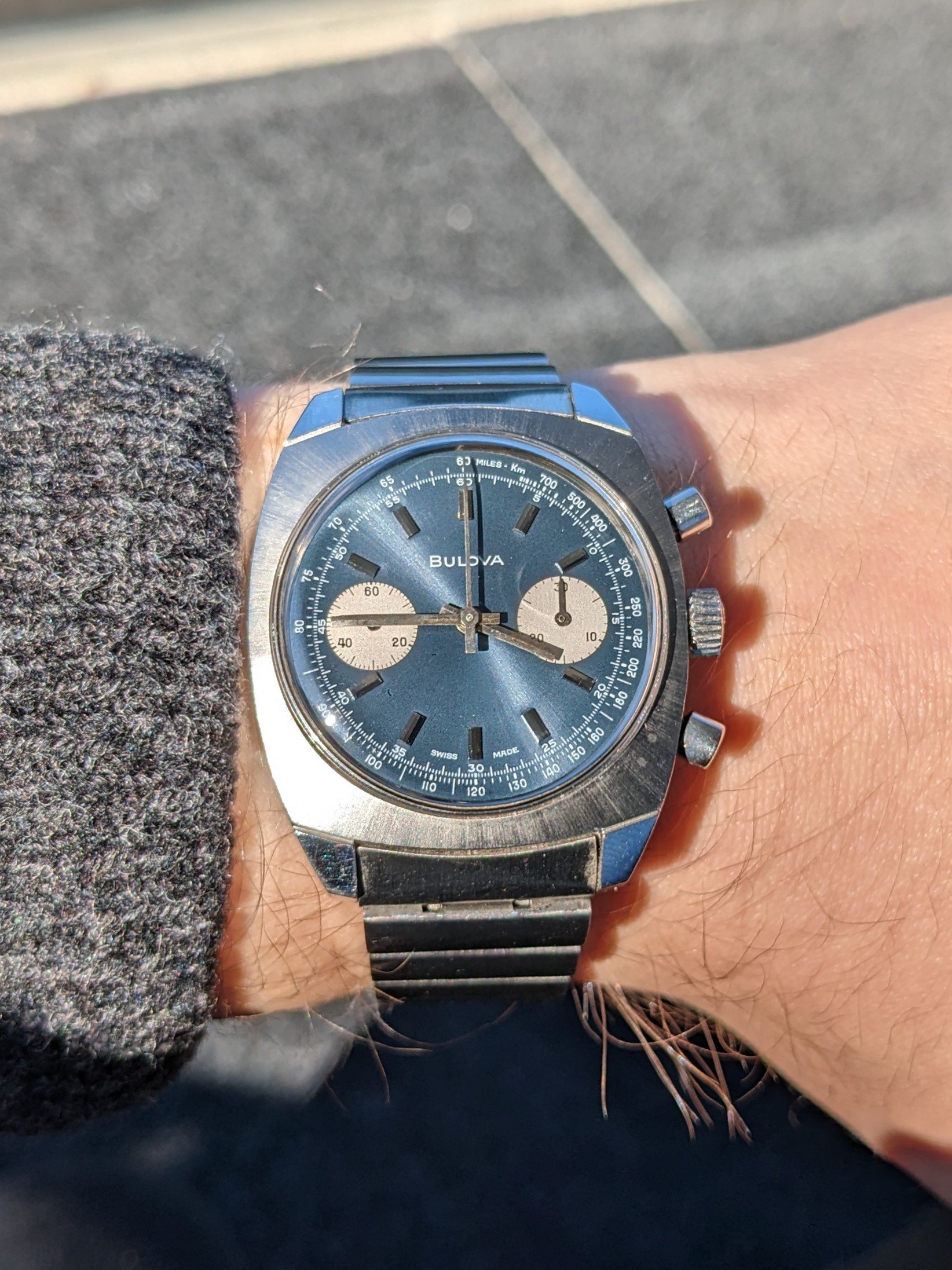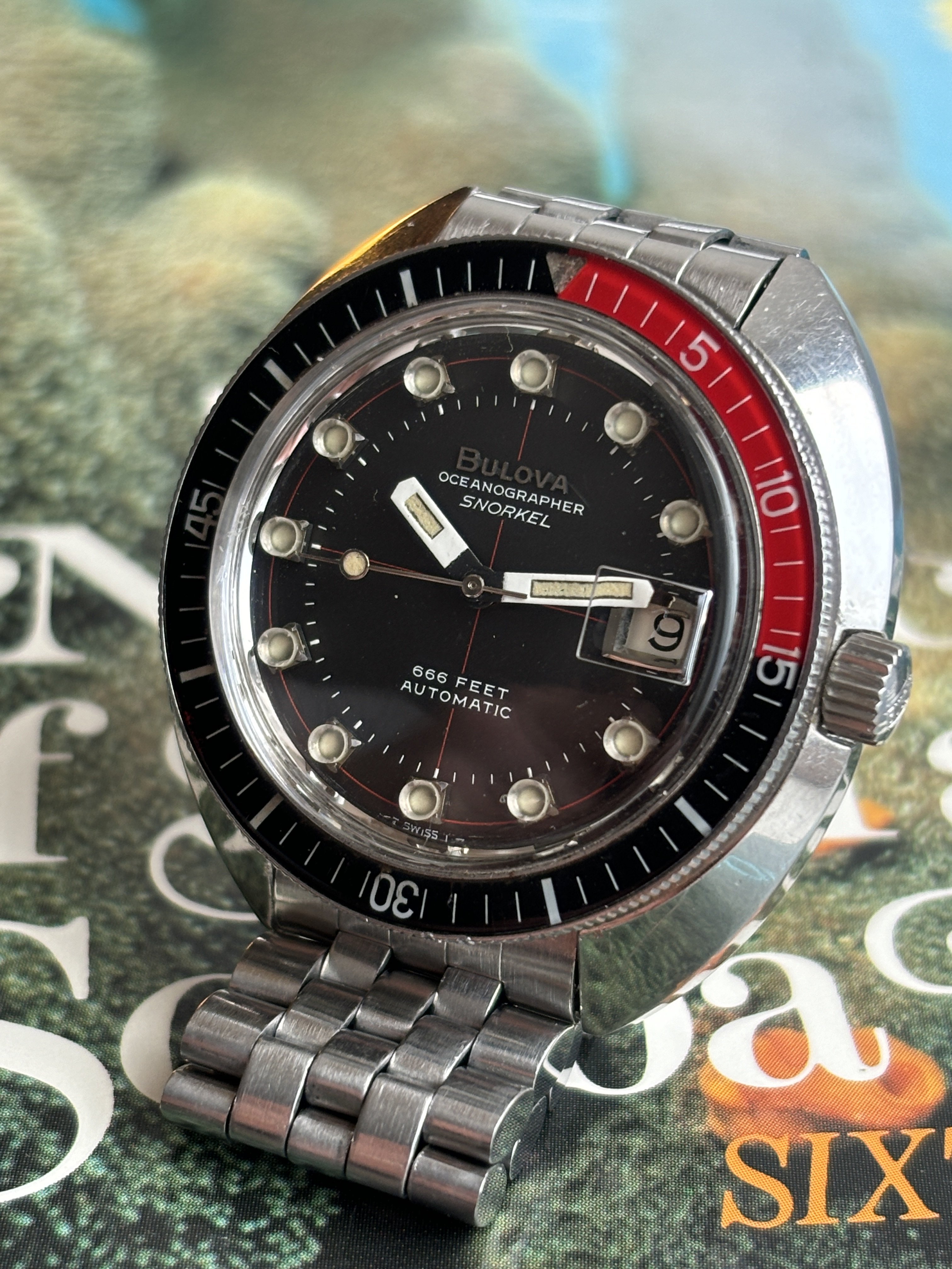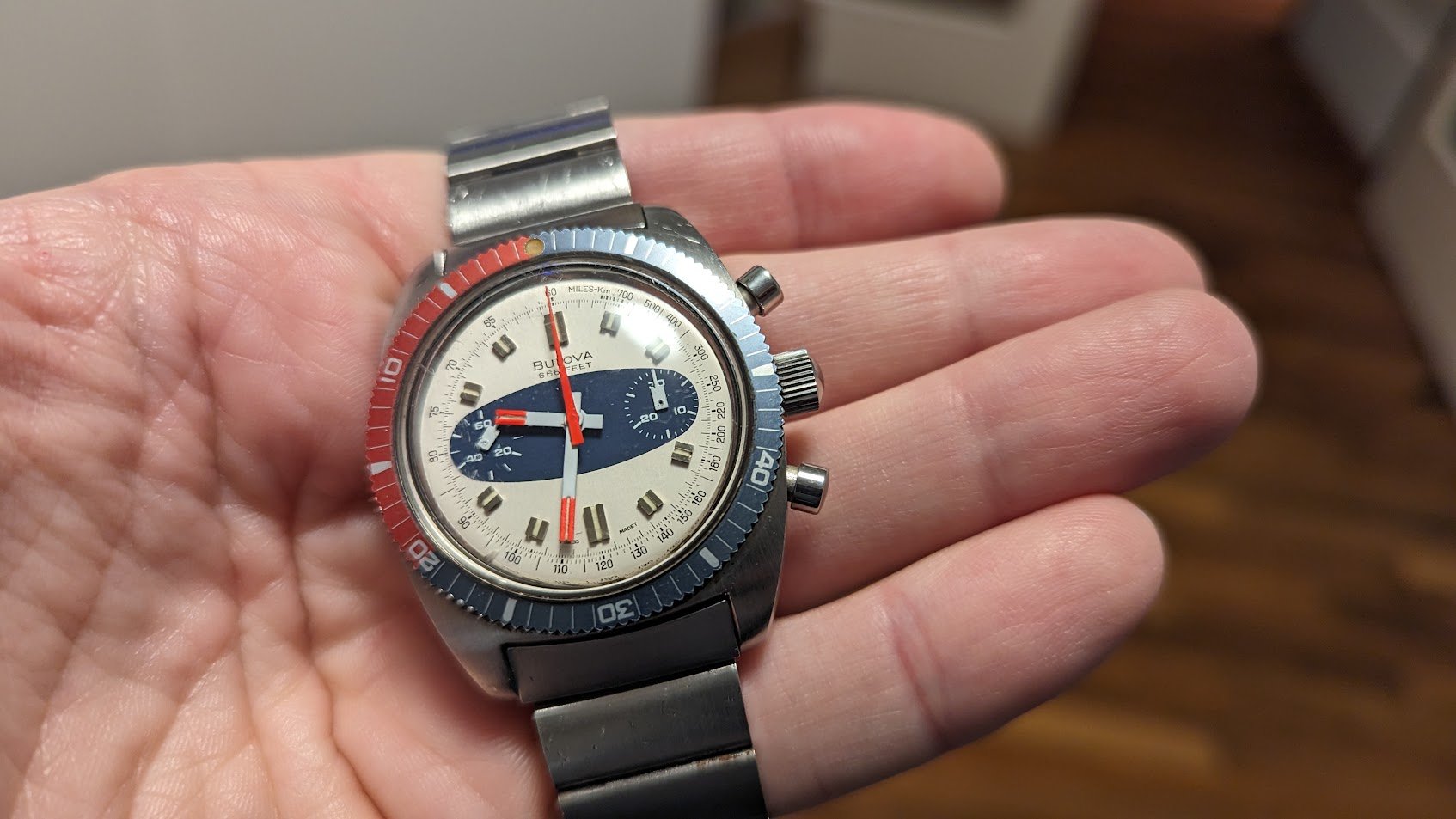 Here's my Bulova Deep Sea Chronograph "A", and here's news that Bulova is issuing homages in automatic and quartz varieties: Introducing The Bulova Chronograph A 'Surfboard' Editions.