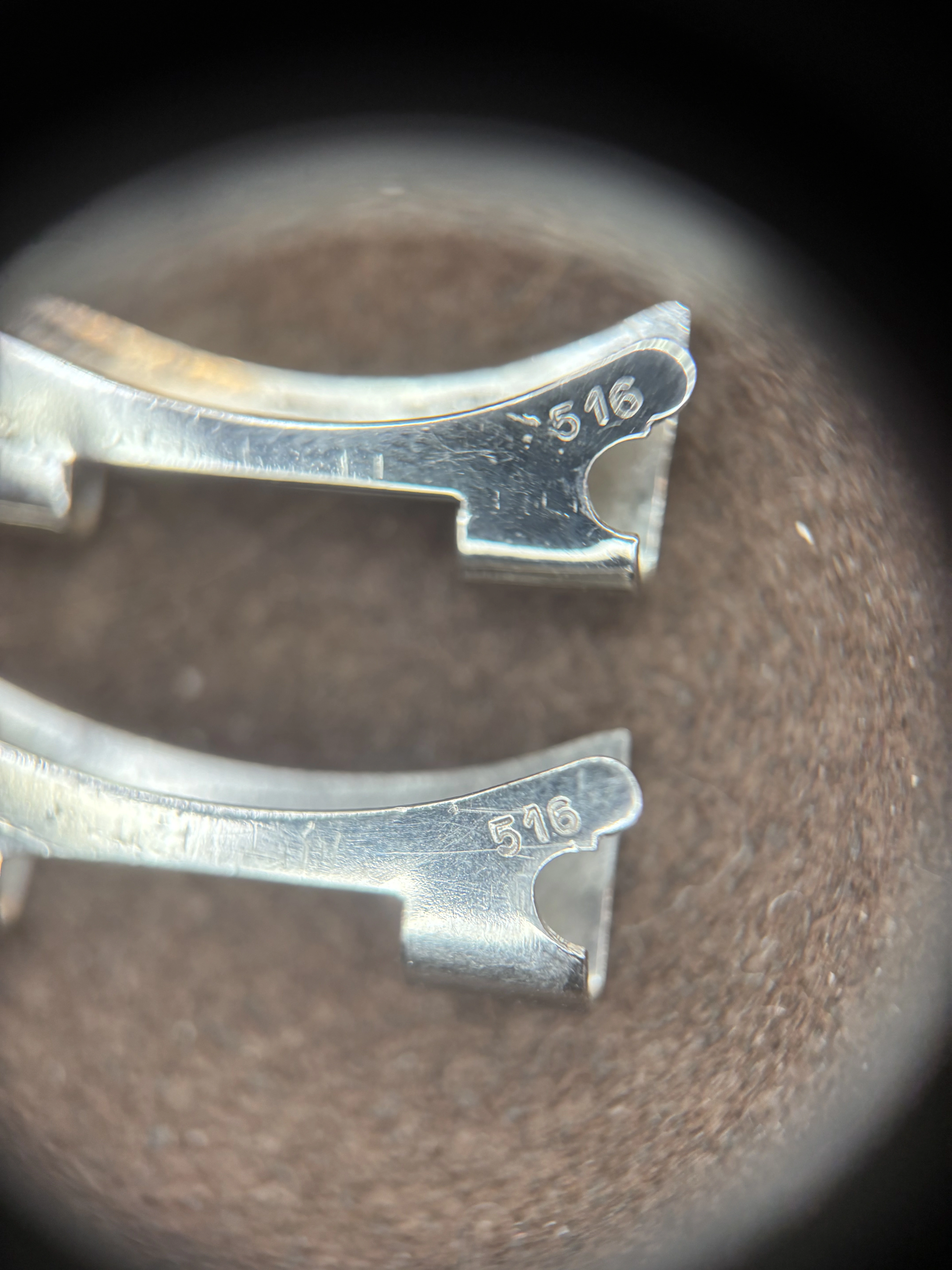 Posts 1,533 Likes 3,182 Ron_W ·Mar 19, 2026 I think you are okay, production diffferences not uncommon in those days. But compare to these ; https://omegaforums.net/threads/omega-516-end-link-stamp-information.170034/ Thread 'Omega 516 end link stamp information' · Hi everyone, I have these 2 1039/516 bracelets and just noticing the difference in the 516 stamp on the endlinks. Is this typical? I would expect maybe some variation from 1967 to 1972 and have... EdtheAussie · Mar 6, 2024 and the ones listed for sale in the parts section here on OF