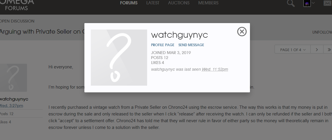 Now I understand why the seller doesn't really care if he gets the watch back. The upside isn't very high for him, and he'd rather take his chances on getting your $1k.