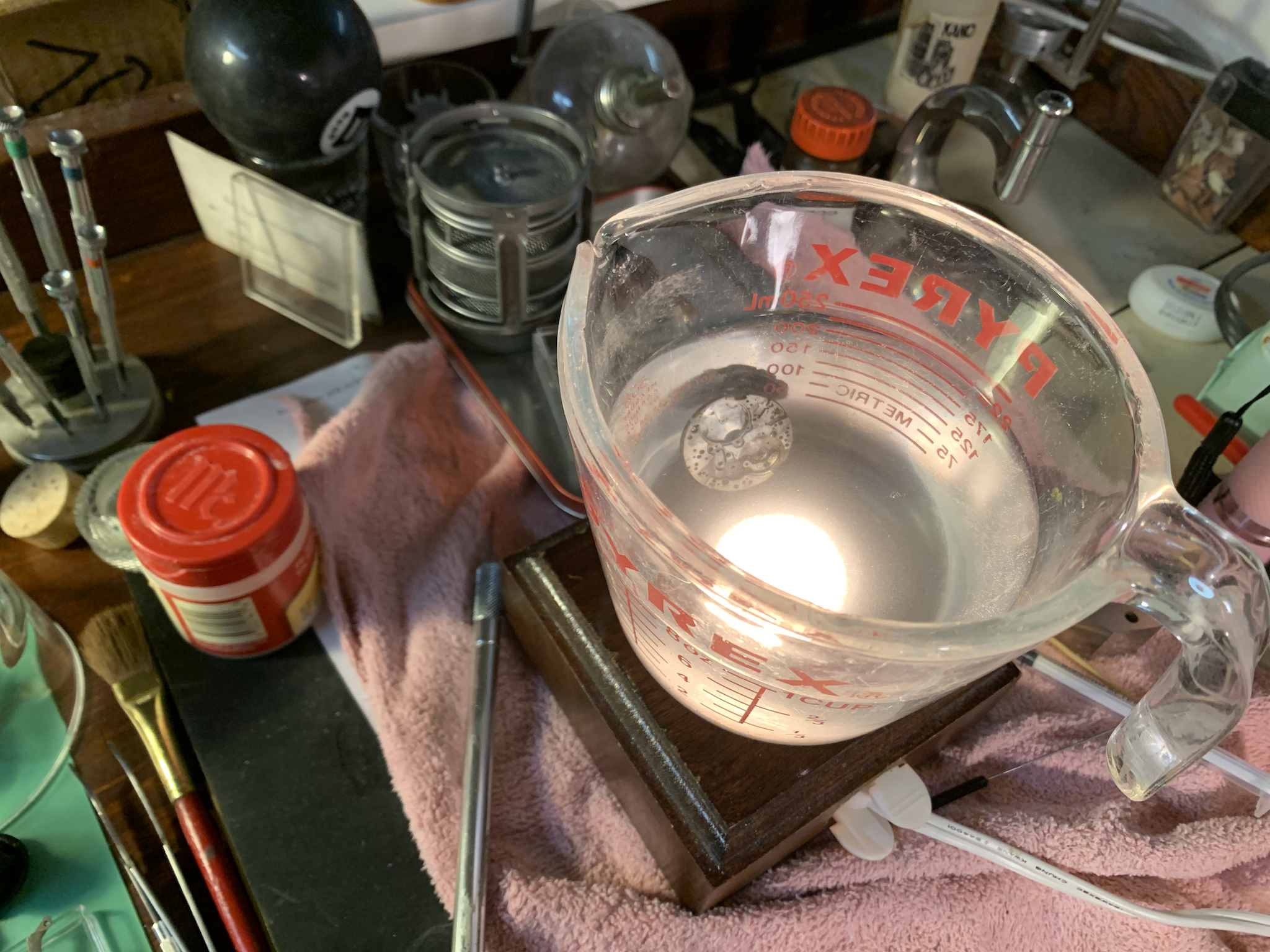 I tried heating the Alum over a 7W Christmas bulb (from a glass display that gets quite warm) Used a shot glass to heat water and the alum so the alum would dissolve. The old Atlas jar lid is where I do my application.
