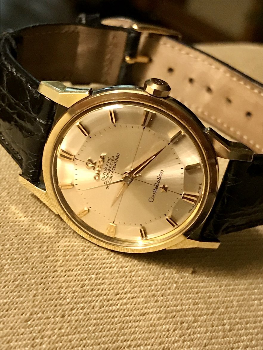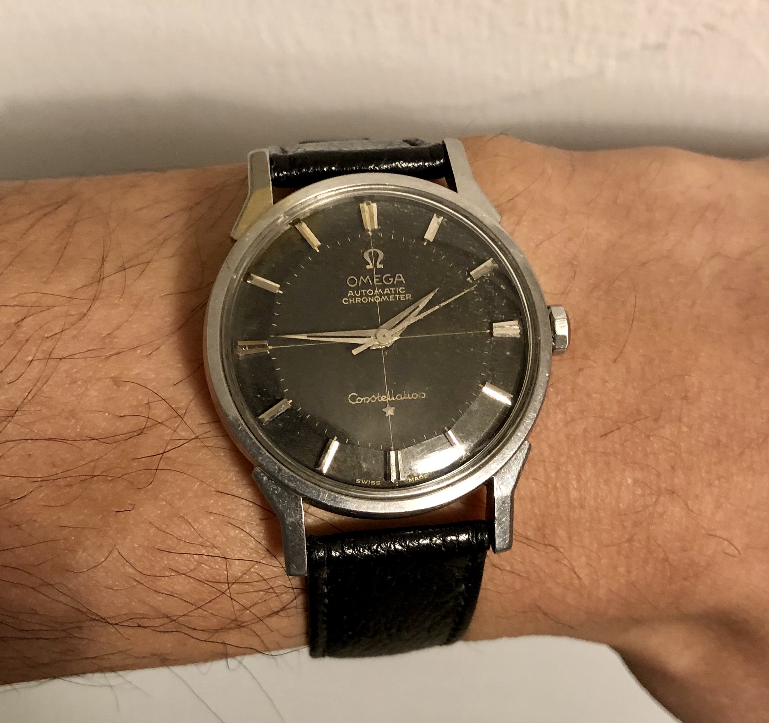 I'm happy to use my 200th post to present the recent arrival of a milestone watch (I prefer the term milestone to grail, as you can own several milestones but just one grail π) for my young collection. When I started getting interested in vintage Omegas and Constellations in particular last year, I soon knew I wanted a non-date dog-leg Connie.