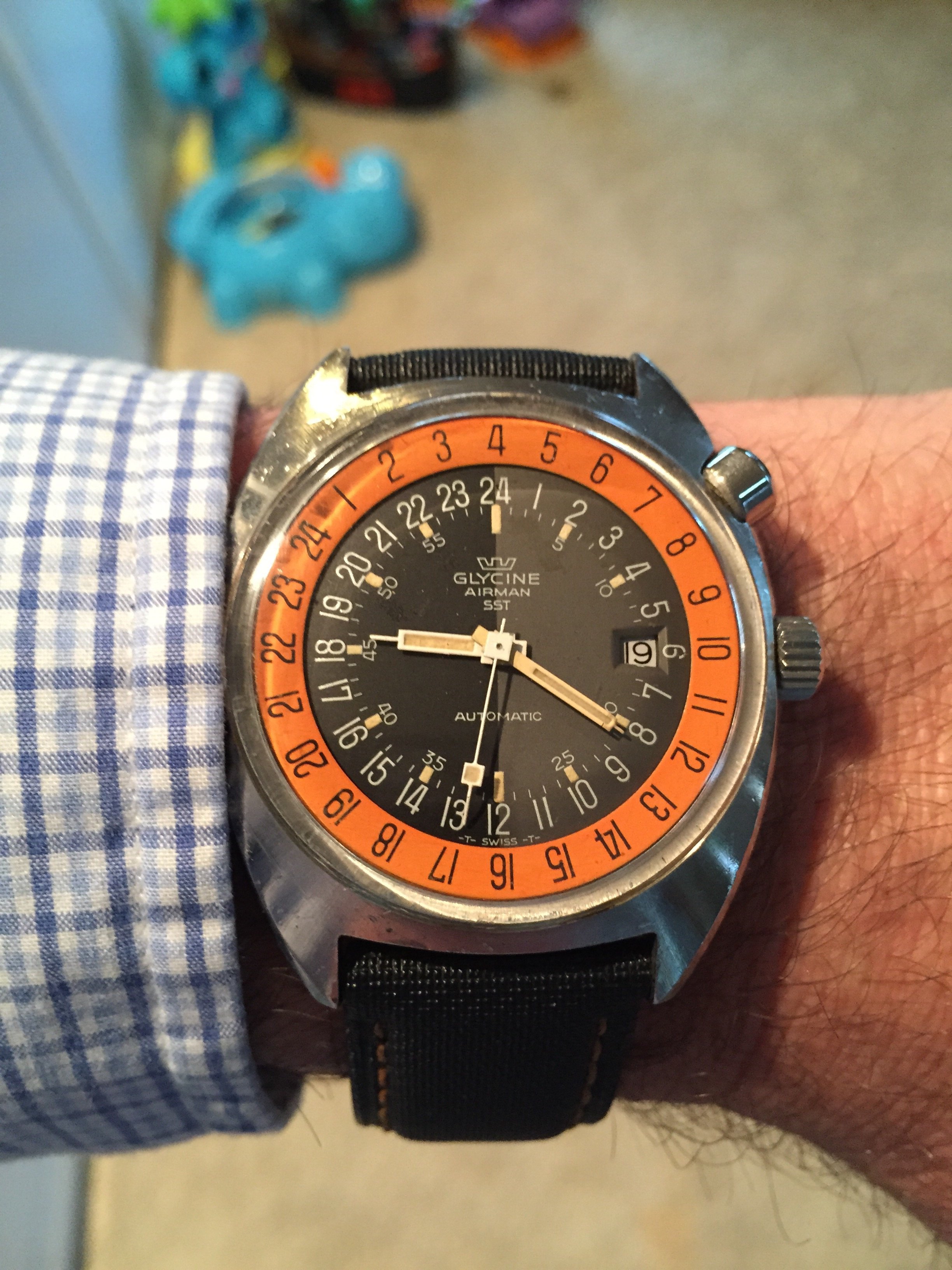 Shipped via EMS Wednesday from the far east, and already arrived. Not up to @citizenrich 's EP-powered Gallet standards, but I do like the look of it. Gallet Multichron Pilot, Valjoux 72.