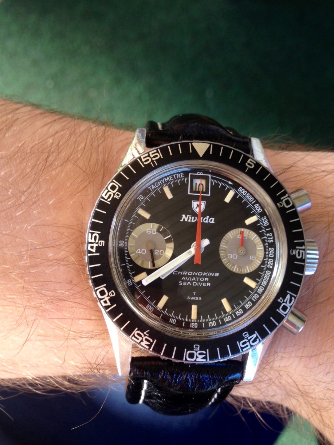 A Minerva Chronograph ref 1335 Caliber 13-20CH. 35mm case. Serial 710xxx.