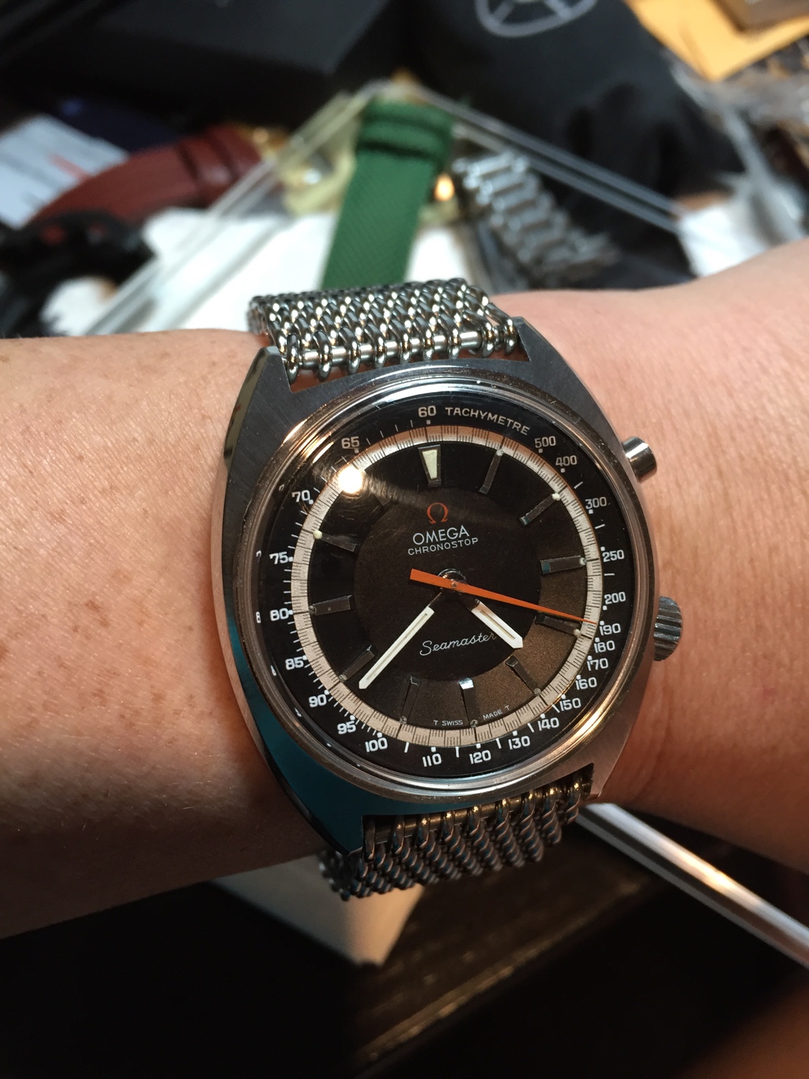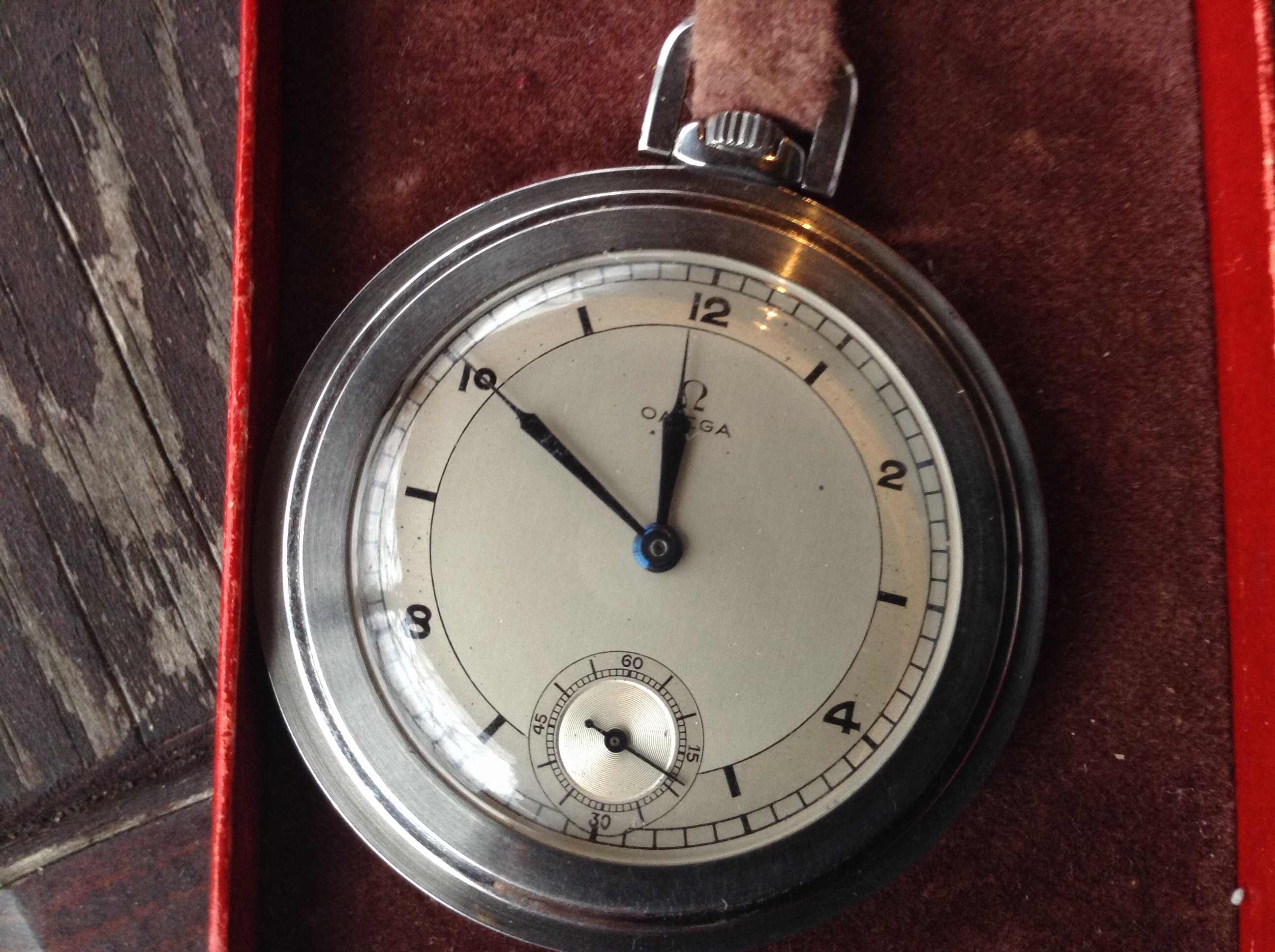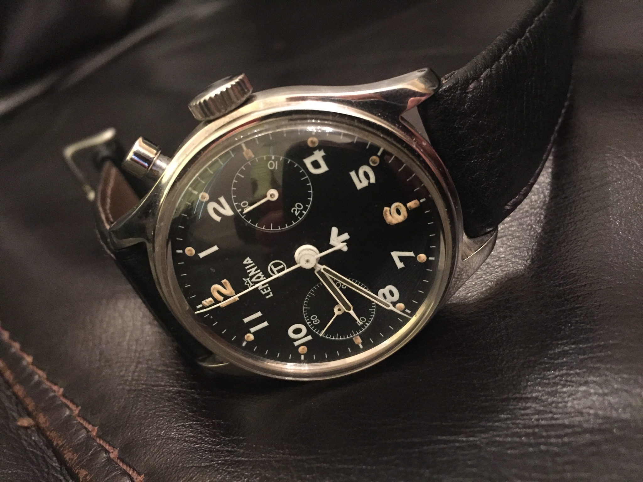 路I've never had one of these smaller (32 mm) American-made military watches, though I've always thought they were neat. This has the hacking cal. 10BNCH 17 jewel movement and dates from the Korean War-era. Seems to be in nicer condition than many I've seen.