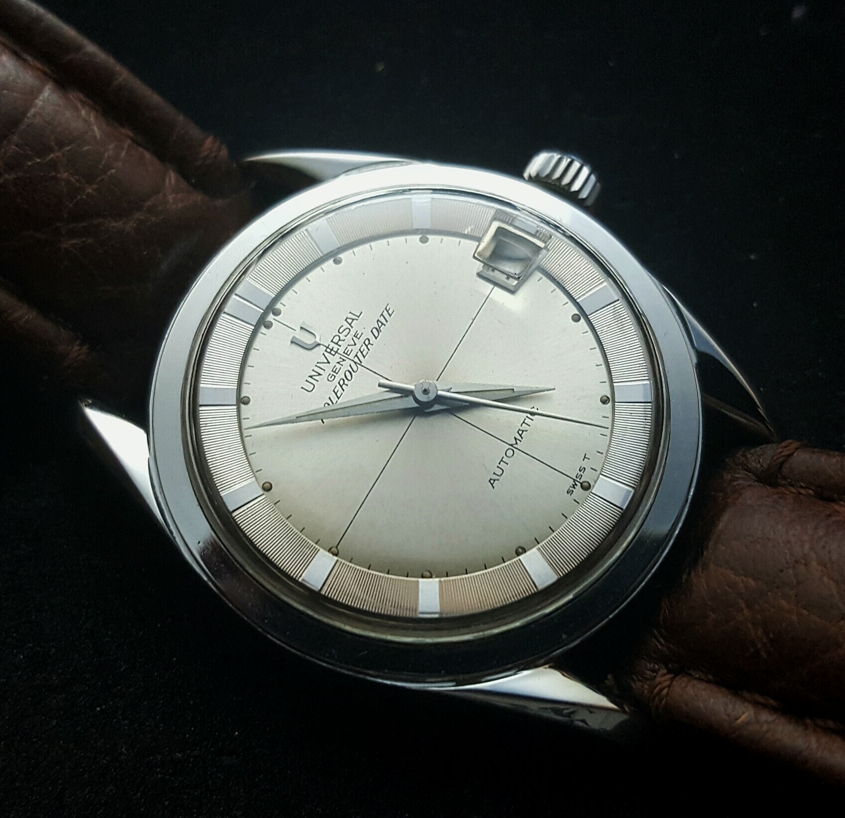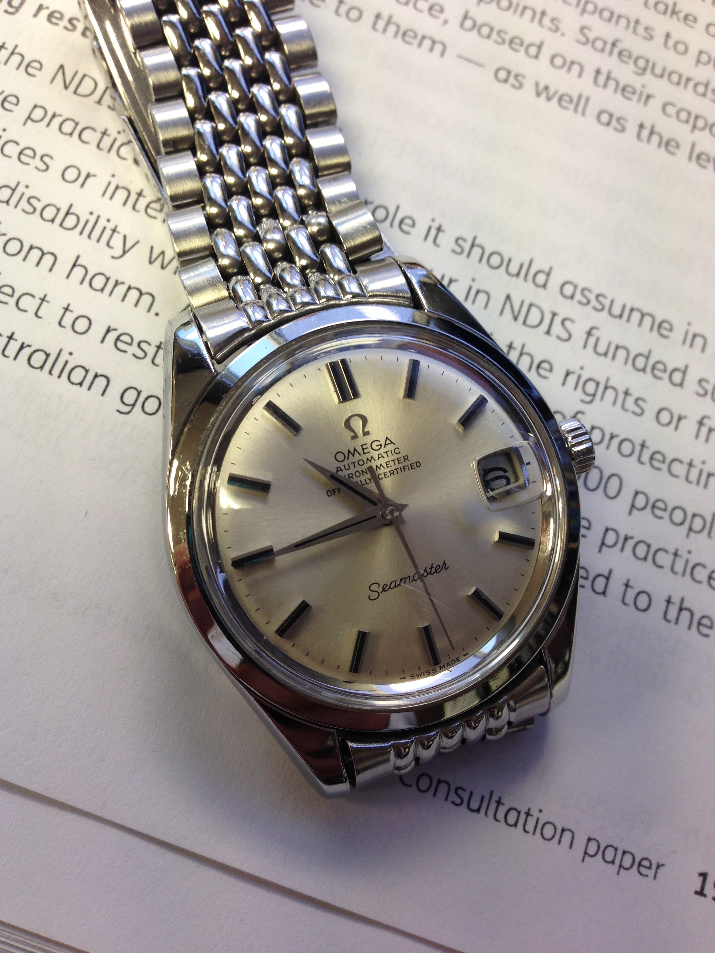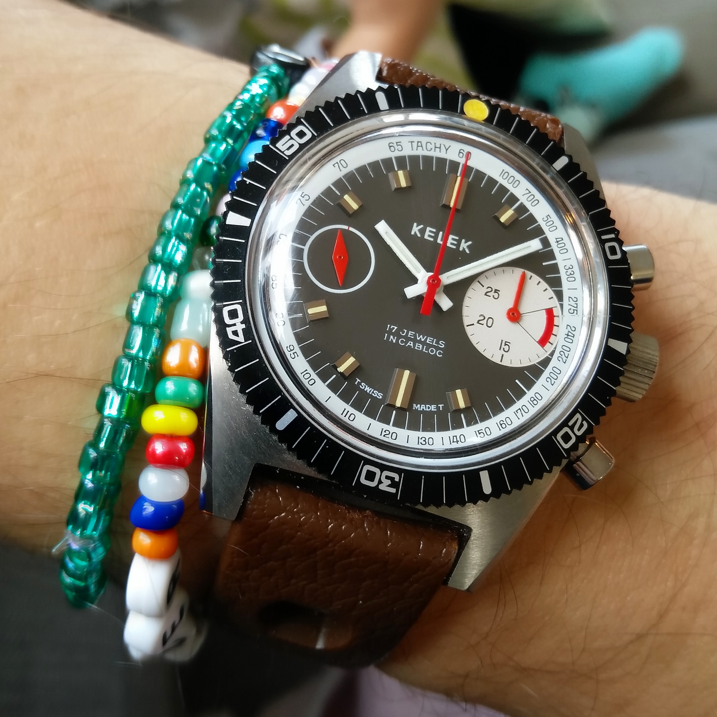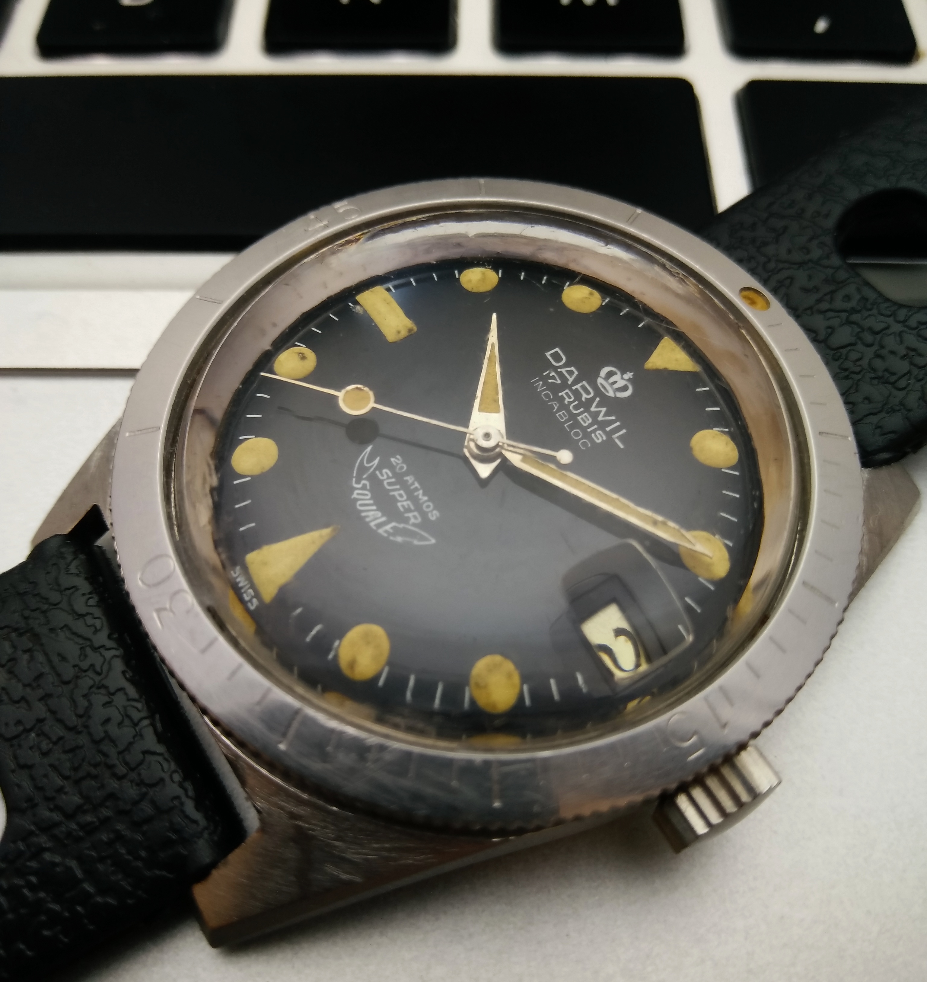 路I've never had one of these smaller (32 mm) American-made military watches, though I've always thought they were neat. This has the hacking cal. 10BNCH 17 jewel movement and dates from the Korean War-era. Seems to be in nicer condition than many I've seen.