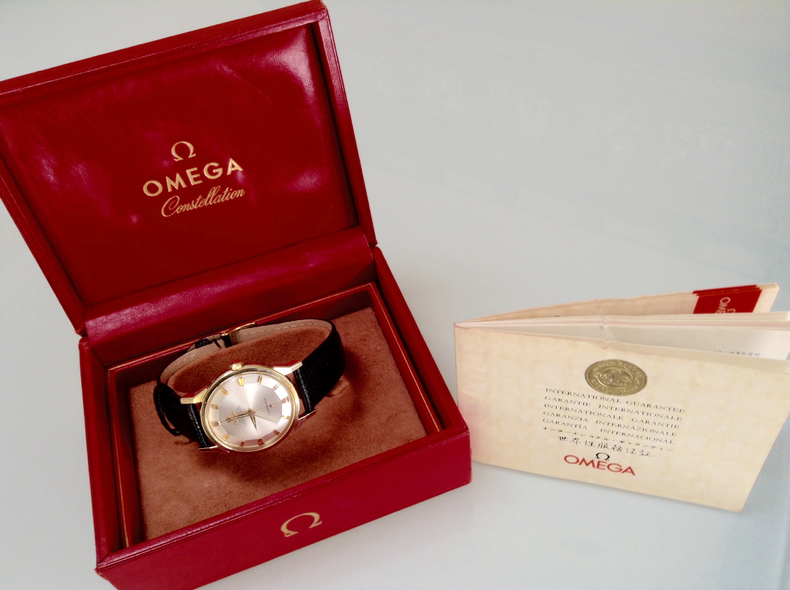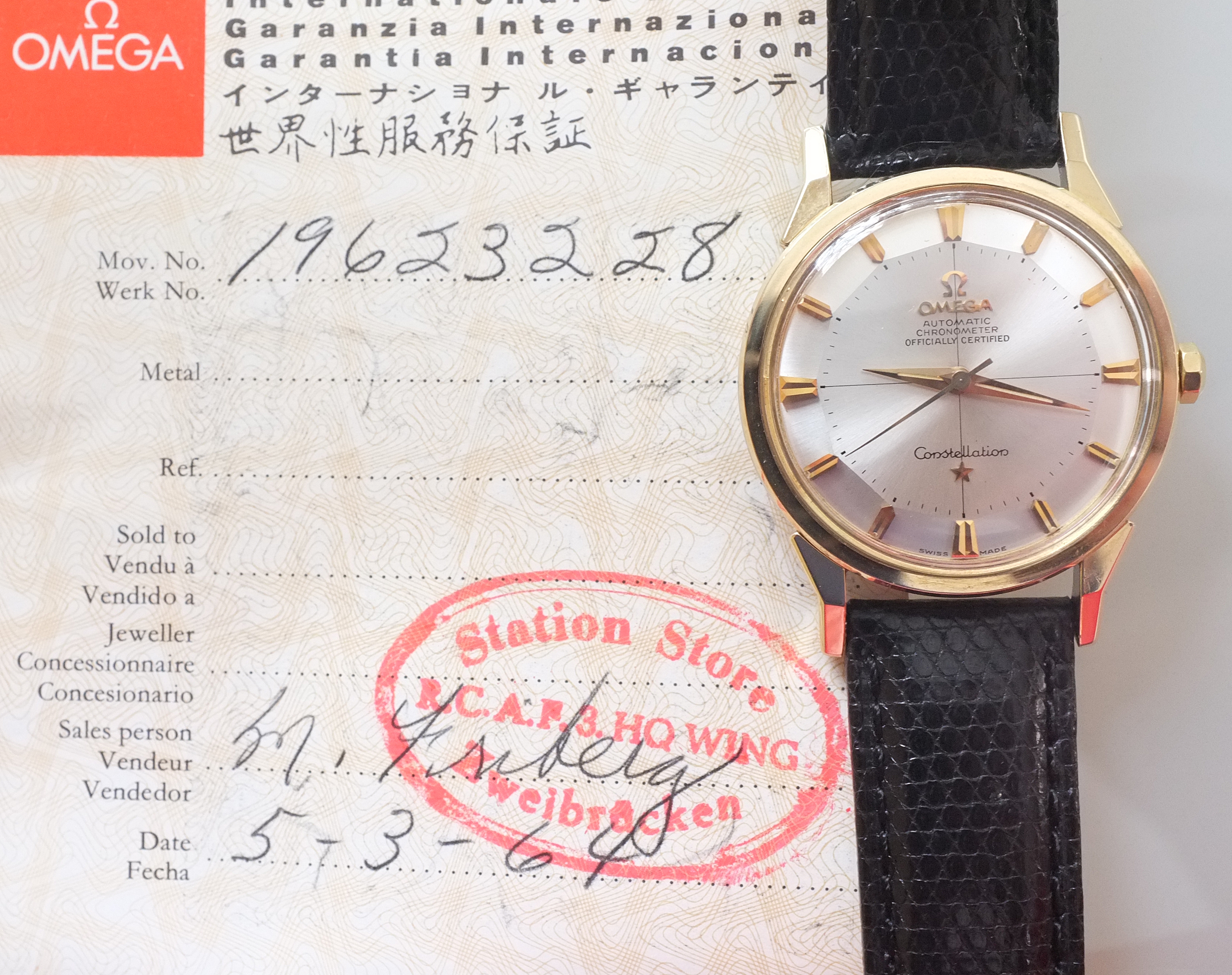 Here's my first Omega!!! It came with the box and warranty booklet. It looks like it was originally purchased at the Zweibr眉cken RCAF (Royal Canadian Air Force) base in Germany in 1964. Being Canadian myself adds an extra bit of affinity towards the Connie.