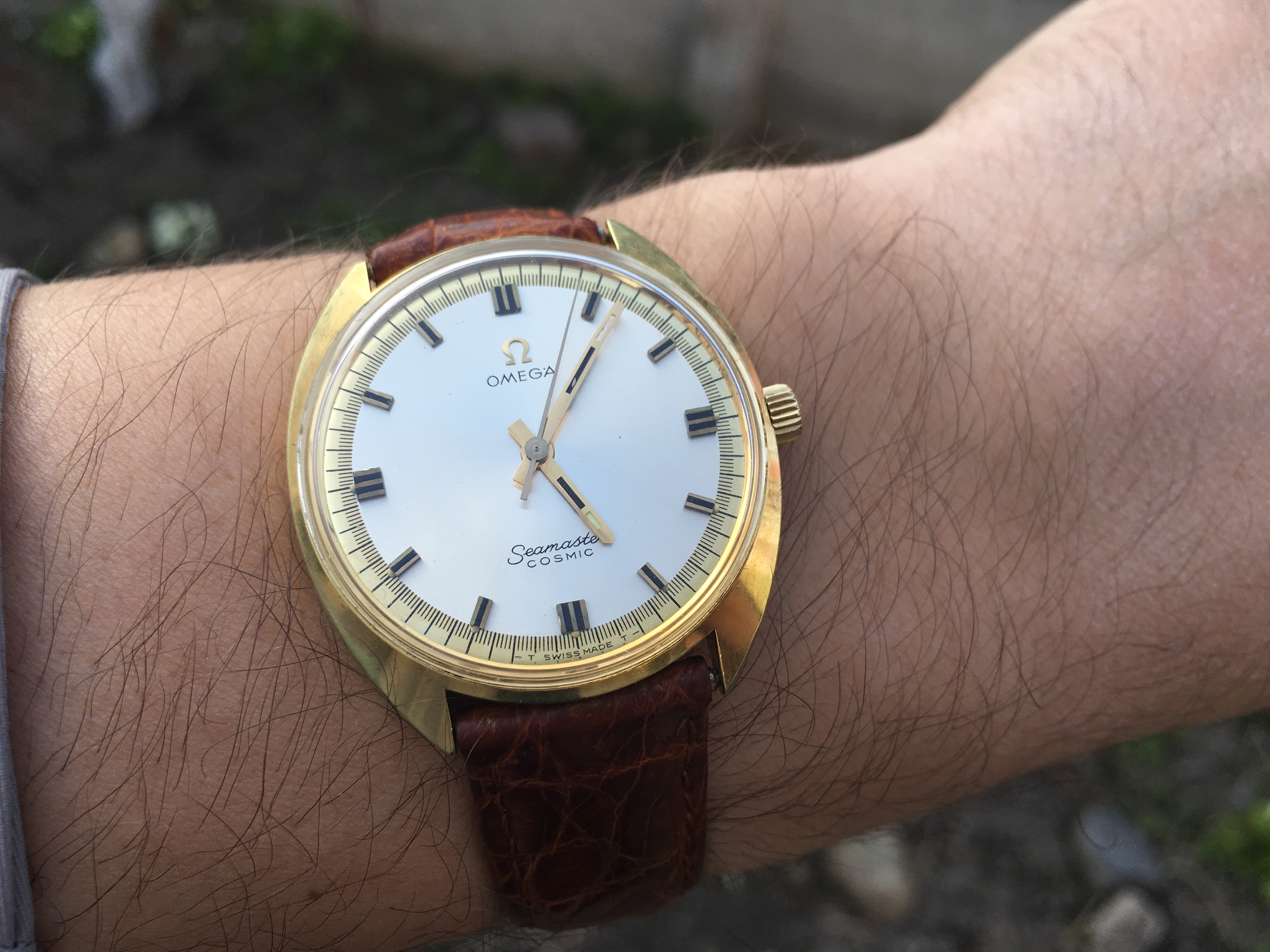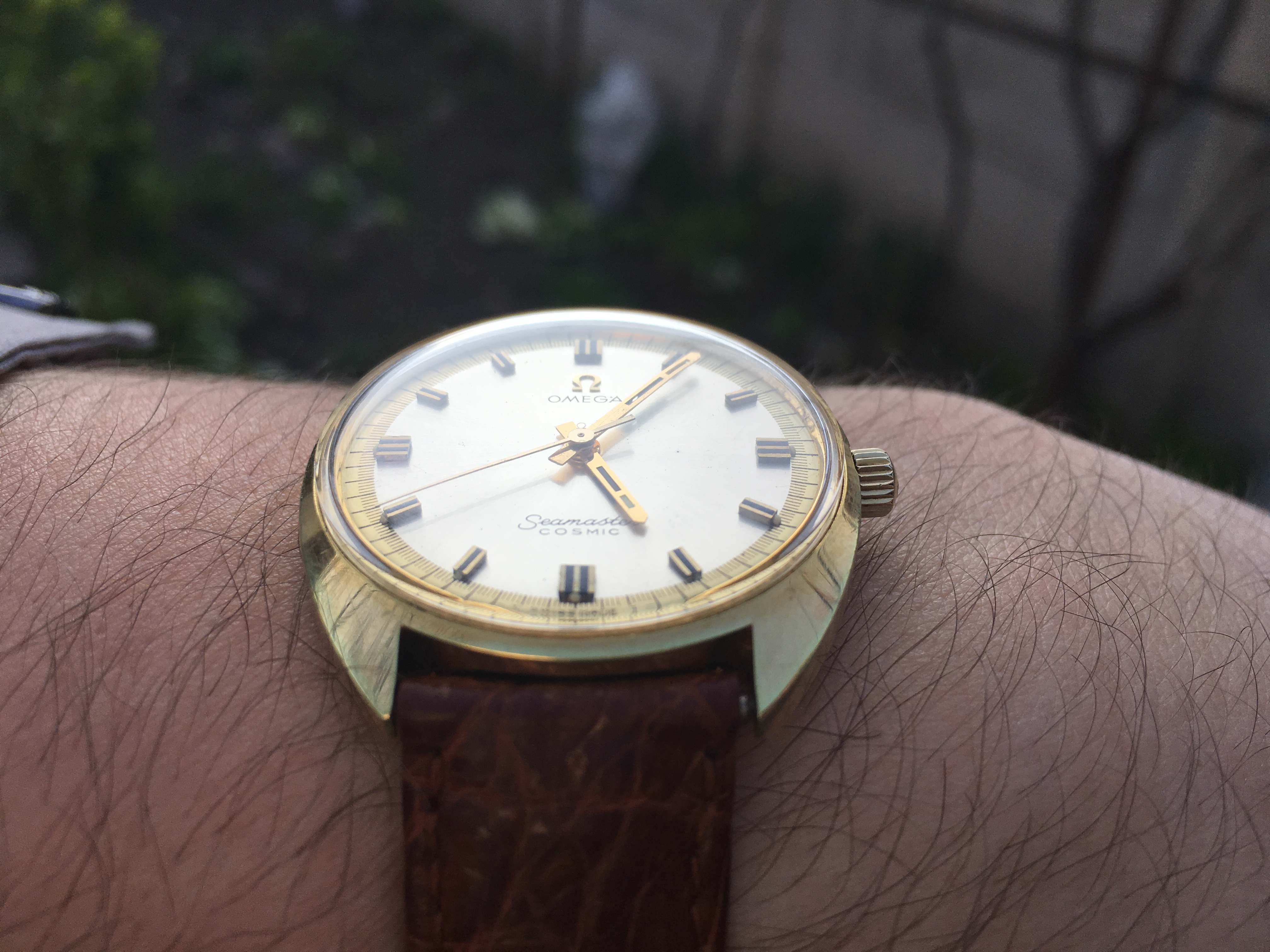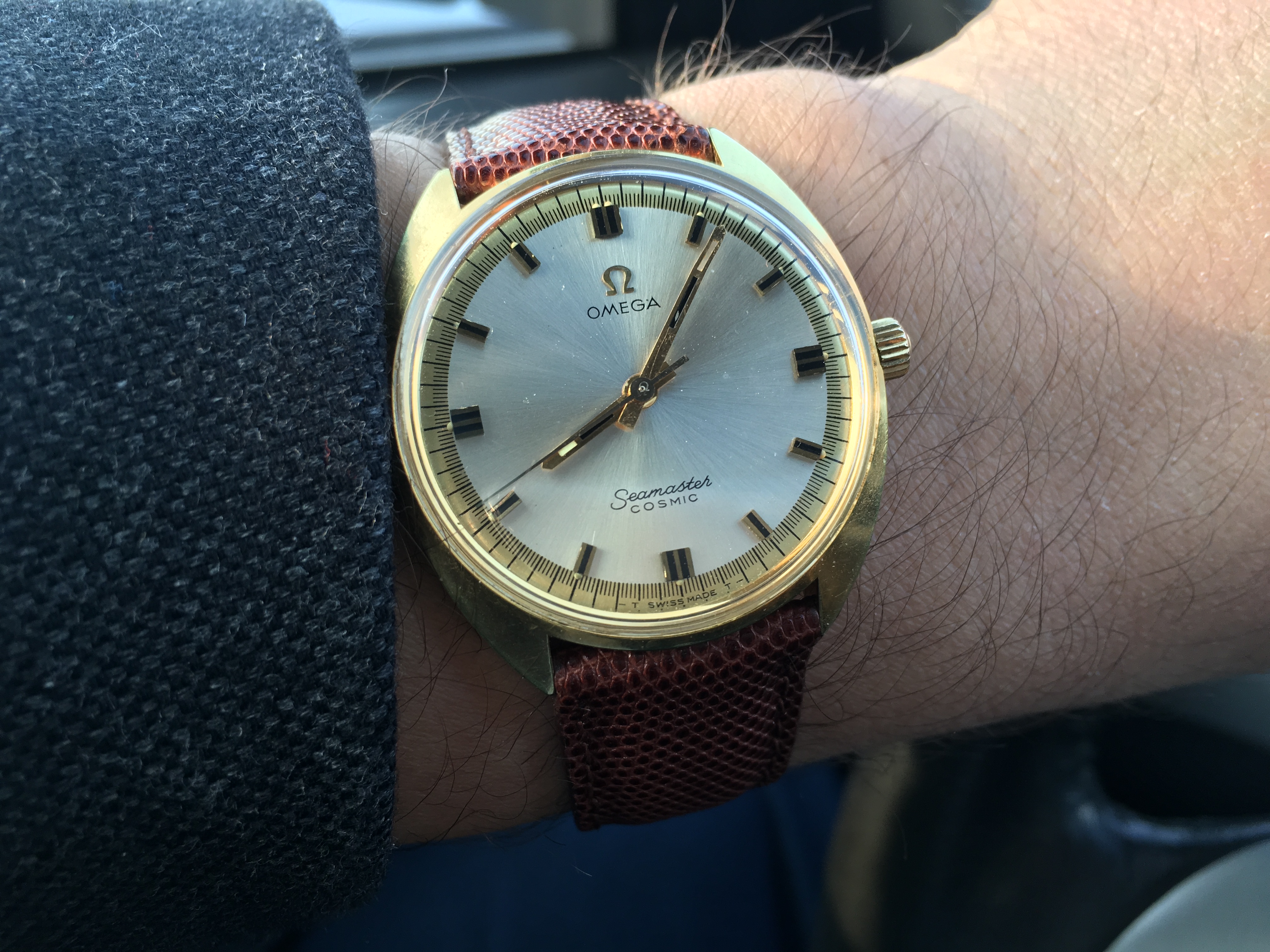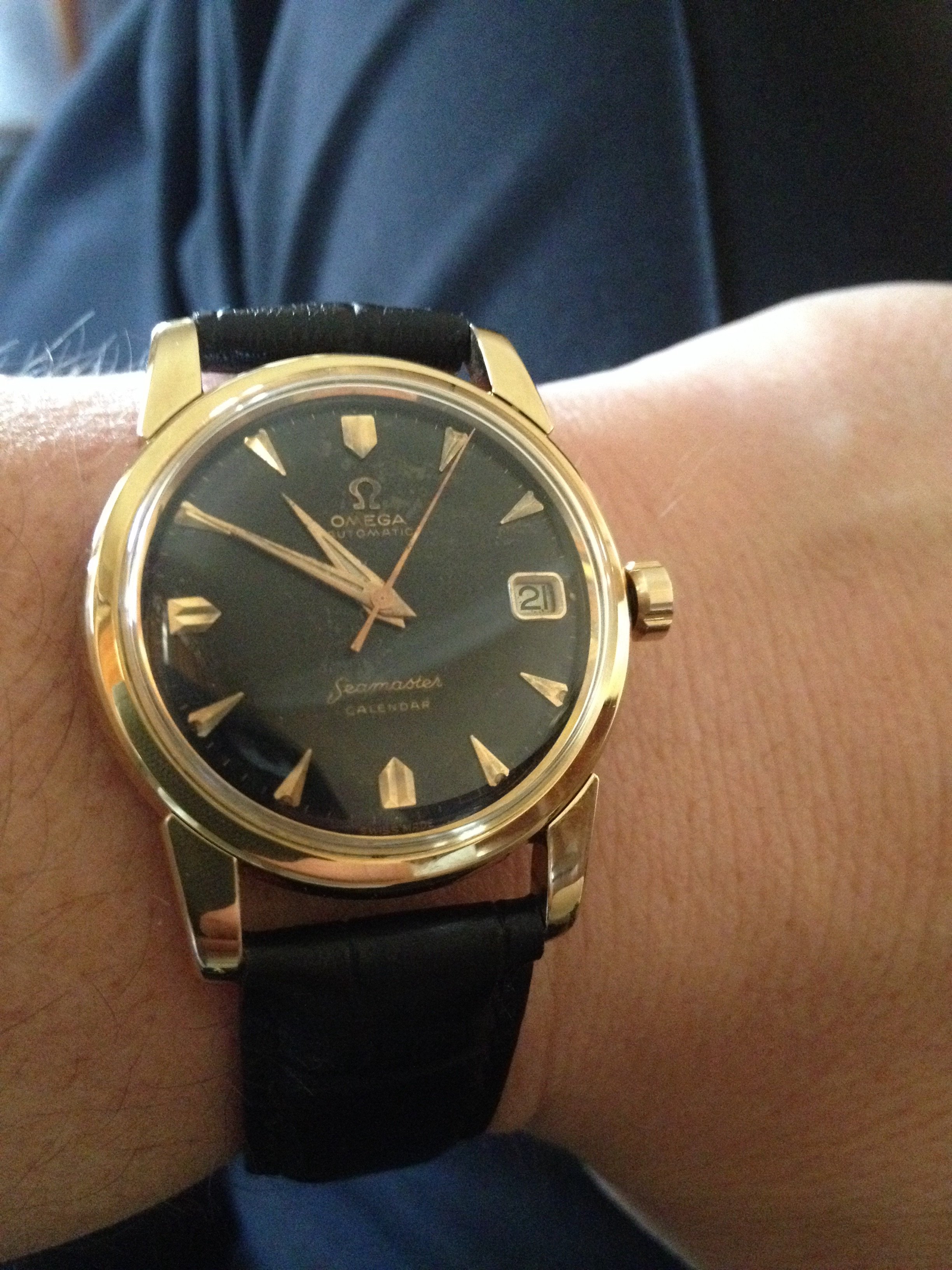 Here is my third and final arrival of the last couple of weeks, continuing the unintentional Seamaster theme this one is an 18 kt rose gold, French production Seamaster chronometre from the early 1950´s. I´m pretty certain it has a cal 352, but I haven´t been able to open the case up so can only really speculate until I visit my watchmaker next week. I bought it together with an 18kt rose gold bracelet which unfortunately is too small for my wrist and although in very nice shape will probably be going to the melting pot.