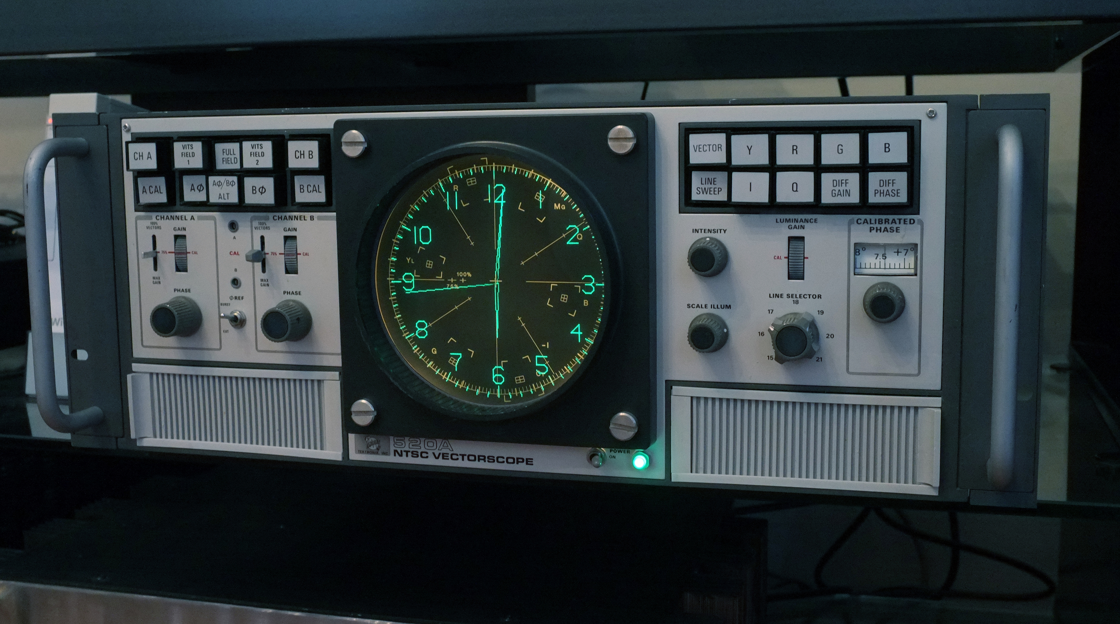 It's a Tektronix 520A NTSC Vectorscope, an instrument designed to measure quality of analog television signals. This relatively complex instrument is totally obsolete in this age of digital television so they can be found relatively cheaply on eBay. I converted it into a clock using an electronic circuit.