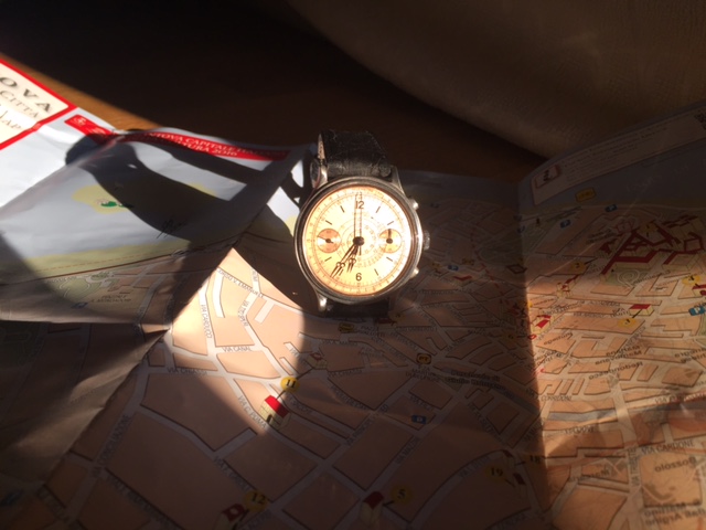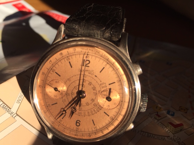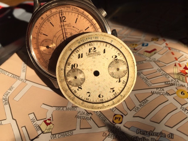 Walking down a street in a town in northern Italy and spy this: a 40mm Eberhard pre-extra fort.