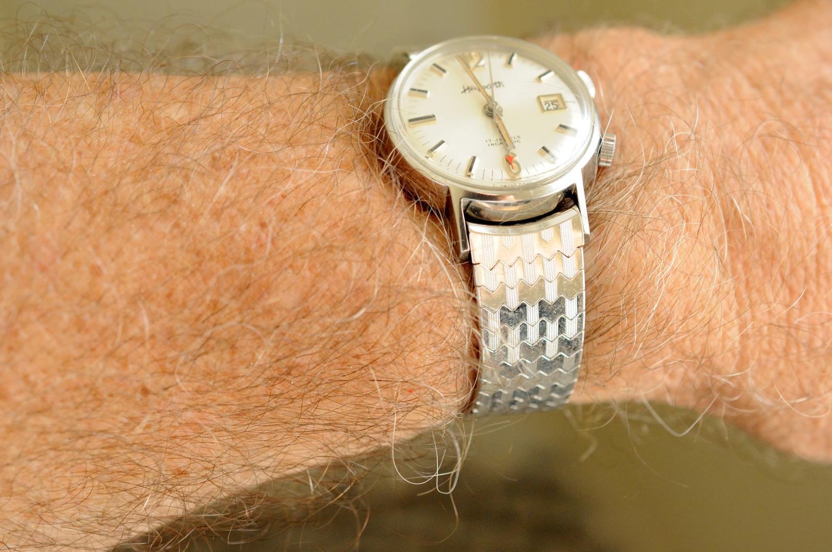 I have a few watches with 11/16 - 17.5mm lugs. I found a seller on eBay with a bunch of these old ASA size bracelets. Mesh, coffin link, you-name-it. I got an expansion bracelet with a early 1960's watch a few months ago and found I really liked wearing it. So I bought this vintage one for my Heyworth Alarm. *bling*