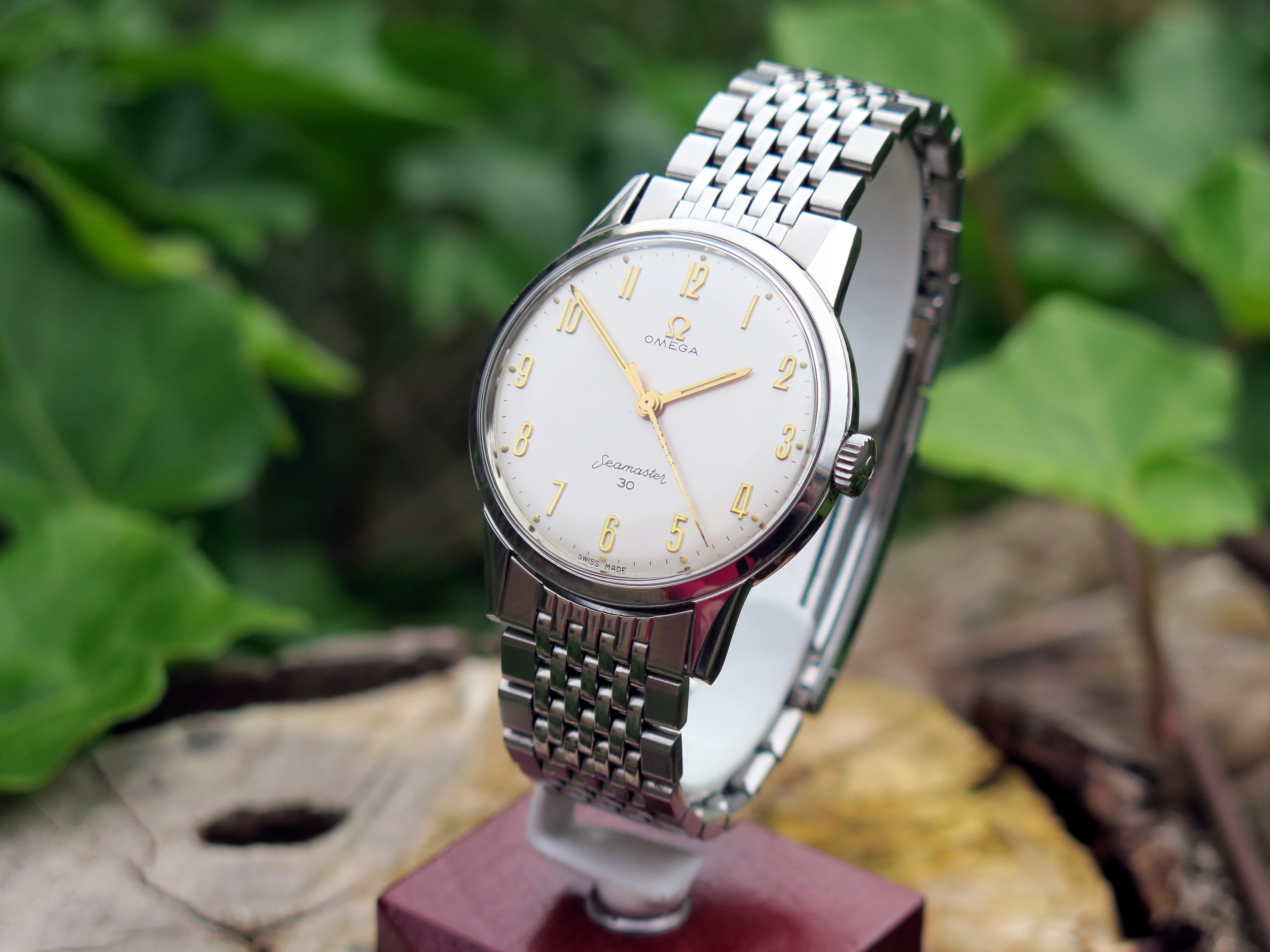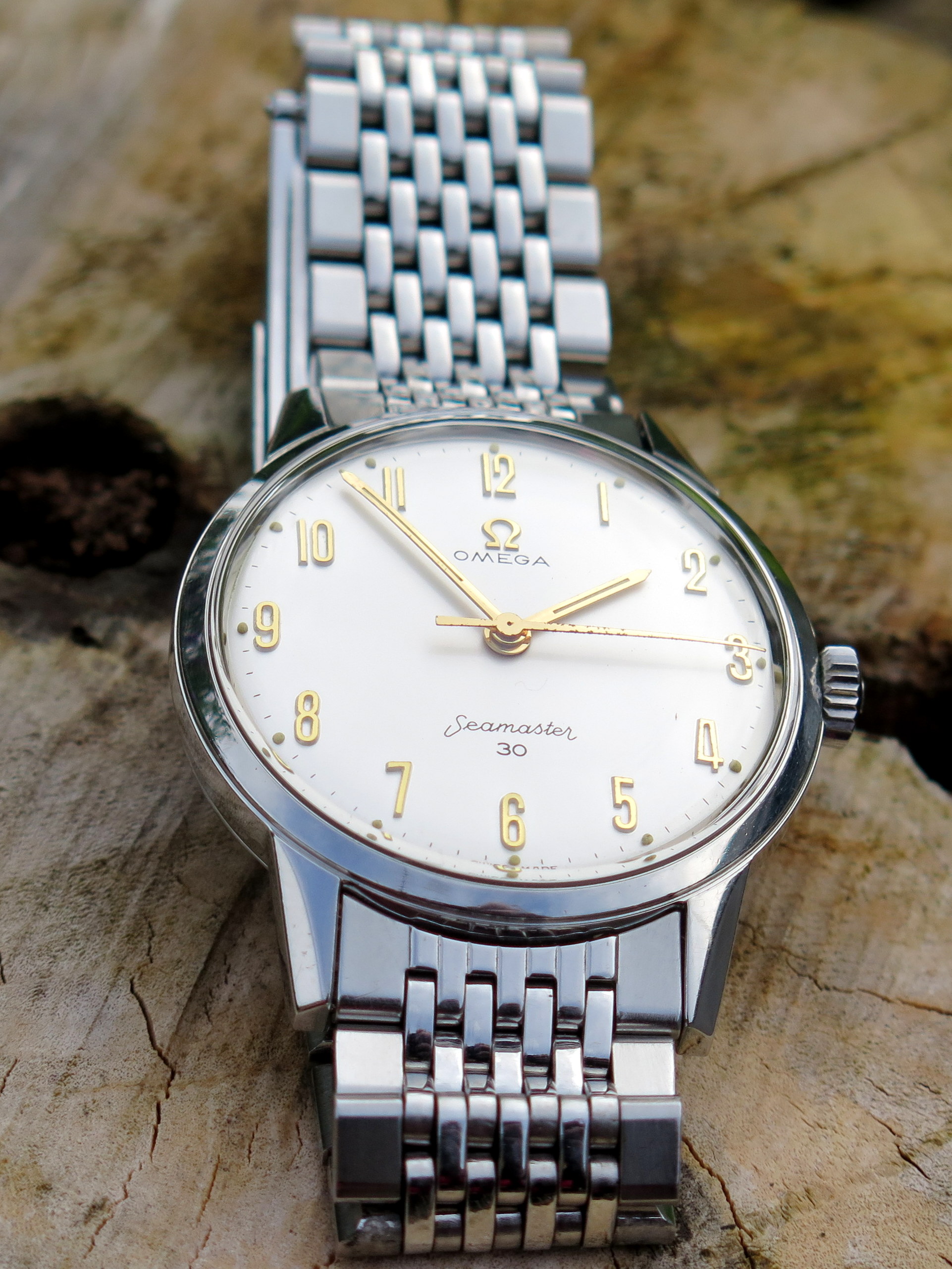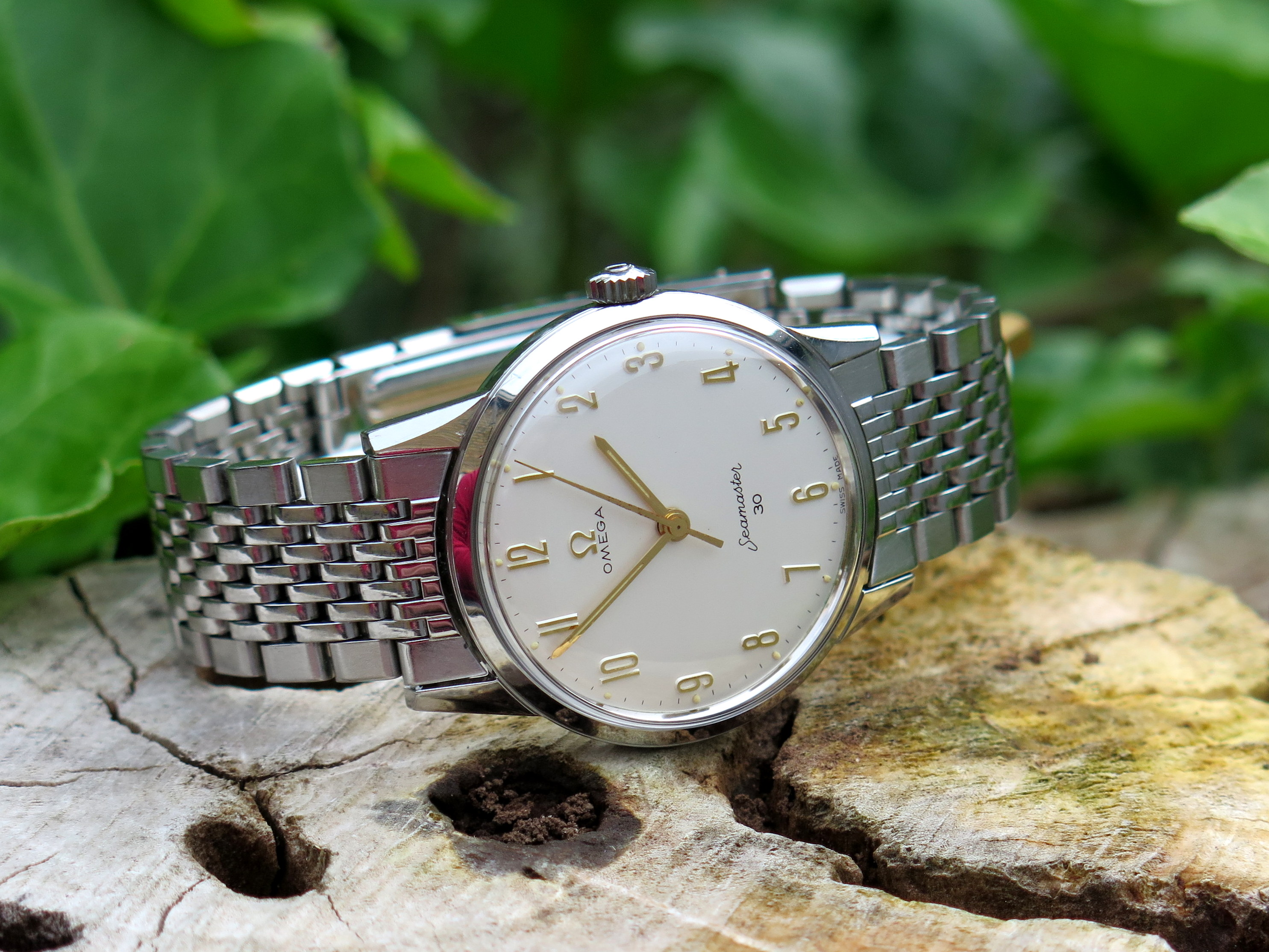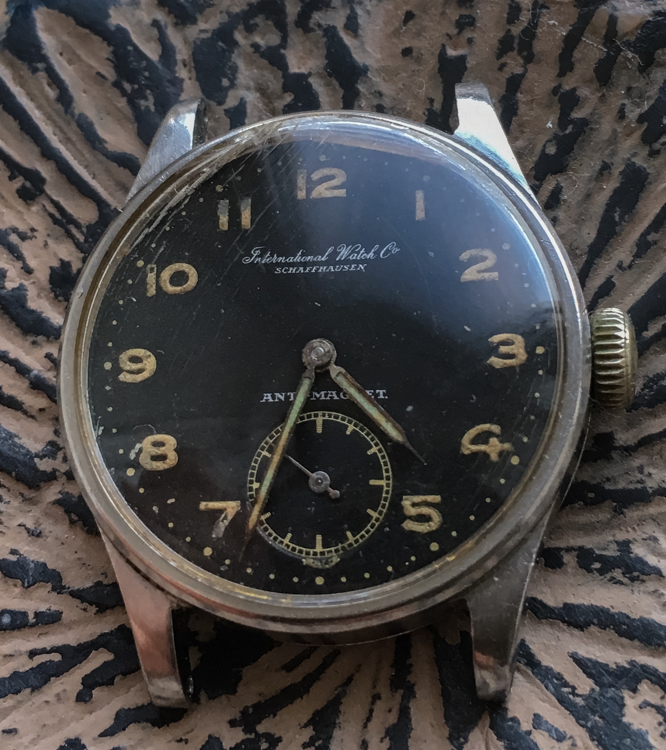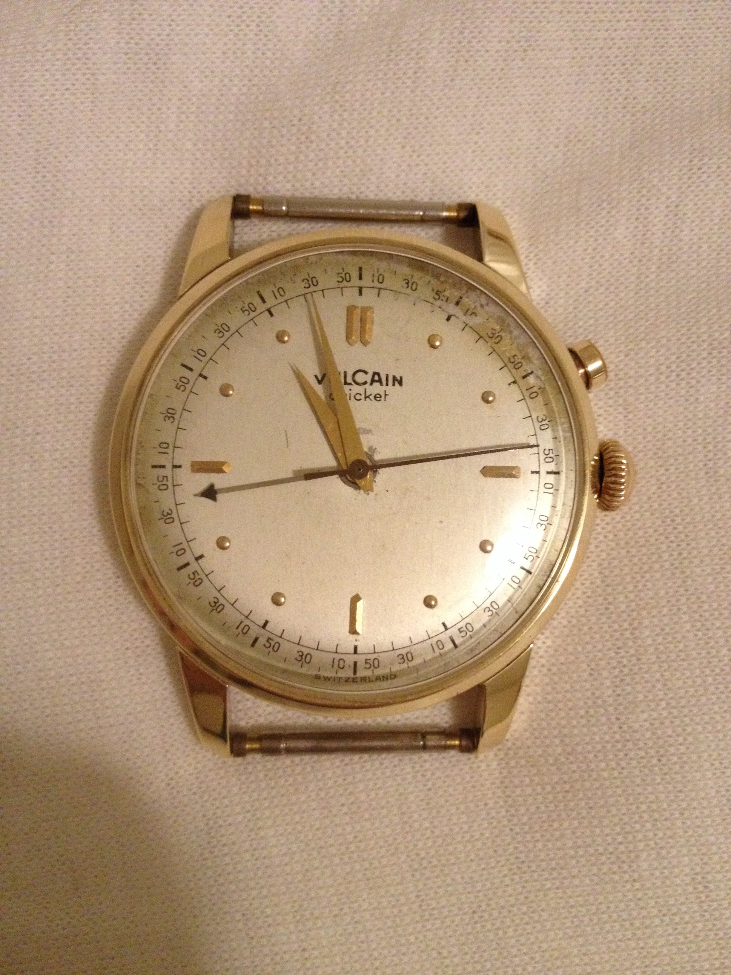 An older brother (1953) for my Memovox family! This one is a reference 3151 with a 489 cal. It's the stainless version of the Charlie Chaplin Memovox. Got some debris floating around the dial so it's off to the clinic but not before a brief family reunion.