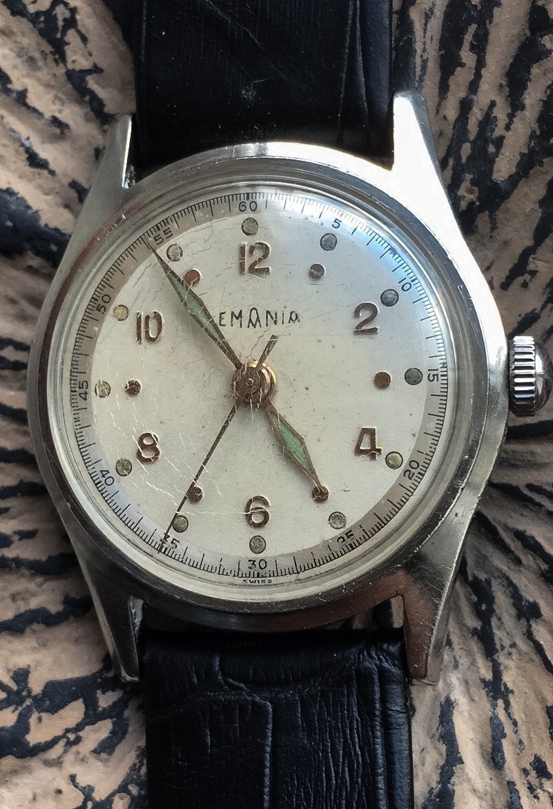 A late 1940s Lemania cal S27 in a very nice condition, apart from the crystal.