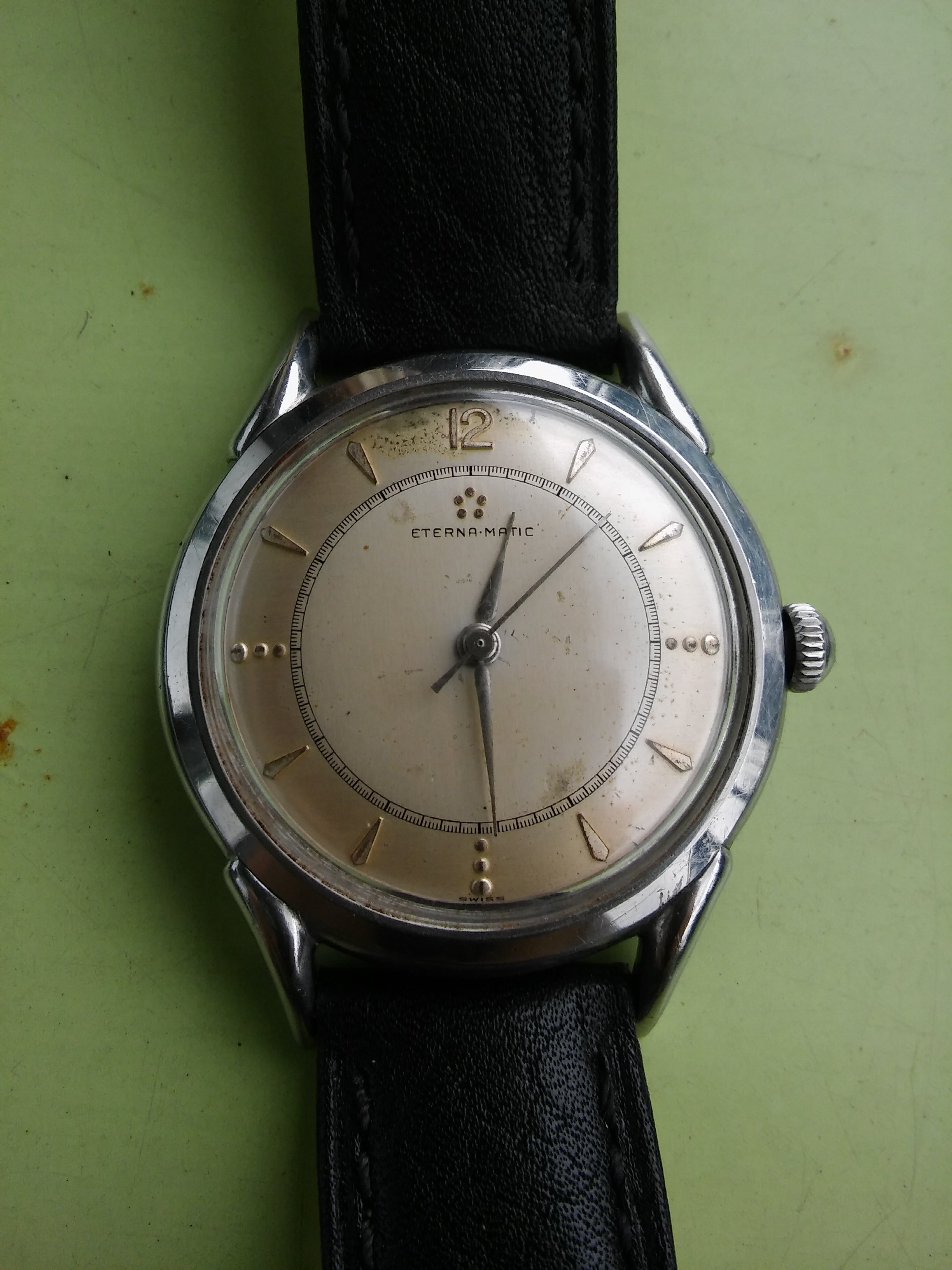 It had, before delivery a great potential for me(2 tones dial / early gent's Eterna's automatic movement 1249T from 1950 / nice index and rail track)