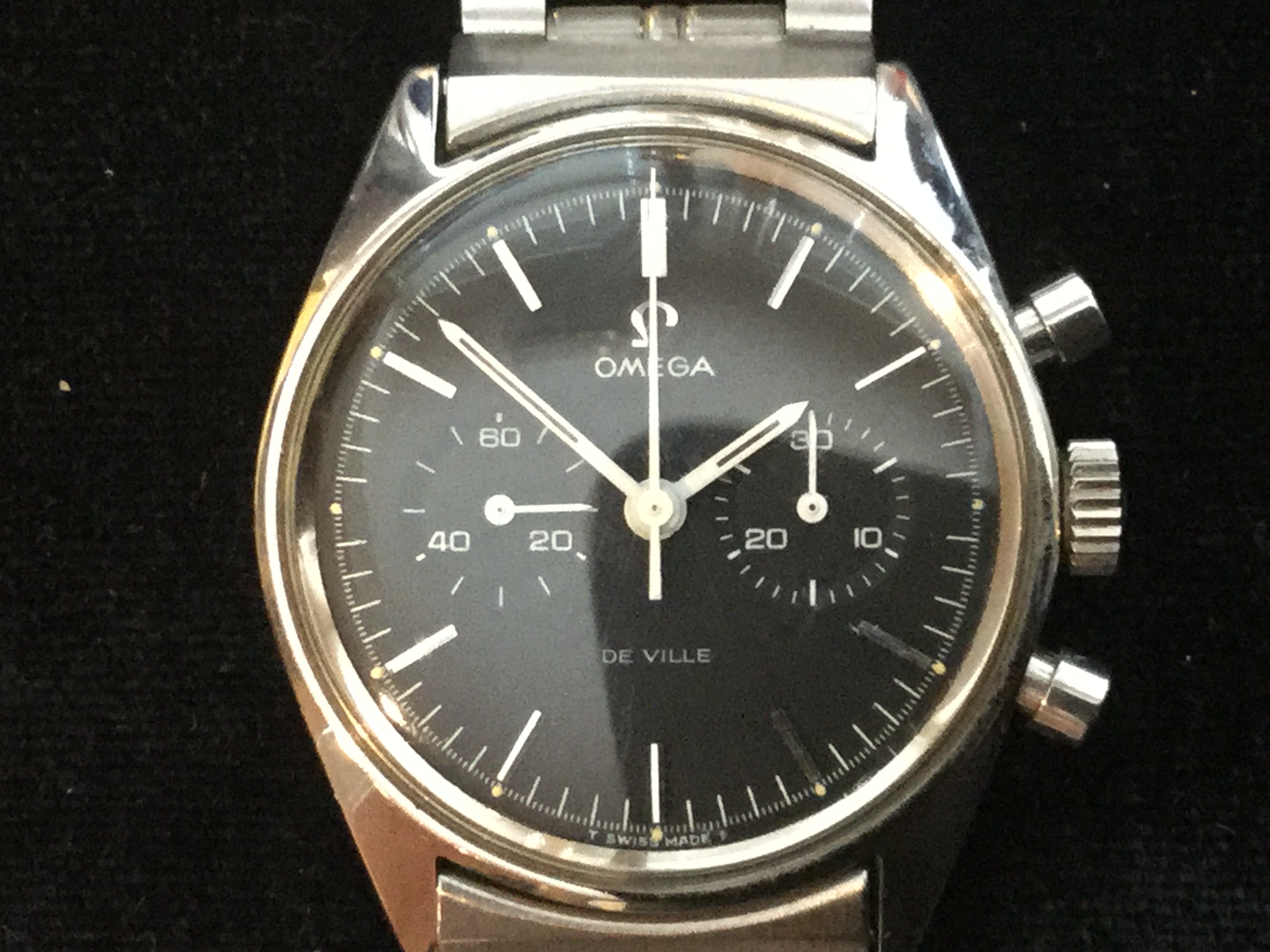 Lemania 13CH aka Omega 28.9. This is a T1 (mono pusher) version of this first ever Lemania chronograph movement made specific for use in wristwatches.