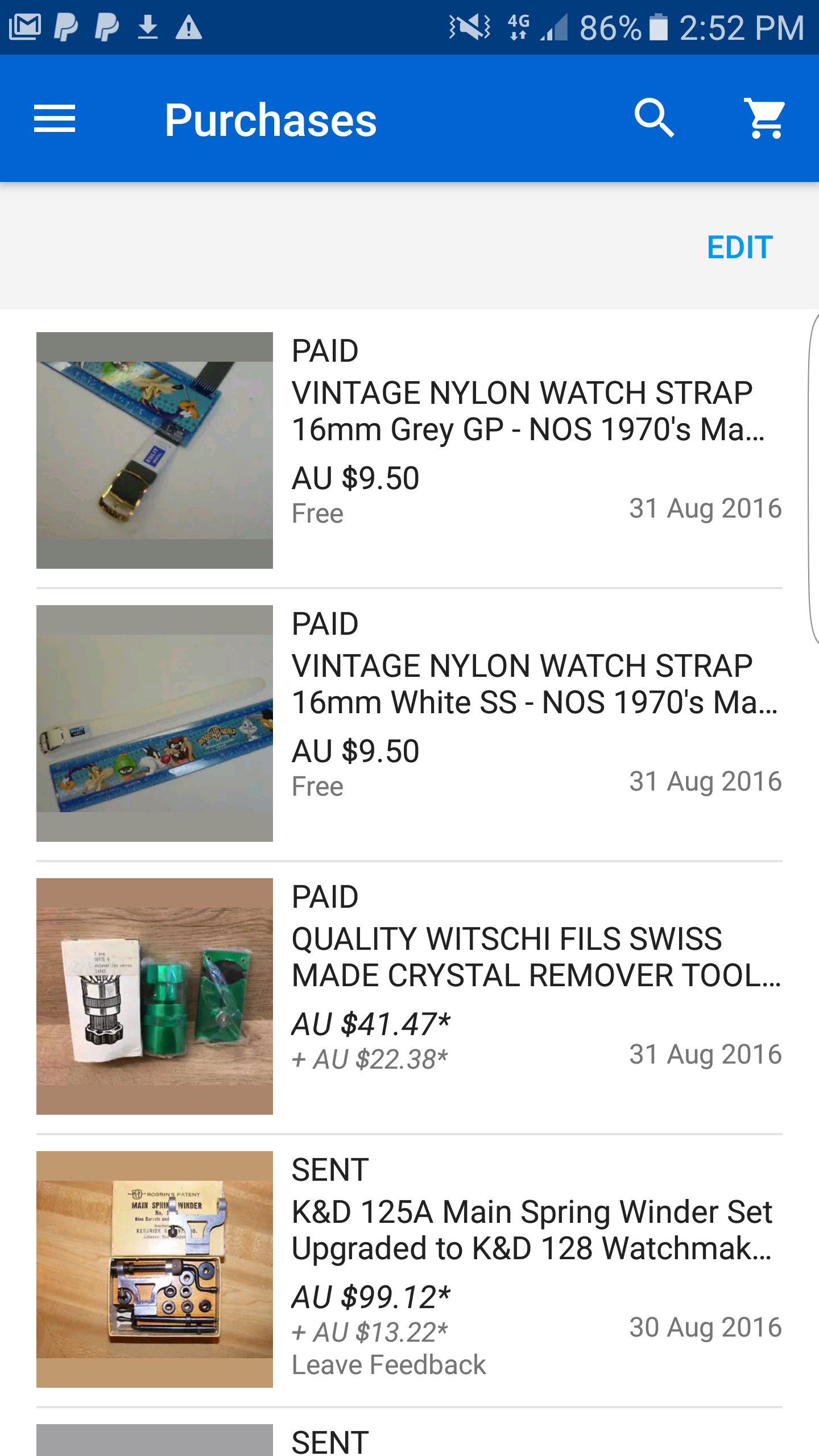 Last set of tools and straps - the store selling the Eulits does have international postage at $4AUD a piece, which is a real bargain if you're a small/mid size watch person. Won't be touching anything else now until I can establish my budget again 😀