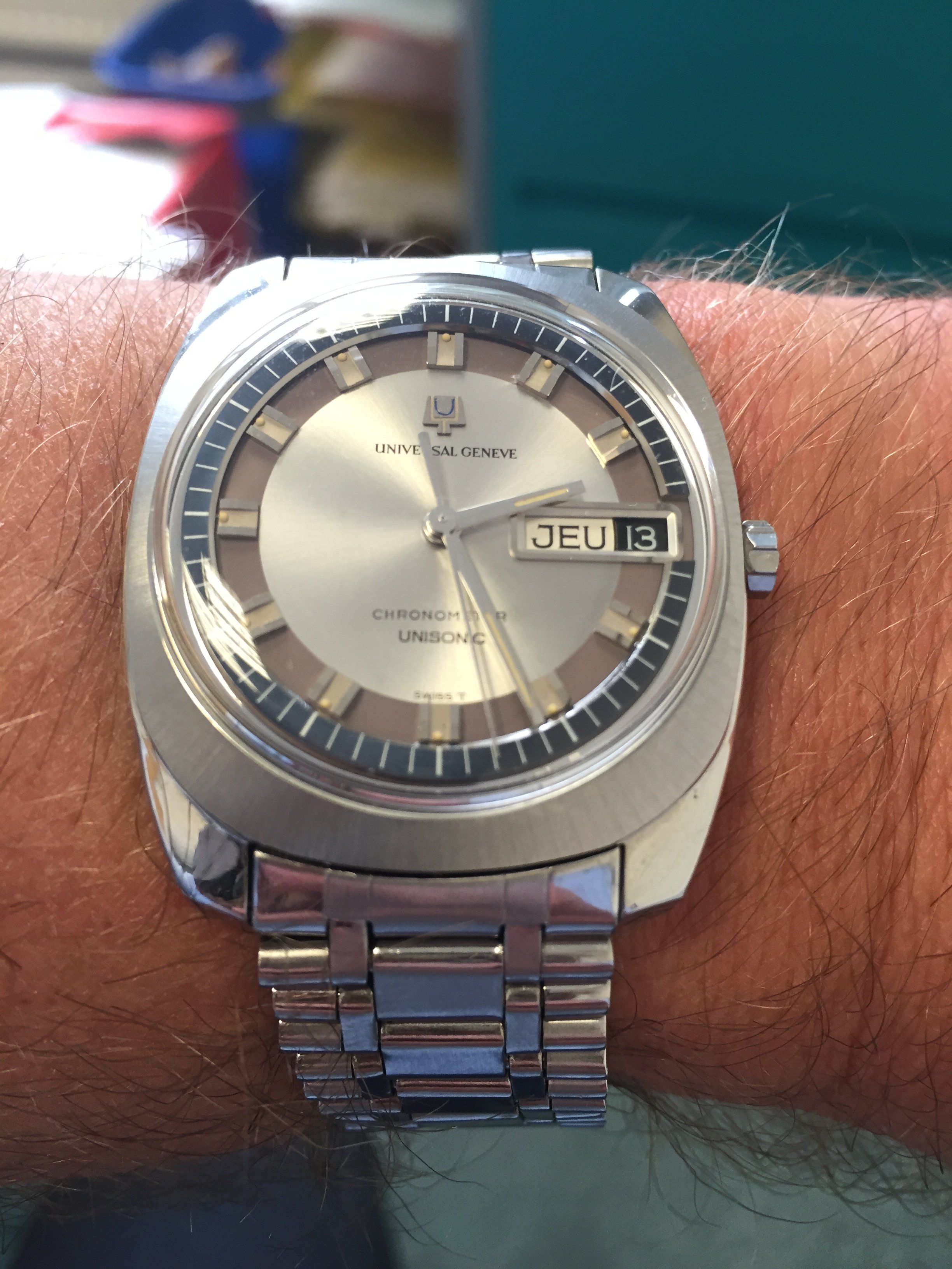 Mitka from WatchGuy contacted a local silversmith, and he did the repairs to the case. Carefully straightening and filling in the dent. Not to perfection, but to a degree consistent with the rest of the watch. Perfect IMO.