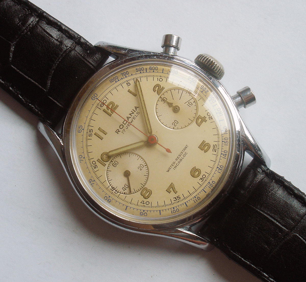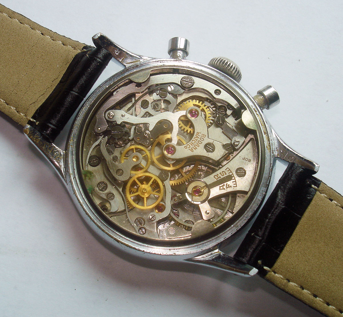 Quite cool to send of a relatively neglected, early 1930s, chronograph to the watchmaker, and find that the movement only needed a lube, clean and a mainspring to function well again!