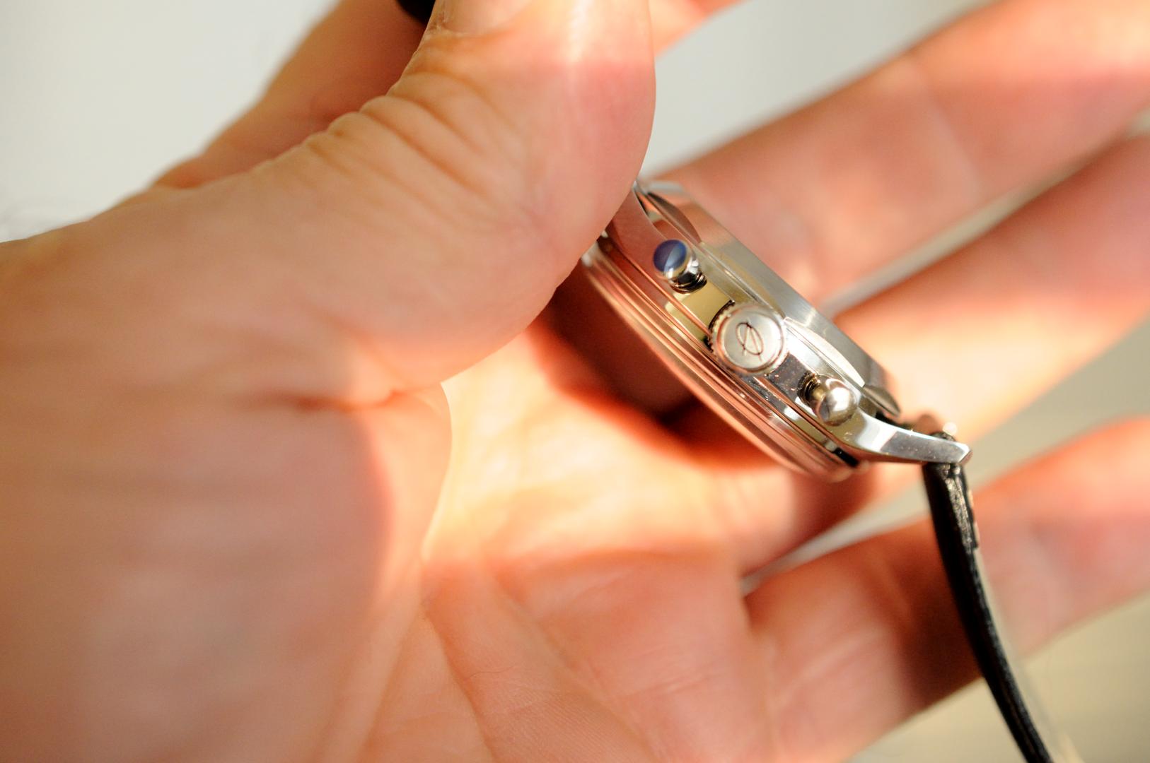 I also opted for the full metal caseback instead of the offered exhibition sapphire back. The movement is a hand wind chrono.