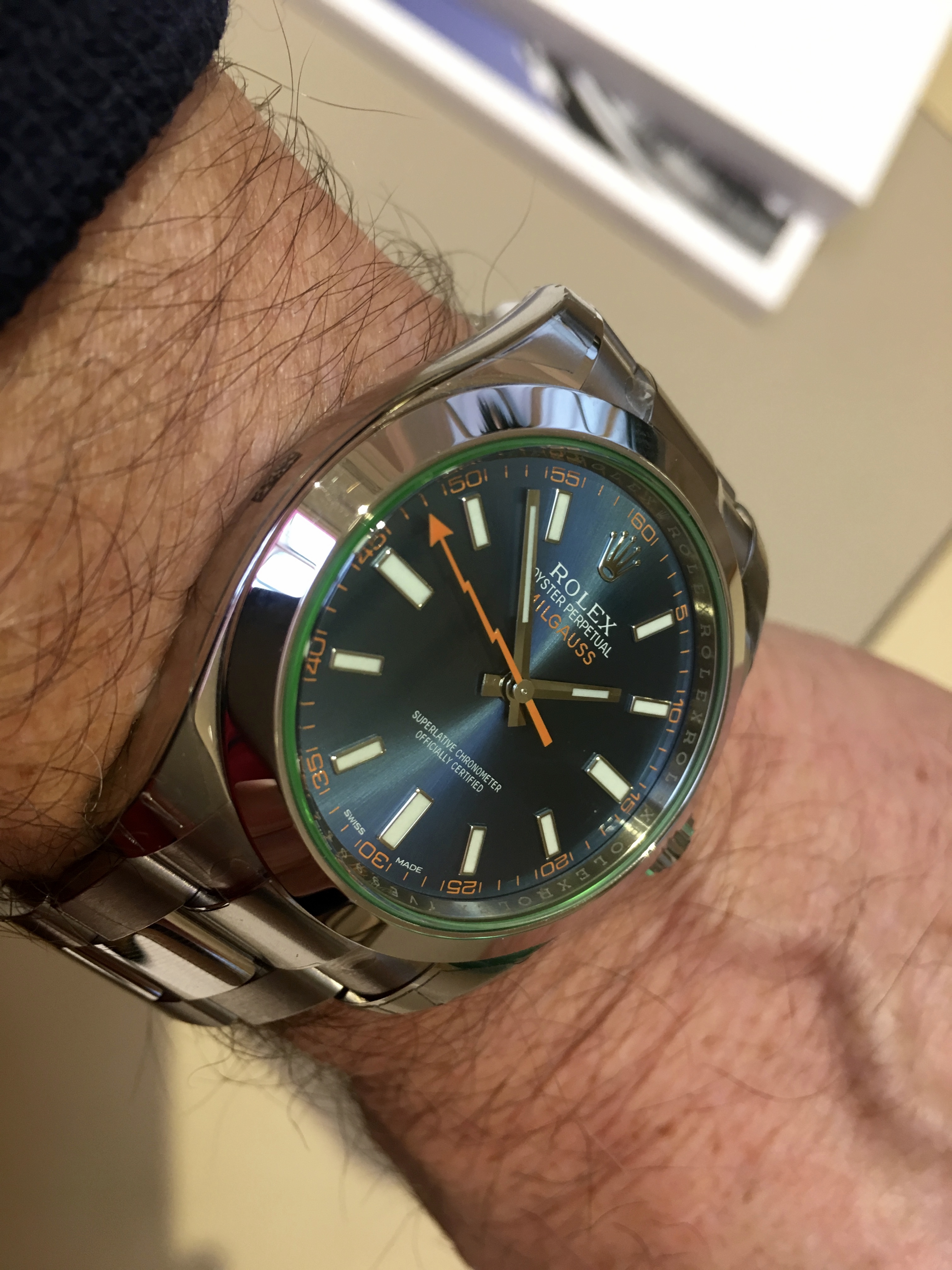 Was actually sending my Opaline A.T. back to Switzerland to have the date change issue rectified and ended up trying this Milgauss and talking watches with a lovely member of staff and to finish off back home with some reading/drooling material.